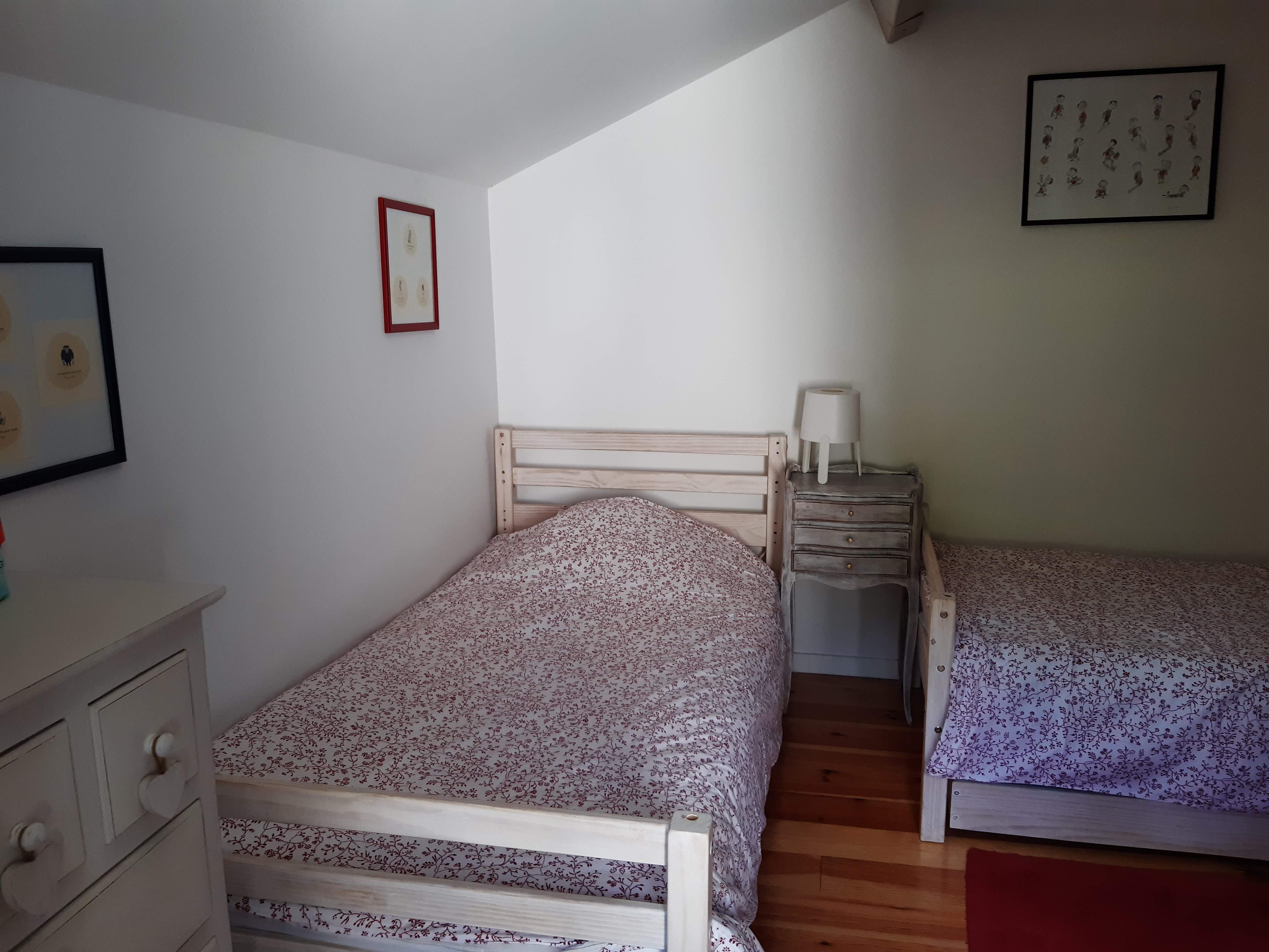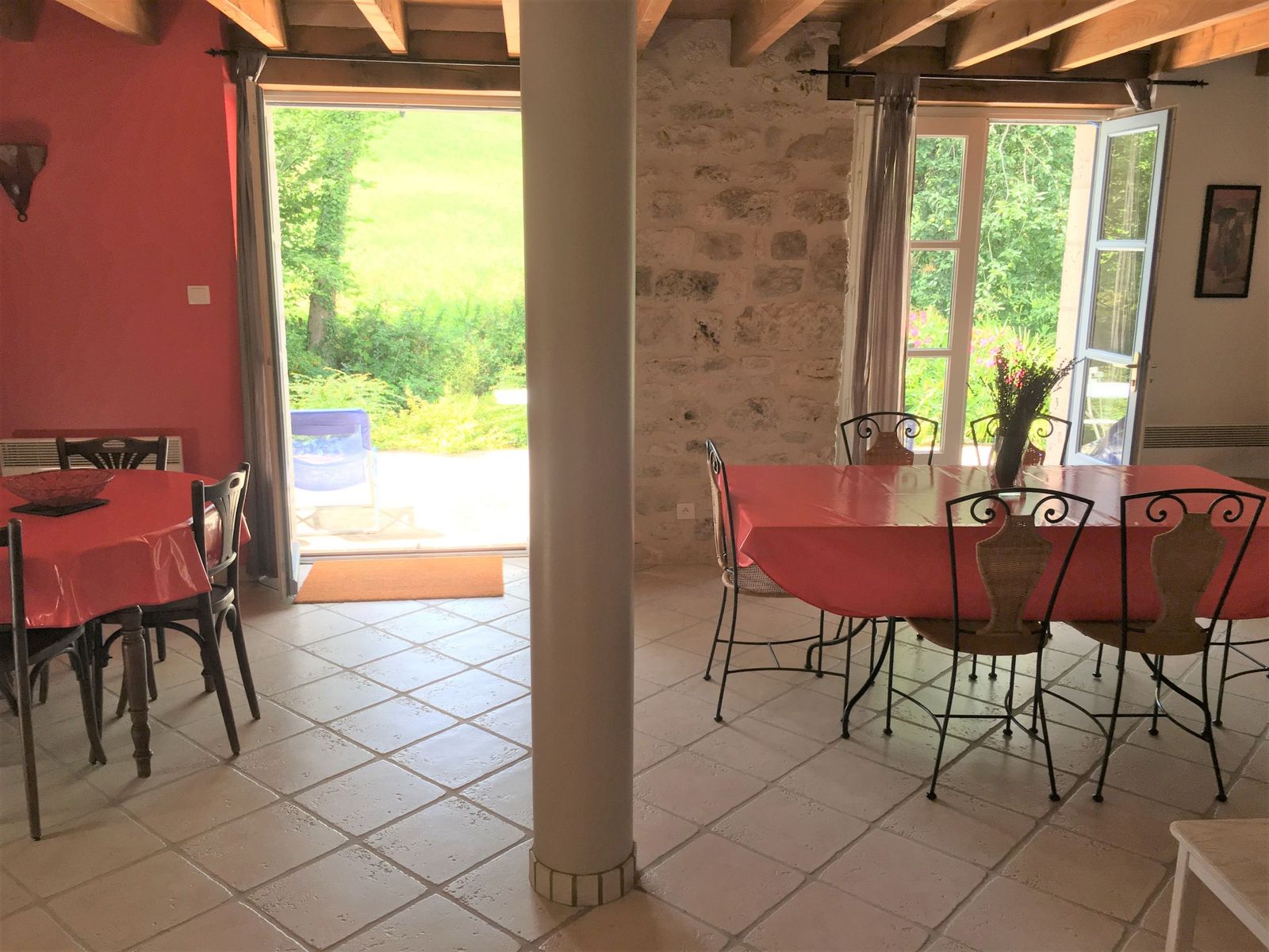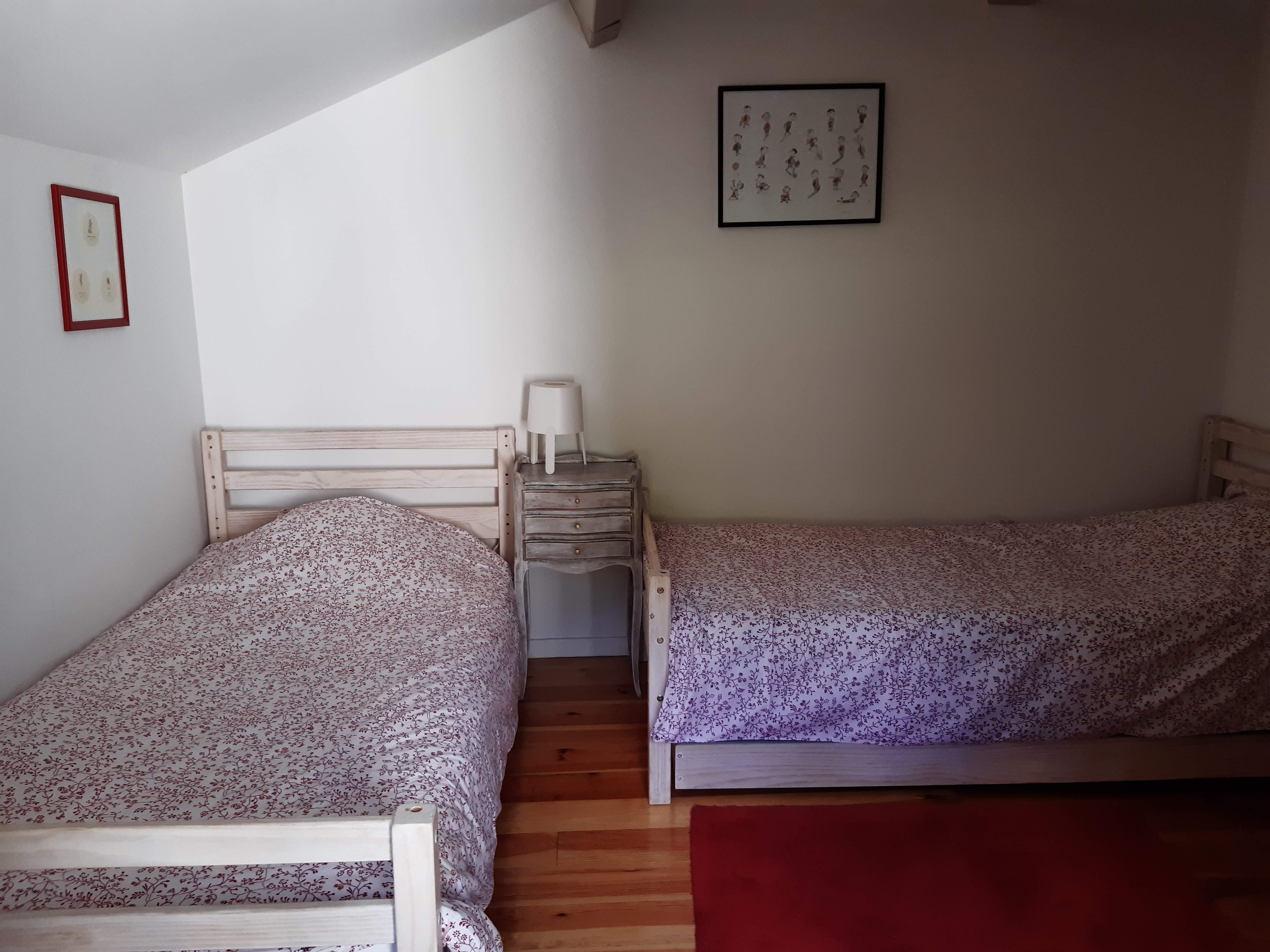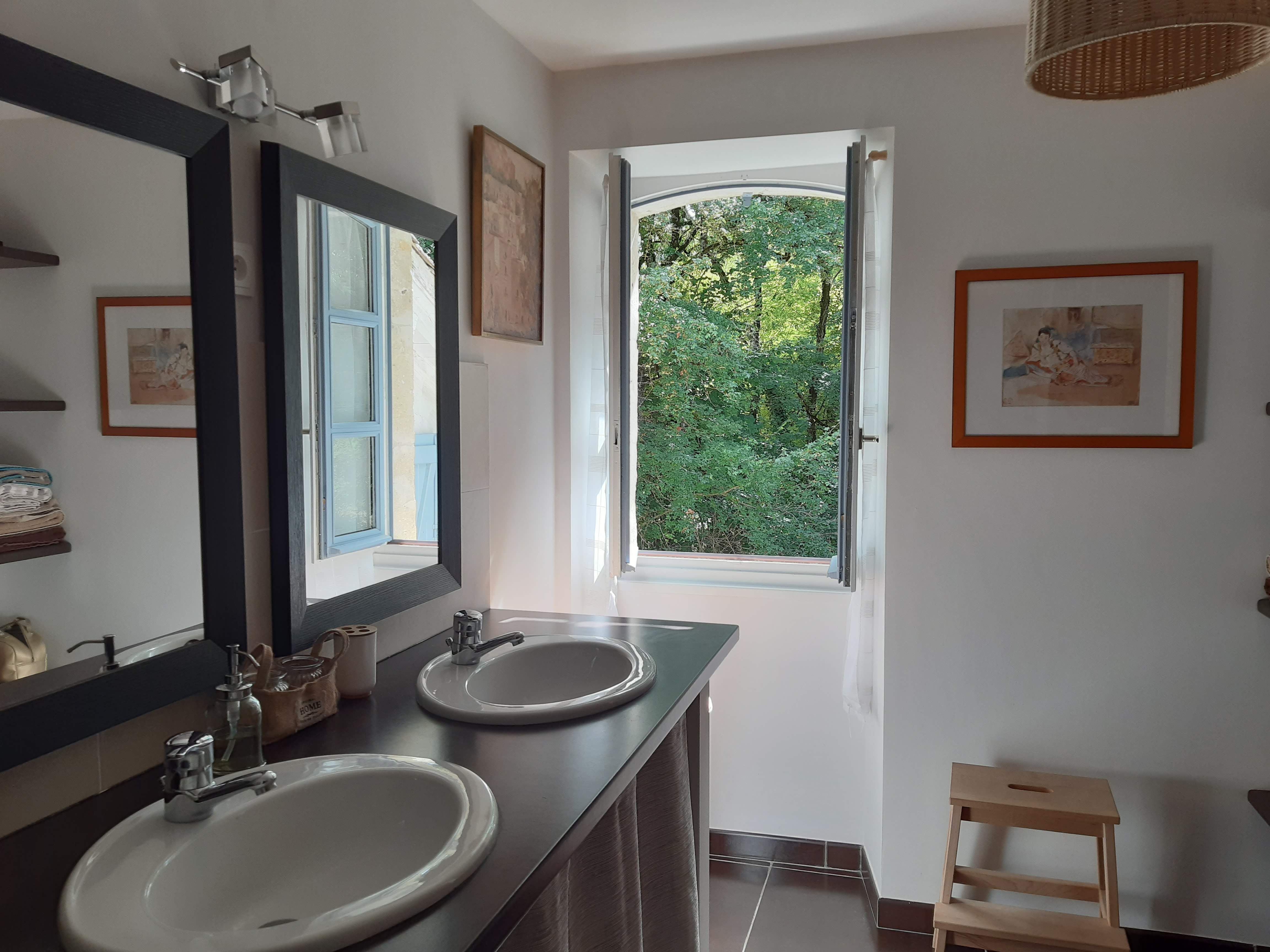 Au rdc : une salle (25 m2) où jadis les meules du moulin fonctionnaient servant de hall d’entrée spacieux, avec un wc et vestiaire, donnant sur un séjour (32 m2) avec un vaste espace cuisine (éléments intégrés (lave-vaisselle, plaques, four, réfrigérateur, congélateur, micro-ondes), un cellier (LL, SL). A l’étage : salon (canapé, fauteuil, TV, lecteur DVD, petit bureau d’écolier), 1 ch (1×160), 1 ch (1×140), 1 ch (2×90), sdb, WC. indépendant. Terrasse (40 m2) avec 2 salons de jardin, barbecue, transats. Terrain privé non clos (900 m2). Equipement bébé sur demande : lit, chaise haute, baignoire. Le prix comprend : le chauffage, l’électricité, la taxe de séjour. En option : loc draps, linge de maison et de toilette, ménage. Pas de wifi.