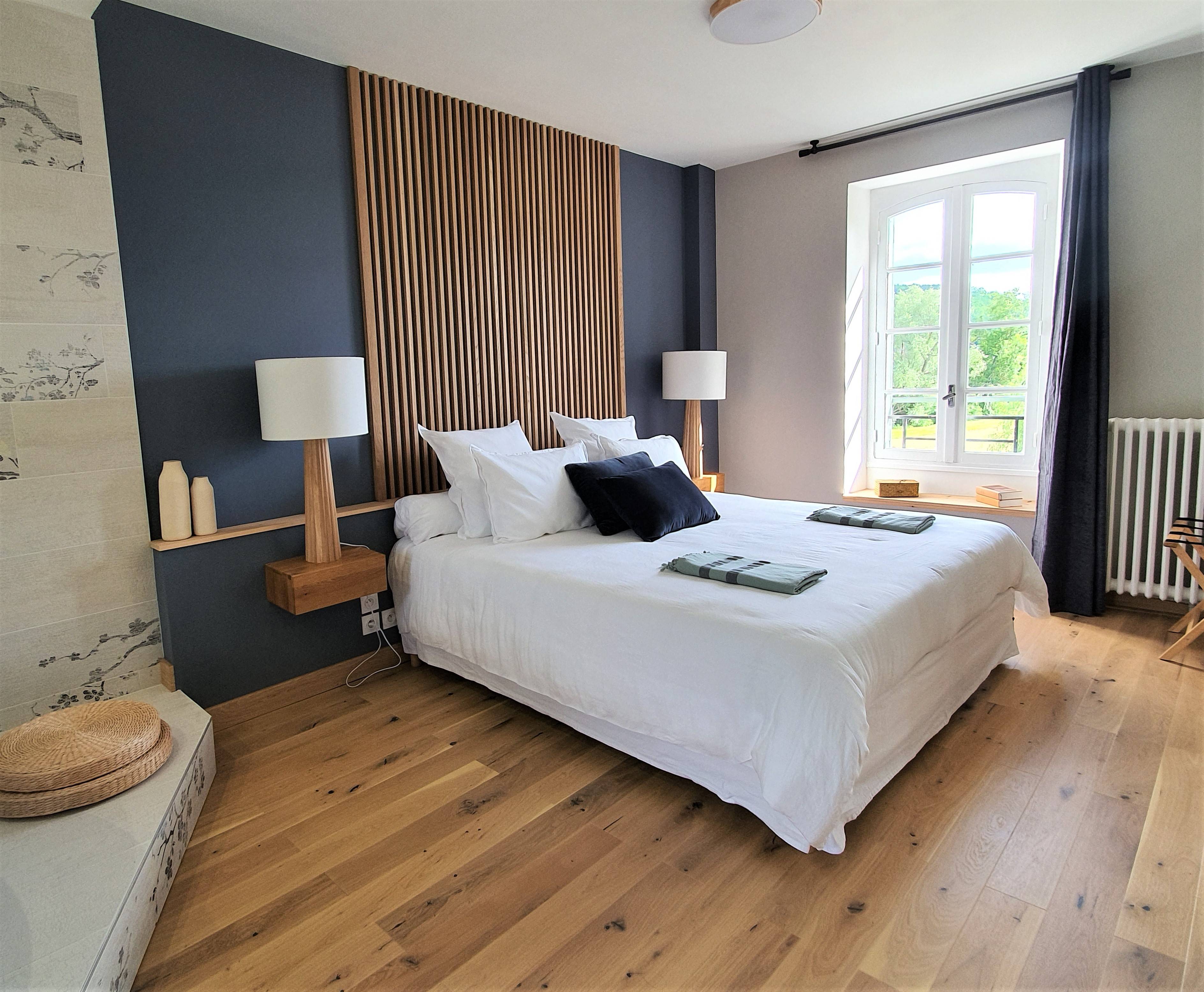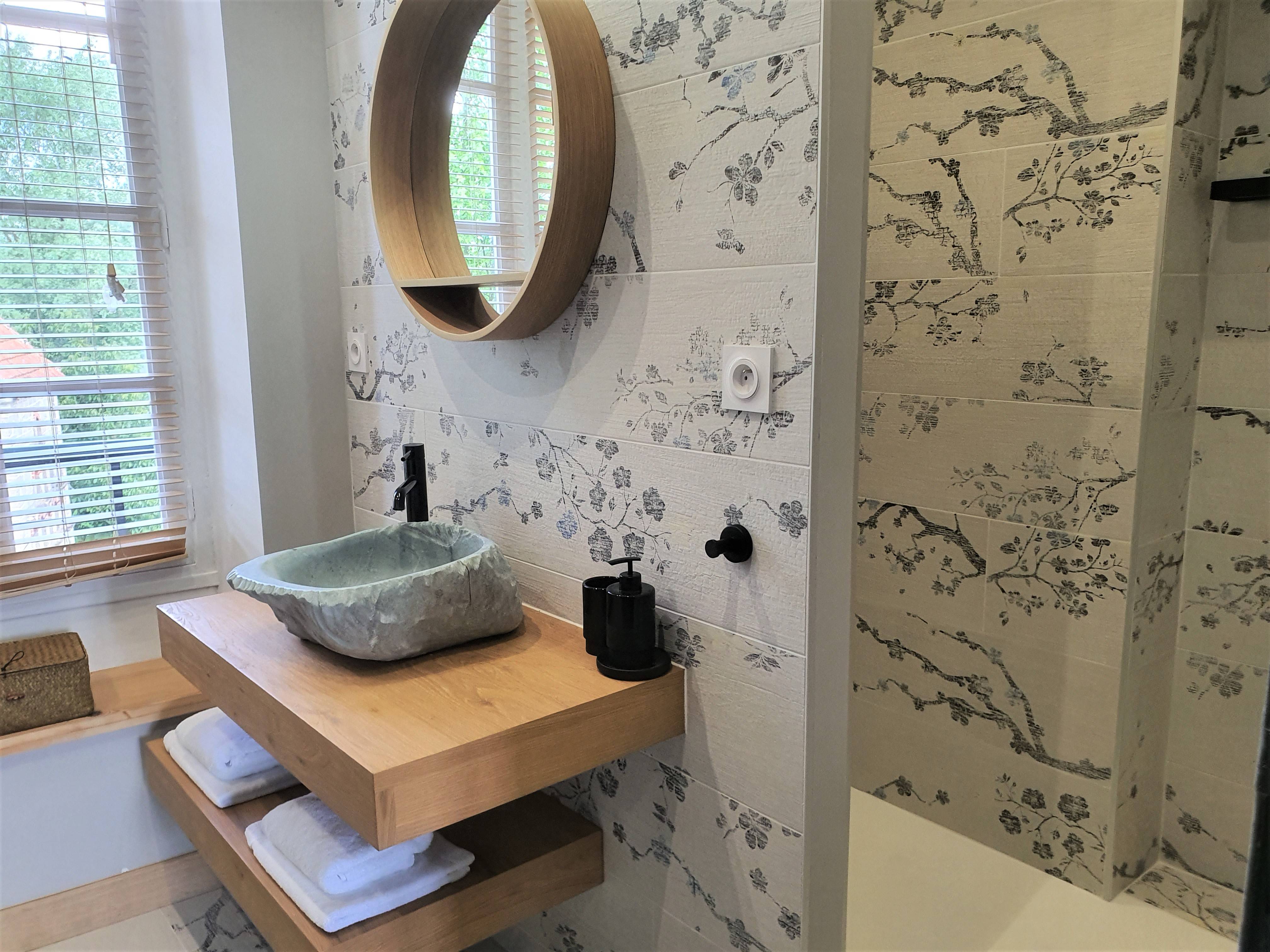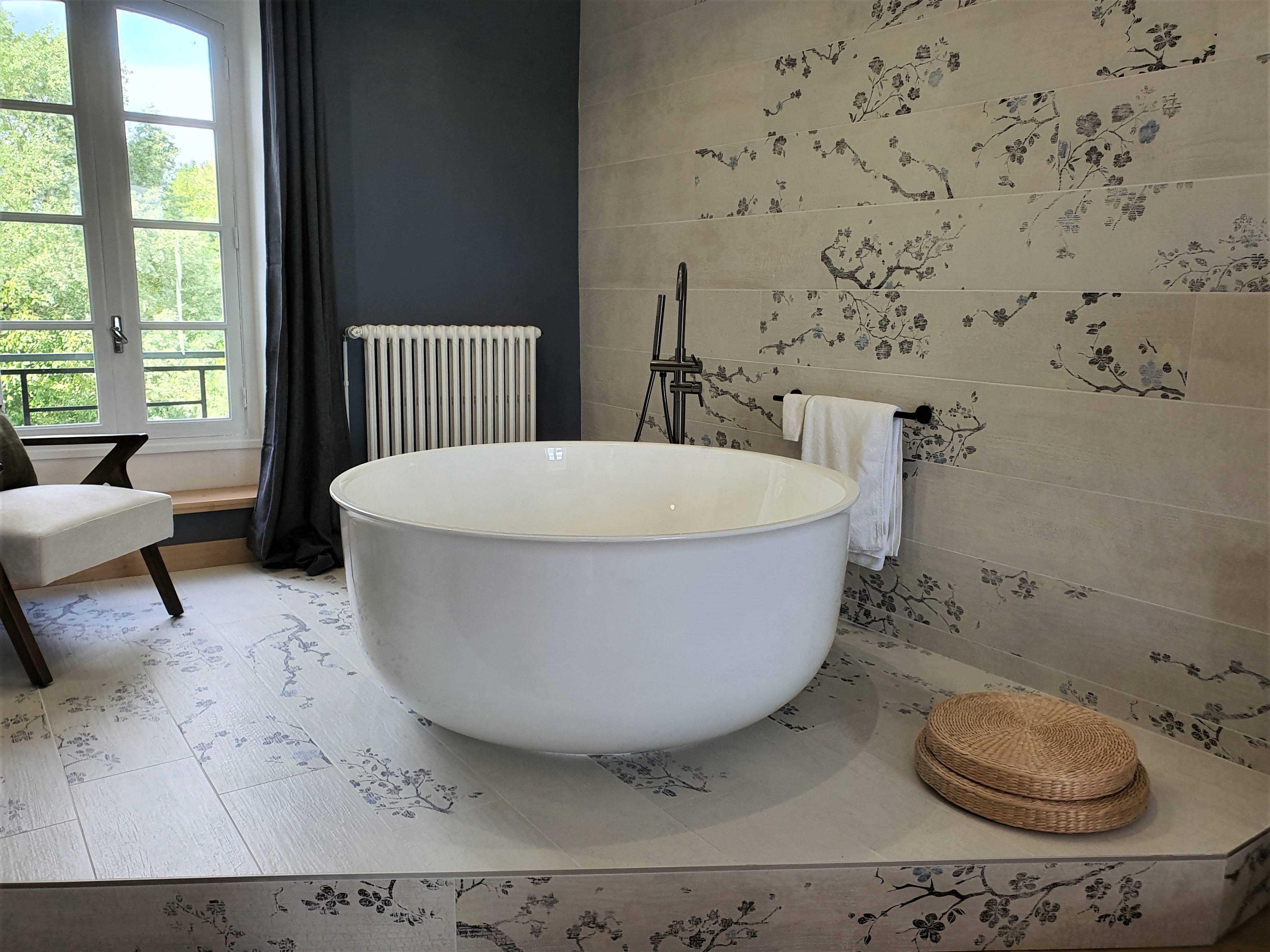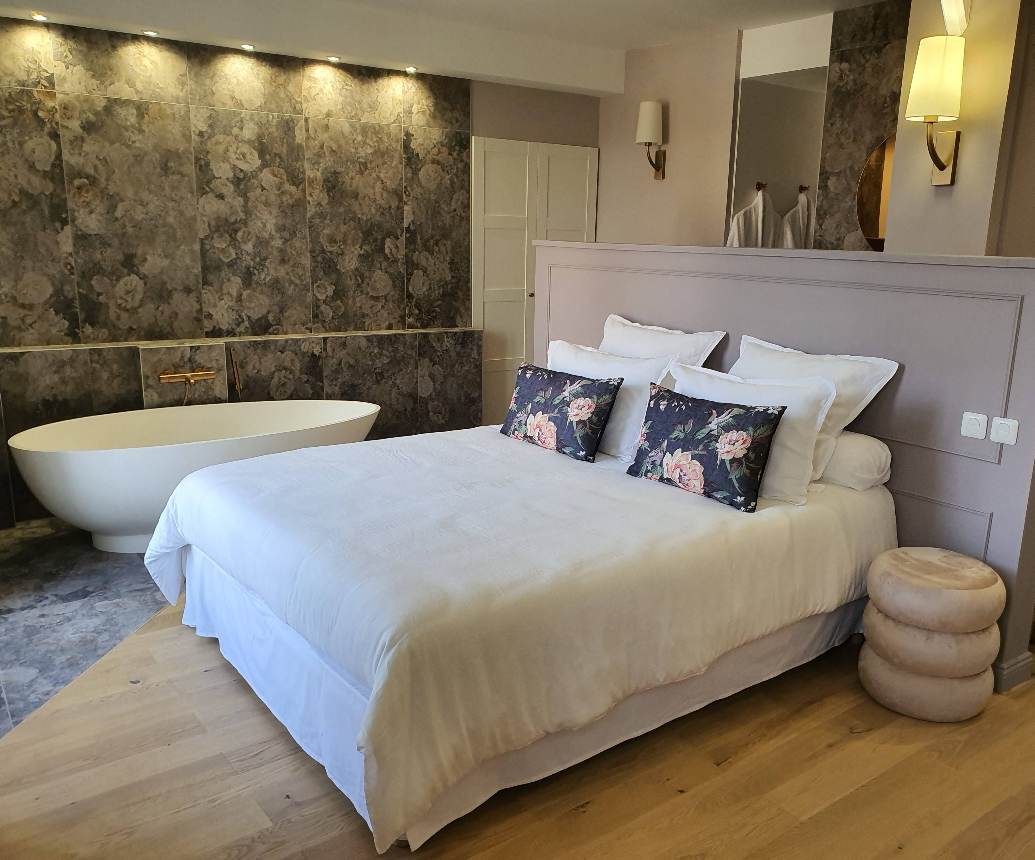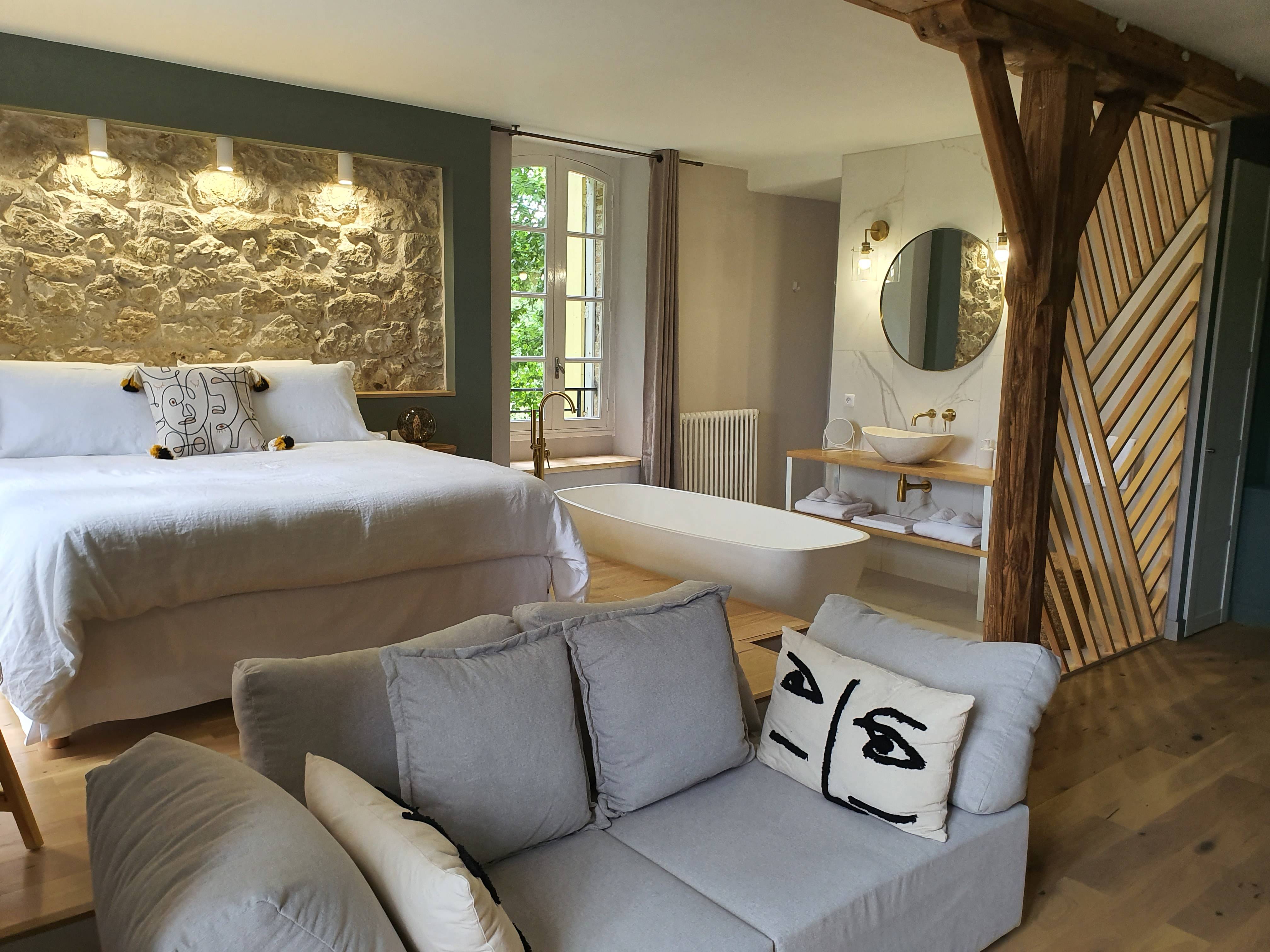 Au 1er étage du moulin, 2 chambres de part et d’autre du hall d’entrée avec pour la chambre Adélaïde bénéficie d’un grand balcon. On y trouve un grand lit (180), une baignoire, une salle d’eau ouverte avec douche et wc privatifs fermés. Fauteuils, mobilier d’appoint, rangement. La chambre Alexandrine, sur le même concept avec un grand lit (180), une baignoire, une salle d’eau ouverte douche et wc privés fermés. Espace salon avec canapé et lit d’appoint. Mobilier d’appoint, rangement. La chambre Victoria, sur le même concept avec un grand lit (180), une baignoire ronde mise en scène sur une estrade, une salle d’eau douche et wc privés fermés. Espace salon avec banquette qui peut faire lit d’appoint, fauteuil, rangement. Wifi et plateau de courtoisie dans chaque chambre.Wifi dans la chambre, TV.Wifi et plateau de courtoisie dans chaque chambre. Petit plus : Le prix de la chambre comprend 45 minutes de jacuzzi.