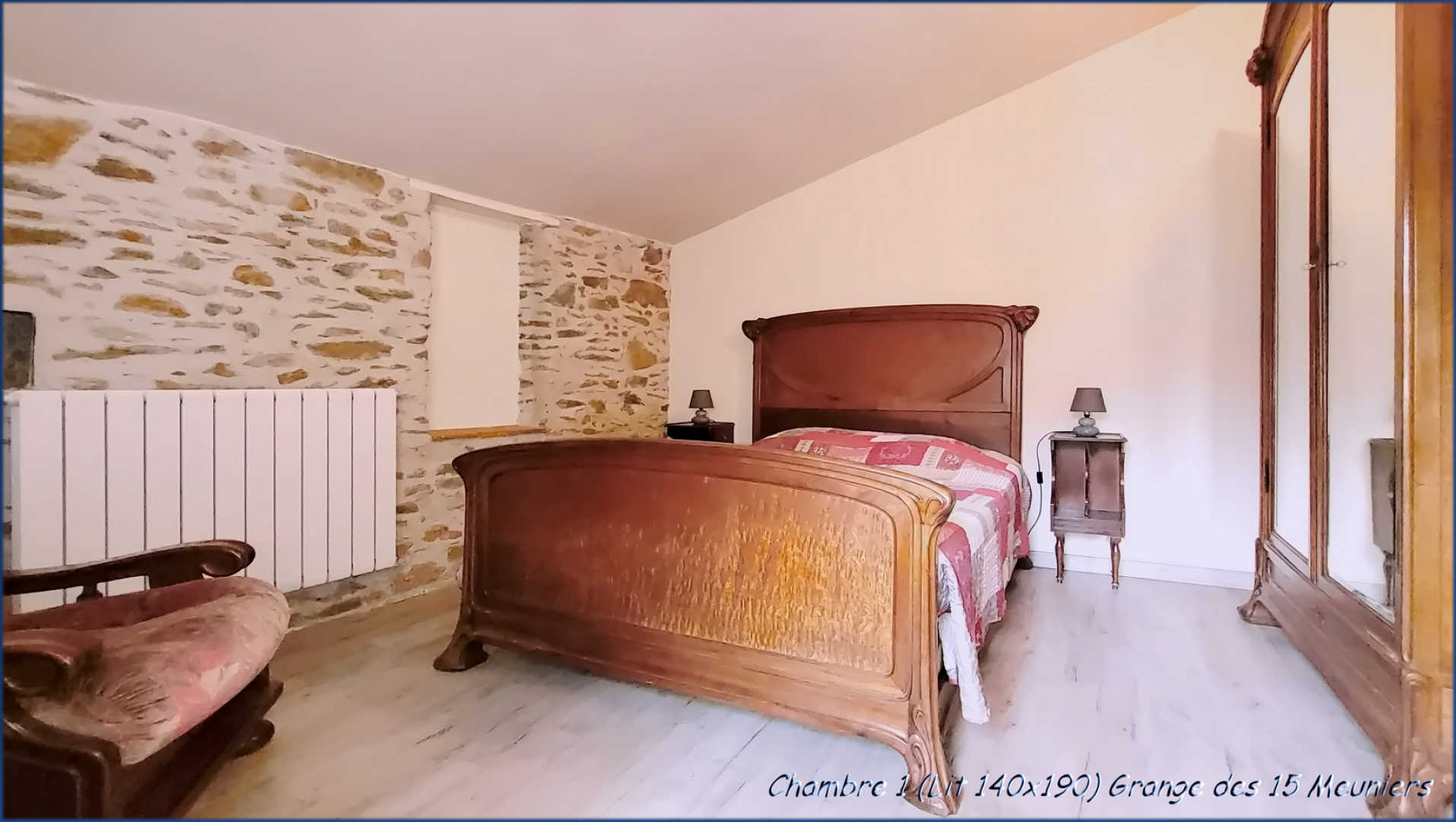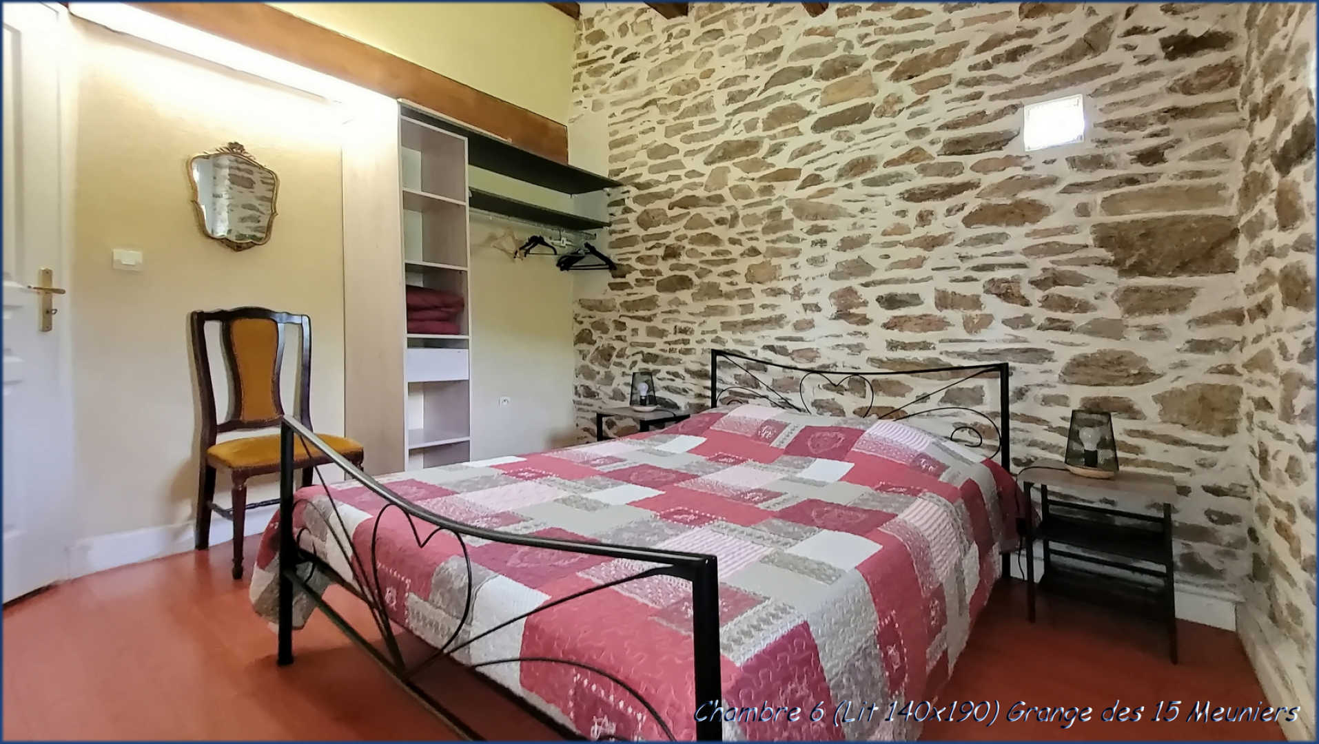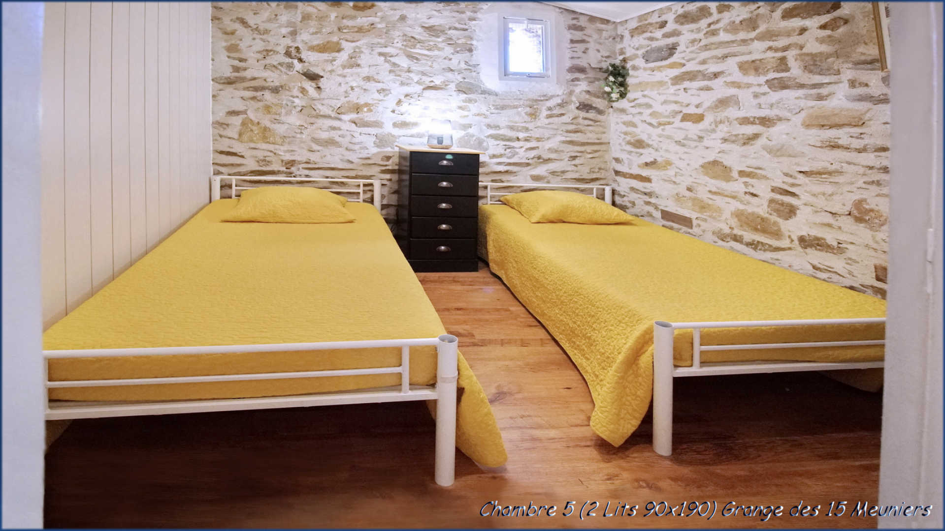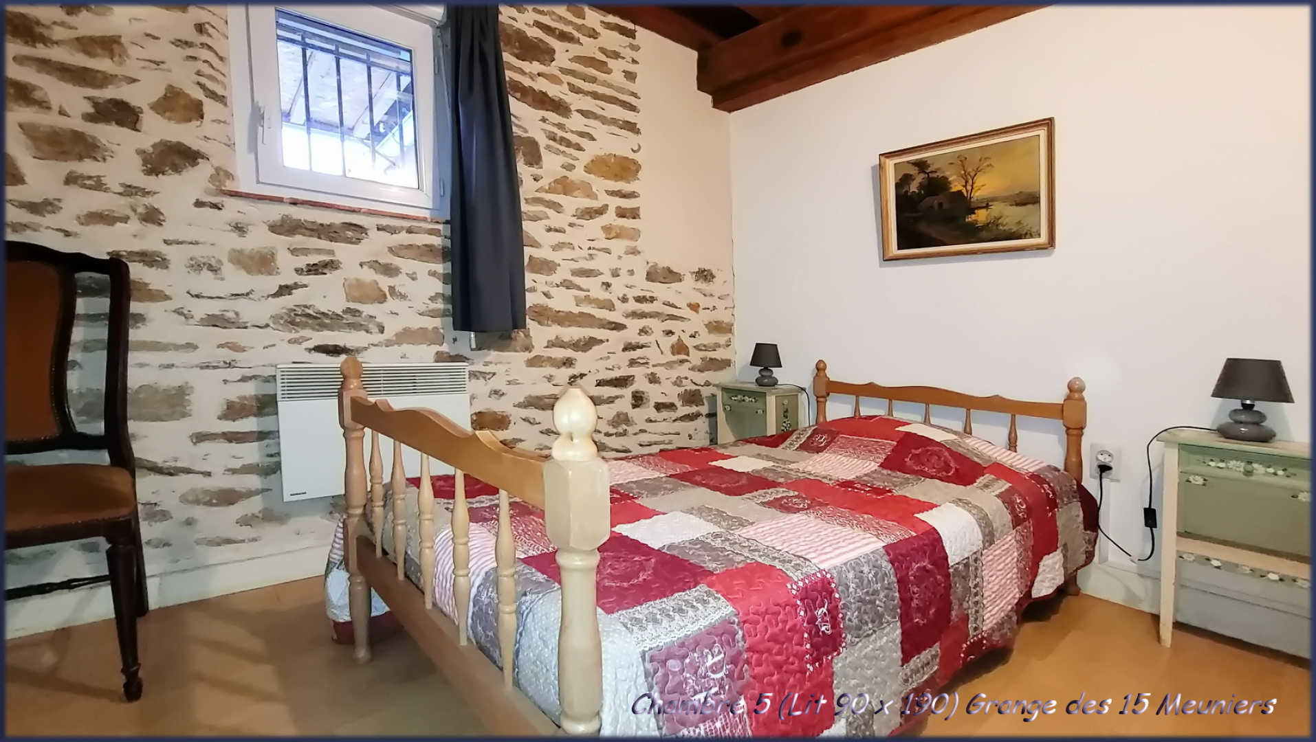 3 chambres avec lit double (140×190), 2 chambres avec lit simple (90×190)