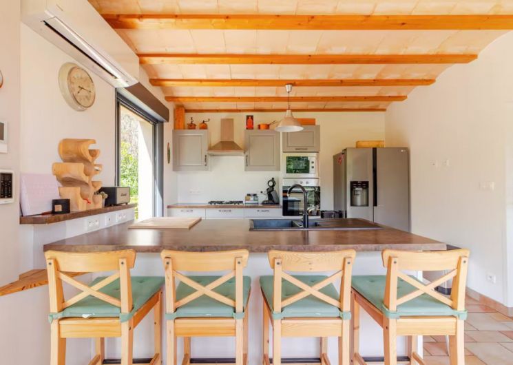 Niché dans le charmant village de Villeneuve-Minervois, ce gîte climatisé vous accueille pour un séjour reposant entre vignes, garrigue et montagne. Situé à quelques pas de la rivière la Clamoux, ce lieu est idéal pour les amoureux de la nature et de tranquillité. Aux alentours vous pourrez faire de nombreuses visites: – La Cité de Carcassonne à 20 min: Plongez dans l’histoire en visitant cette impressionnante forteresse médiévale, inscrite au patrimoine mondial de l’UNESCO. – Le Canal du Midi à 15 min: Classé lui aussi à l’UNESCO, ce chef-d’œuvre d’ingénierie offre de magnifiques itinéraires pour des belles balades. – Le Gouffre de Cabrespine à 15 min: Entrez dans les profondeurs de la Terre avec ce gouffre de 250m. – Les Châteaux de Lastours à 20 min: Partez à l’assaut de ces quatre châteaux cathares offrant un panorama spectaculaire. – Caunes-Minervois à 10 min: célèbre pour son abbaye romane et ses carrières de marbre rose qui ont orné Versailles et d’autres monuments prestigieux. – Minerve à 30 min : Classé parmi les Plus Beaux Villages de France, il vous séduira par son charme médiéval. Sur place, profitez d’une terrasse privative entièrement clôturée, idéale pour vos repas en plein air en toute intimité. Un barbecue est à votre disposition pour des soirées conviviales au calme, sous les étoiles. Le cadre naturel, l’accès direct aux balades et la proximité immédiate de la cascade en font un lieu privilégié pour se ressourcer. Au rez-de-chaussée: – Un séjour avec une cuisine ouverte toute équipée (cafetière expresso, lave-vaisselle, micro-ondes, four, frigo-congélateur), salon avec canapé, TV connectée et enceinte connectée, poêle a bois (bois fourni). A l’étage: – Chambre 1 : lit 160x200cm, TV. – Salle de bain indépendante avec accès direct aussi à la chambre 1 : lave-linge, sèche linge, douche, baignoire et double vasque. – WC indépendant. – Chambre 2 : lit 160x200cm . – Chambre 3 : 2 lits 90x190cm. Parking privatif. Accueil autonome possible.