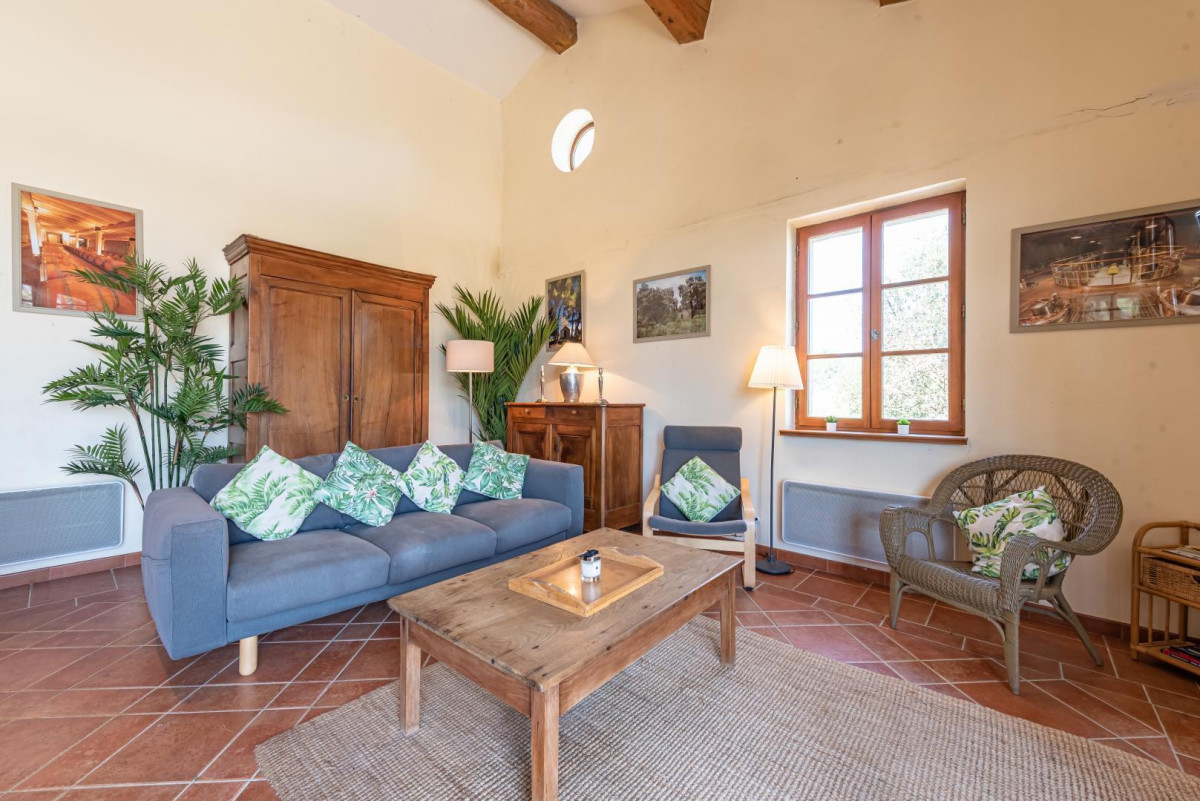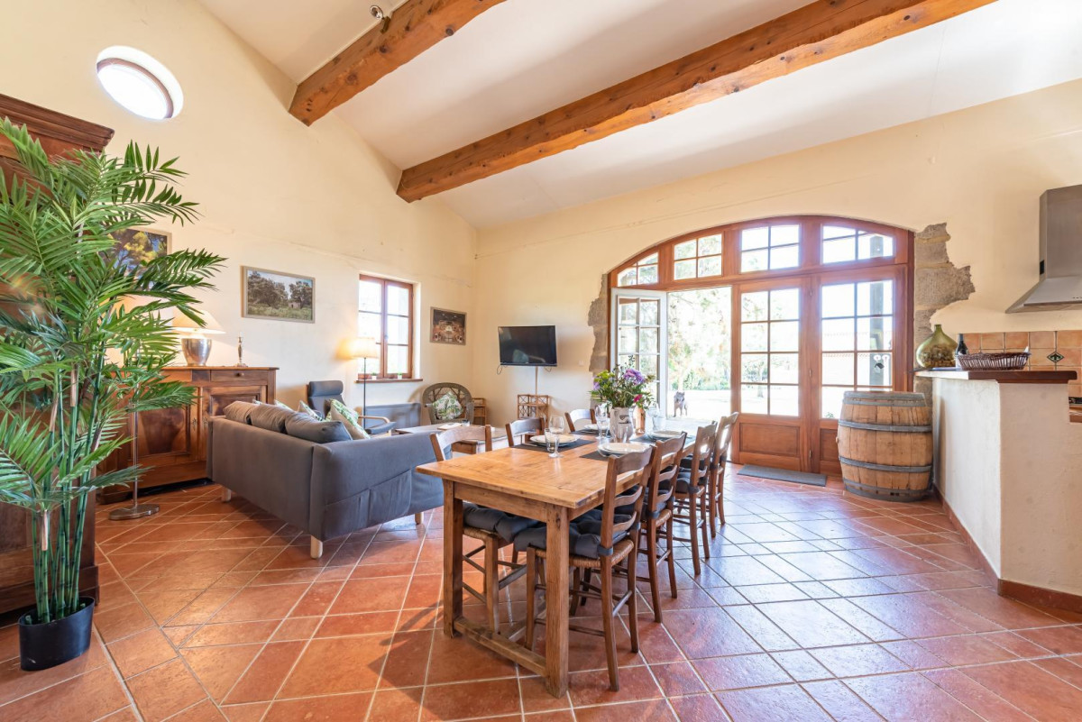 Nombreux chemins de randonnée dans ou au départ du Domaine.La Cité de Carcassonne n’est qu’à 20 mns. Visites à proximité : Caunes-Minervois et son abbaye, Villeneuve-Minervois ( moulin et Maison de la Truffe ), Gouffre de Cabrespine et Grotte de Limousis ainsi que de nombreux autres jolis villages ( comme Minerve ) et le Pays Cathare et ses châteaux. Animaux bienvenus.Le gîte ( 6 personnes ) se trouve dans un ancien moulin rénové, au coeur des vignes, et comprend un grand séjour/salle à manger (table de 10 personnes ) avec cuisine ouverte toute équipée ( four, lave-vaisselle, micro-onde, cafetière Nespresso …) , 1 mezzanine ( 2 lits en 90 ), 1 chambre au rez de chaussée( 1 lit en 160 ), une salle d’eau avec WC et un 2e WC indépendant. Dans la tour du moulin, un coin salon avec poêle à bois et à l’étage 1 chambre ( 2 lits en 90 ). Chauffage, ménage et WIFI inclus. Draps et serviettes fournis ( lits faits à l’arrivée ).Jardin privatif non clos avec salon de jardin ,BBQ et terrain de pétanque, piscine ( 15 x 6 ) et court de tennis communs aux 3 gîtes.