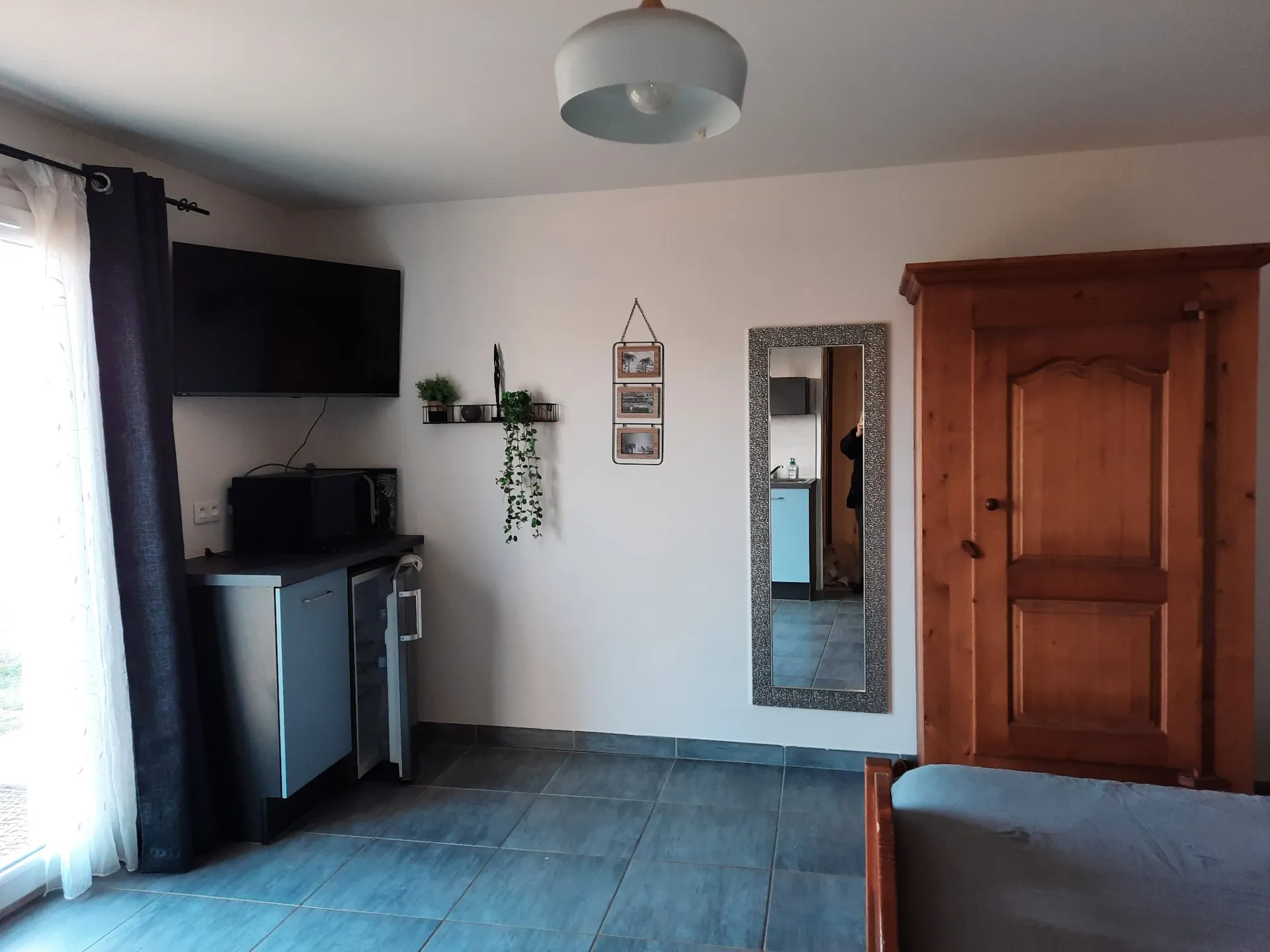 Studio neuf, confortable et totalement indépendant, pour les amoureux de la nature, avec wifi gratuite, terrasse privative avec jolie vue et chaise longue, lit bébé prêté.
