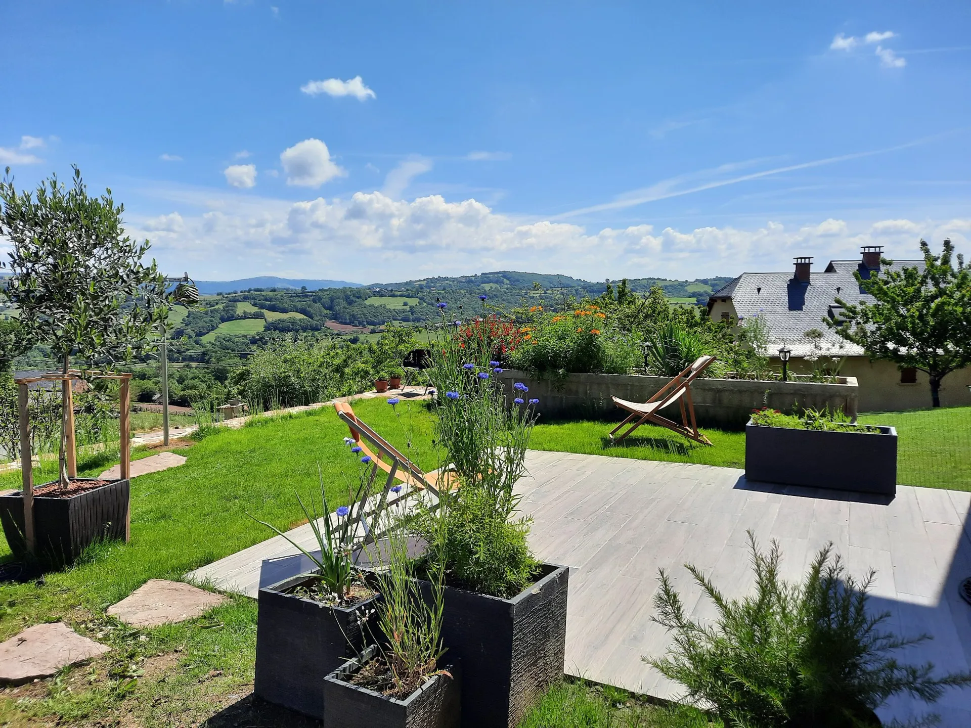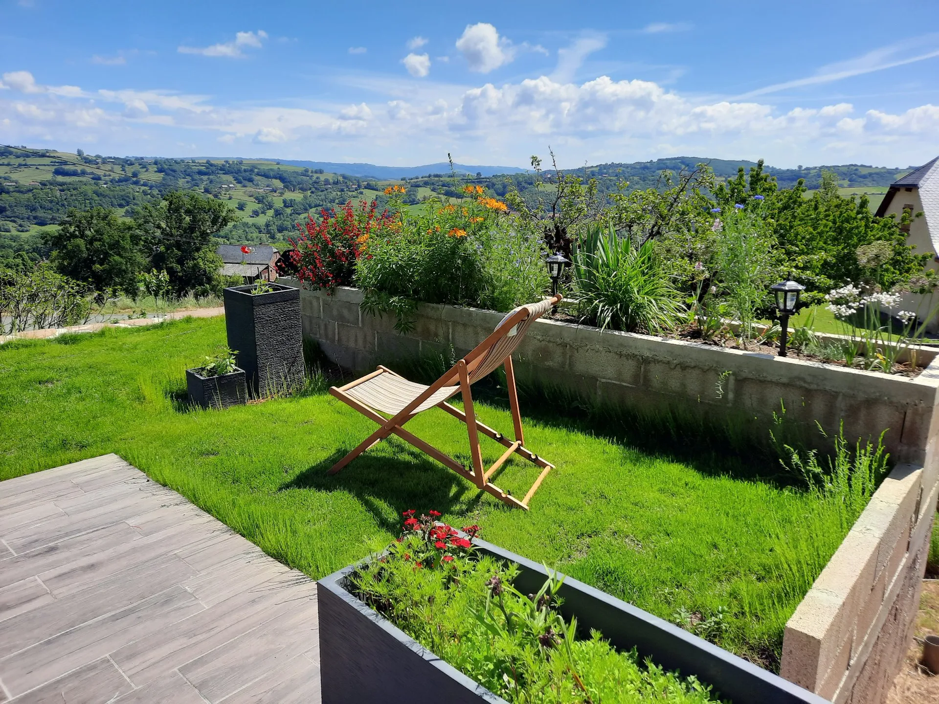 Terrasse privative avec chaises longues, BBQ et très jolie vue.
