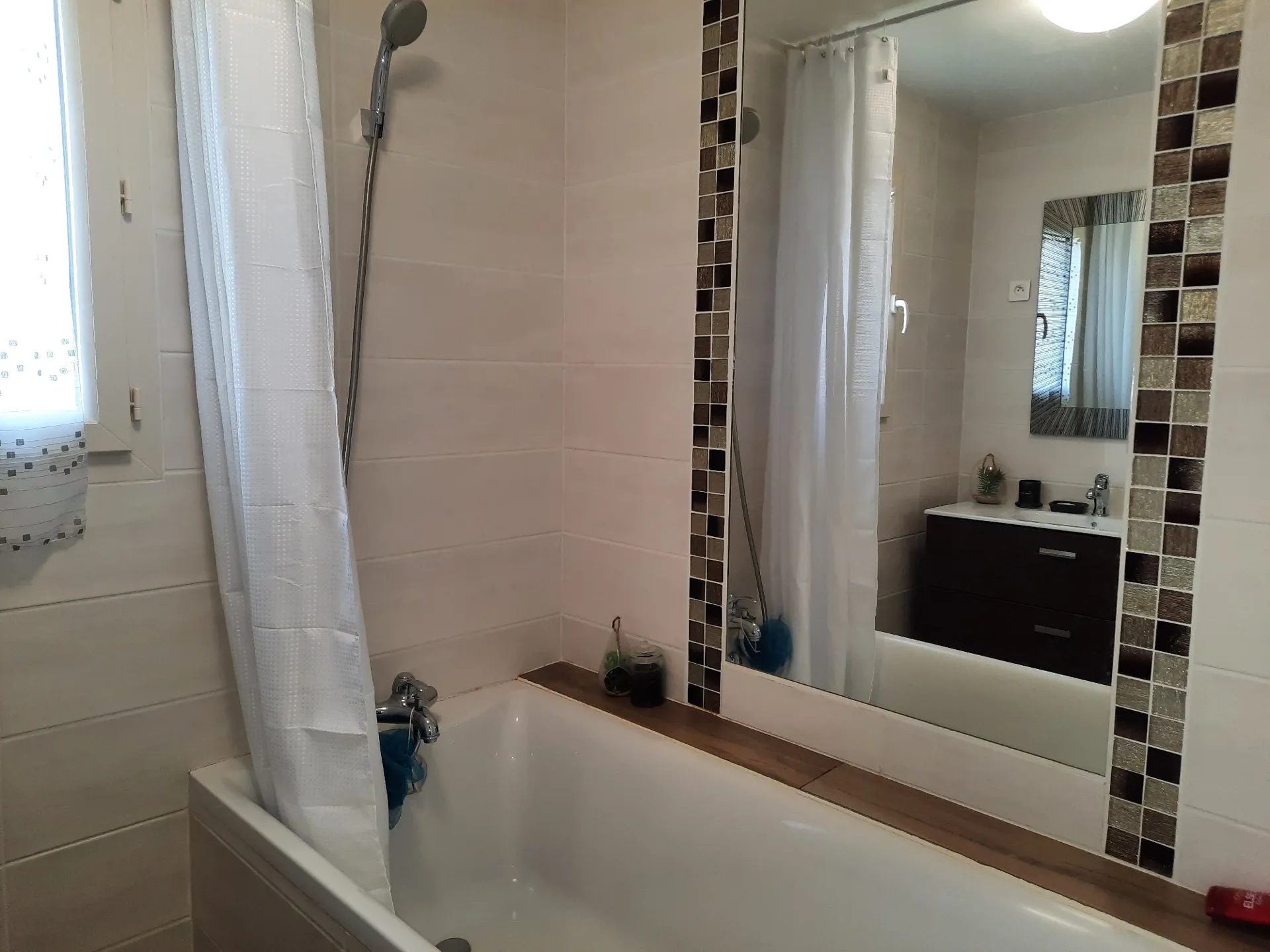 Sdb avec baignoire et fenêtre, WC indépendant.