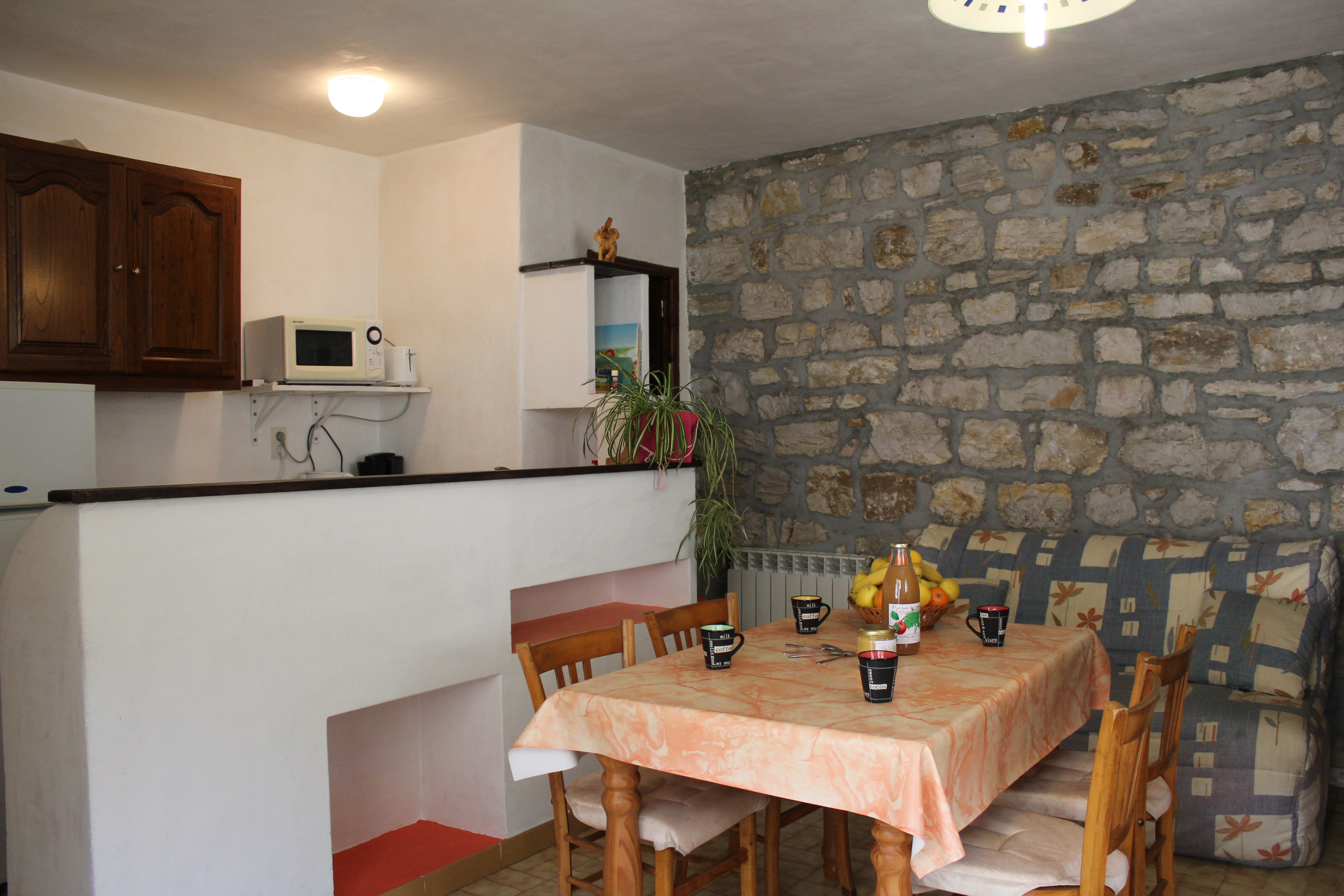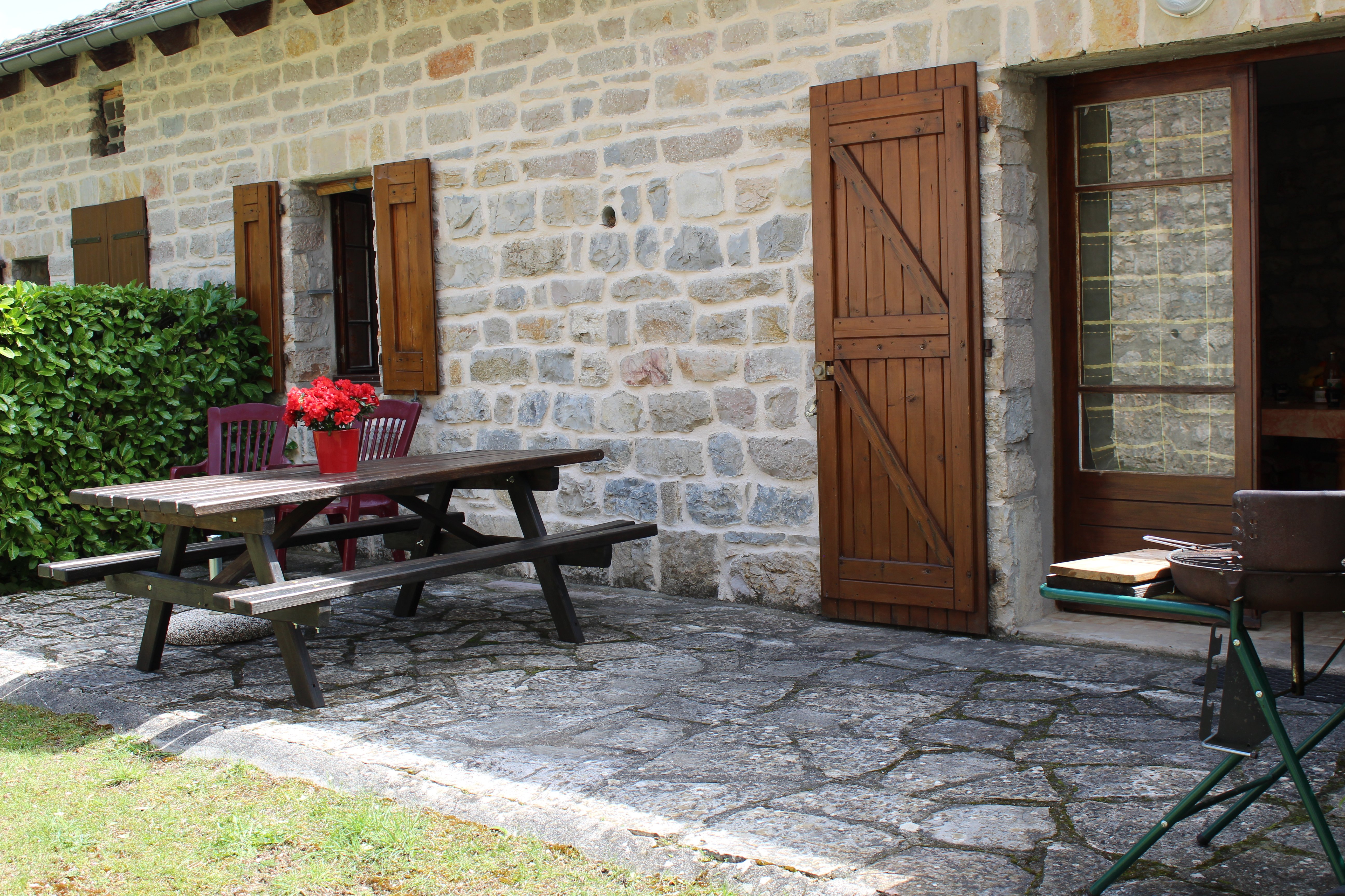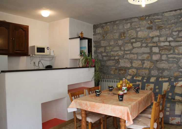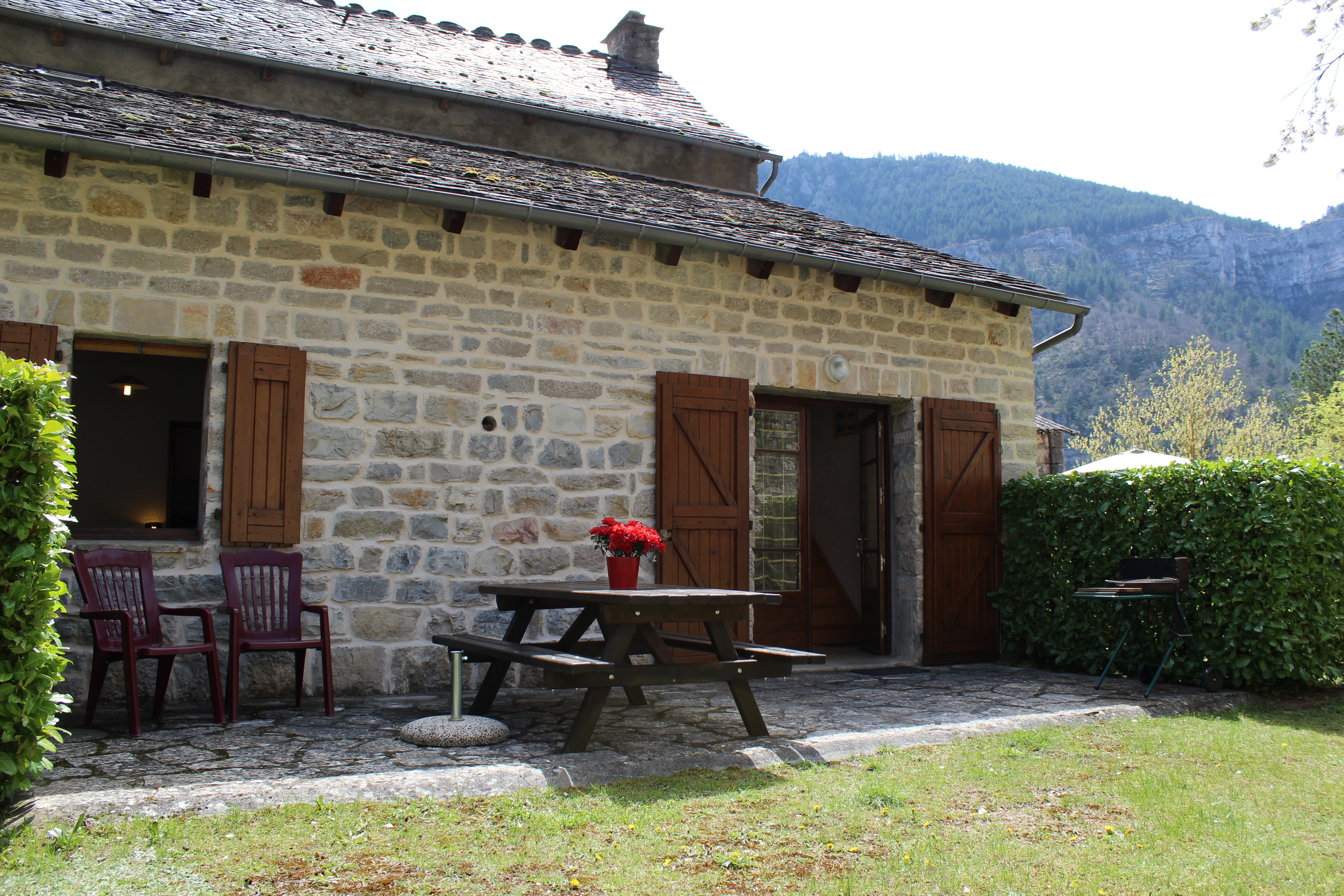 Maison ancienne rénovée, en pierre calcaire,indépendante en bordure de village, comportant deux gîtes,au coeur des Gorges du Tarn. Calme, cadre agréable dans site pittoresque, verdoyant, protégé et classé au patrimoine mondial de l’UNESCO. Baignade, canoë, randonnées pédestres, activités sportives diverses. A 5 minutes à pied au bord de l’eau. Boulangerie + petite épicerie à 200 mètres. Séjour avec banquette BZ, coin cuisine,micro-ondes, combiné-congélateur, grille-pain, bouilloire ; 1 chambre (1 lit 2 places)avec salle d’eau et à l’étage 1 chambre en mezzanine (2 lits 1 place)avec coin lavabo ; WC, lave-linge, chauffage central, grande terrasse pavée équipée, barbecue, terrain clos avec parking commun aux gîtes. Location de draps et ménage à la demande.
