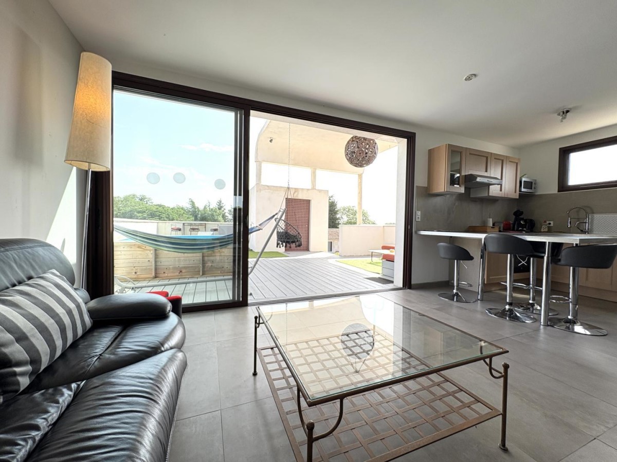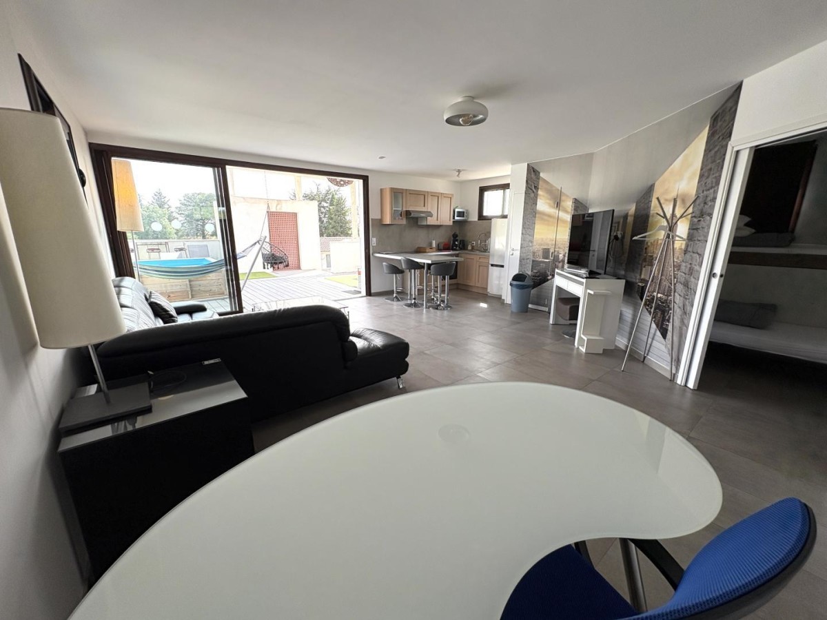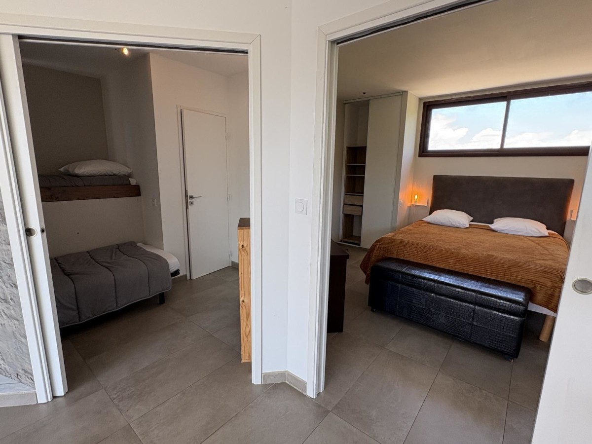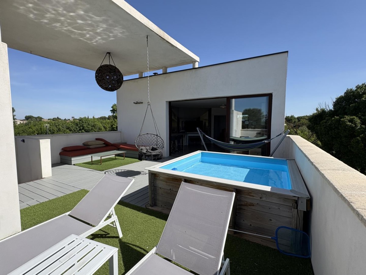 À seulement 20 minutes de Montpellier et des plages méditerranéennes, découvrez un lieu d’exception niché au cœur d’un paysage typiquement languedocien. Cet ensemble de gîtes et de chambres d’hôtes offre une véritable parenthèse de calme, tout en restant proche de l’effervescence de la ville. Chaque hébergement mitoyen dispose de son espace extérieur privé, pour savourer en toute intimité la douceur du climat et la beauté de la nature environnante. En commun, une splendide piscine avec alcôves invite à la détente, tandis que le sauna (en accès libre sur réservation), le babyfoot, le billard et les équipements sportifs viennent parfaire l’expérience. Ici, tout est pensé pour conjuguer sérénité et convivialité. Que vous souhaitiez vous ressourcer en pleine nature dans l’arrière-pays Héraultais ou bien profiter des attraits culturels et balnéaires de la région, ce lieu offre le meilleur des deux mondes : un refuge paisible et chaleureux à portée d’agitation urbaine. Le gîte « Le Penthouse » se situe au 2ème étage et comprend : – Un séjour lumineux avec TV ainsi qu’une cuisine toute équipée (lave-vaisselle, frigo/compartiment congélateur, four, micro-ondes, bouilloire, cafetière Senseo) – Une 1ère chambre avec un lit double en 160×200. – Une seconde chambre avec deux lits simples en 90×190. – Une salle d’eau (avec douche à l’italienne). WC indépendant. – Terrasse privative de 50m² avec mobilier de jardin, hamac, jacuzzi et sauna privatif. – Lave-linge privatif. A savoir : – Piscine ouverte toute l’année (1,60m de prof.), chauffée de mi-avril à fin septembre. – Parking privatif. – Possibilité de petit-déjeuner payant sur demande (selon disponibilités). – Borne de recharge pour véhicule électrique (en supplément).