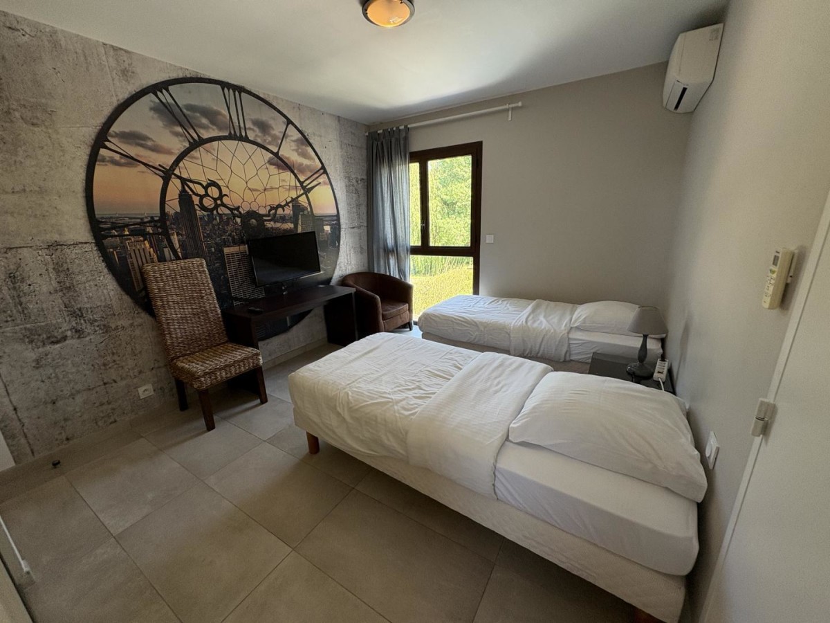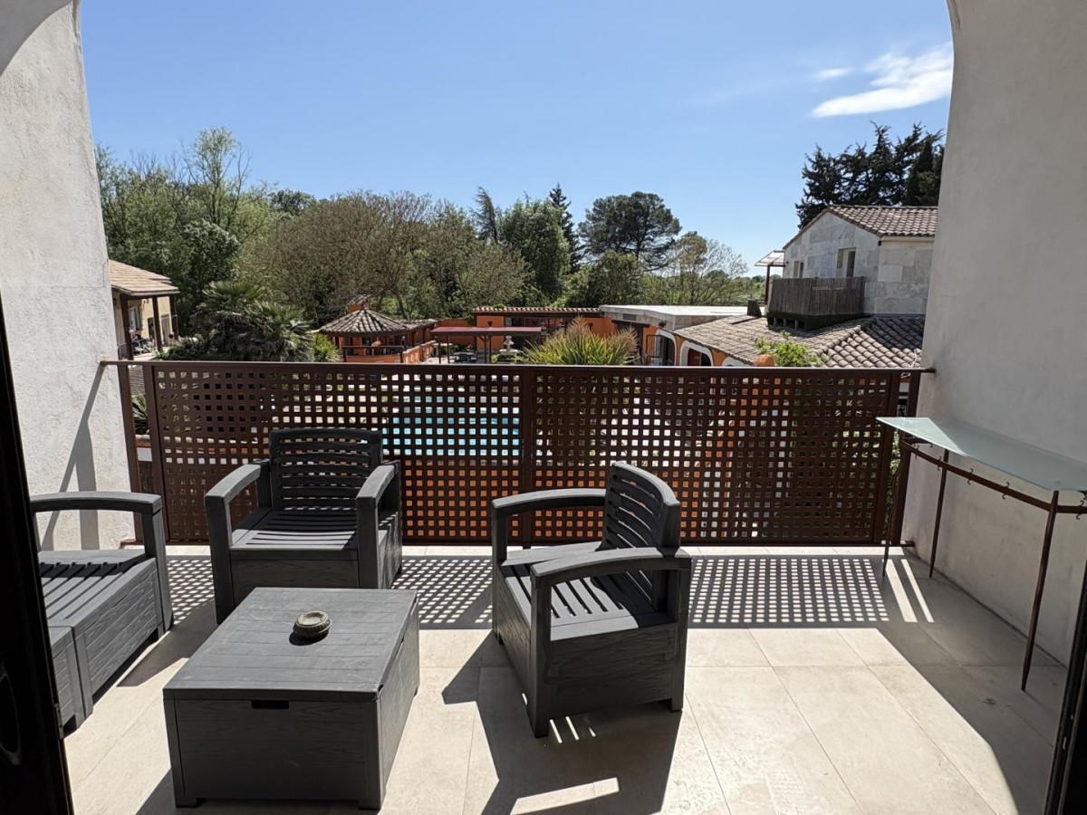 À seulement 20 minutes de Montpellier et des plages méditerranéennes, découvrez un lieu d’exception niché au cœur d’un paysage typiquement languedocien. Cet ensemble de gîtes et de chambres d’hôtes offre une véritable parenthèse de calme, tout en restant proche de l’effervescence de la ville. Chaque hébergement mitoyen dispose de son espace extérieur privé, pour savourer en toute intimité la douceur du climat et la beauté de la nature environnante. En commun, une splendide piscine avec alcôves invite à la détente, tandis que le sauna (en accès libre sur réservation), le babyfoot, le billard et les équipements sportifs viennent parfaire l’expérience. Ici, tout est pensé pour conjuguer sérénité et convivialité. Que vous souhaitiez vous ressourcer en pleine nature dans l’arrière-pays Héraultais ou bien profiter des attraits culturels et balnéaires de la région, ce lieu offre le meilleur des deux mondes : un refuge paisible et chaleureux à portée d’agitation urbaine. Le gîte « La Piscine » se situe au 1er étage et comprend : – Un séjour lumineux avec TV ainsi qu’une cuisine toute équipée (lave-vaisselle, frigo/compartiment congélateur, four, micro-ondes, bouilloire, cafetière Senseo) – Une 1ère chambre avec un lit double en 160×200, ainsi qu’un bureau. – Une seconde chambre avec deux lits simples en 90×190. – Deux salles d’eau (avec douche à l’italienne) et WC. – Terrasse privative de 15m² avec vue sur la piscine et mobilier de jardin. A savoir : – Piscine ouverte toute l’année (1,60m de prof.), chauffée de mi-avril à fin septembre. – Parking privatif. – Possibilité de petit-déjeuner payant sur demande (selon disponibilités). – Buanderie en commun avec les autres hébergements. – Borne de recharge pour véhicule électrique (en supplément).