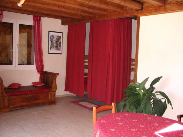 Entrée dégagement (2 lits superposés en 90) – cuisine américaine intégrée – salon – 2 chambres – salle d’eau – salle de bain (douche et baignoire) – WC indépendants. Equipement complet pour bébé.