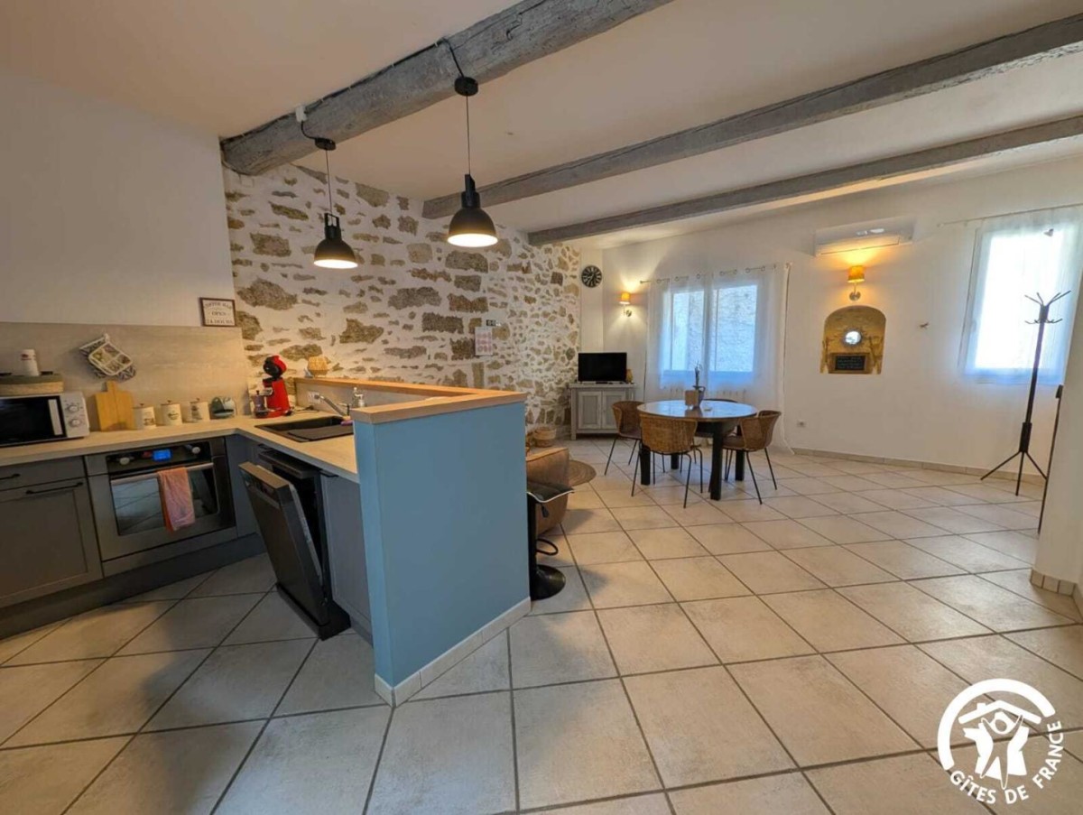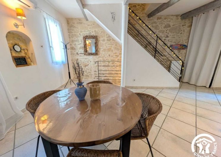 À Pézenas, ville d’art et d’histoire, vous séjournez au rythme d’un centre ancien vivant, où les ruelles pavées, les ateliers d’artisans d’art et les références à Molière accompagnent vos balades. Depuis le gîte, vous rejoignez facilement les animations, les spectacles et les marchés, tout en profitant d’un point de départ idéal pour découvrir le cœur touristique de l’Hérault. En quelques trajets, vous rejoignez l’étang de Thau, Agde ou Marseillan pour varier entre patrimoine, plages et dégustations de produits de la mer. Le gîte se déploie sur plusieurs niveaux pour offrir à la fois confort moderne et charme des vieilles pierres. Au rez de chaussée, vous disposez d’un garage privatif pour une voiture avec une entrée un peu difficile, très appréciable en centre ville, ainsi que d’une buanderie pratique avec lave linge et sèche linge, ainsi que des toilettes. Au premier étage, la pièce à vivre climatisée vous permet de partager vos moments de vacances en toute convivialité. L’espace salon et salle à manger comprend une télévision, un canapé convertible en 140×190 cm et une table pour vos repas. La cuisine ouverte met à votre disposition four, micro ondes, lave vaisselle, réfrigérateur, congélateur, bouilloire et machine à café pour préparer facilement vos repas. Au deuxième étage, vous trouverez la chambre du gîte, avec un lit en 140×190, ainsi qu’une salle d’eau qui comprend une douche, un WC et une vasque avec miroir. Ce gîte convient aussi bien à un couple souhaitant visiter Pézenas qu’à une petite famille ou à des amis. L’ambiance moderne associée aux vieilles pierres et la situation en plein cœur de Pézenas en font un lieu idéal, pratique et agréable pour découvrir l’Hérault tout en séjournant en ville.