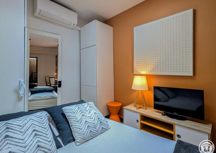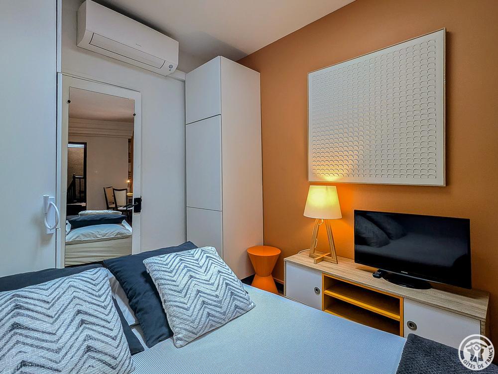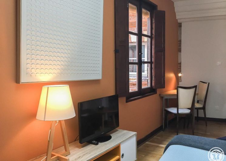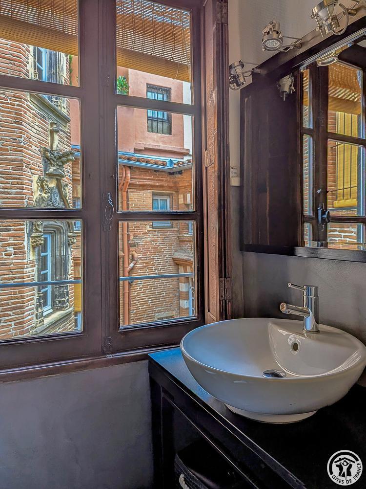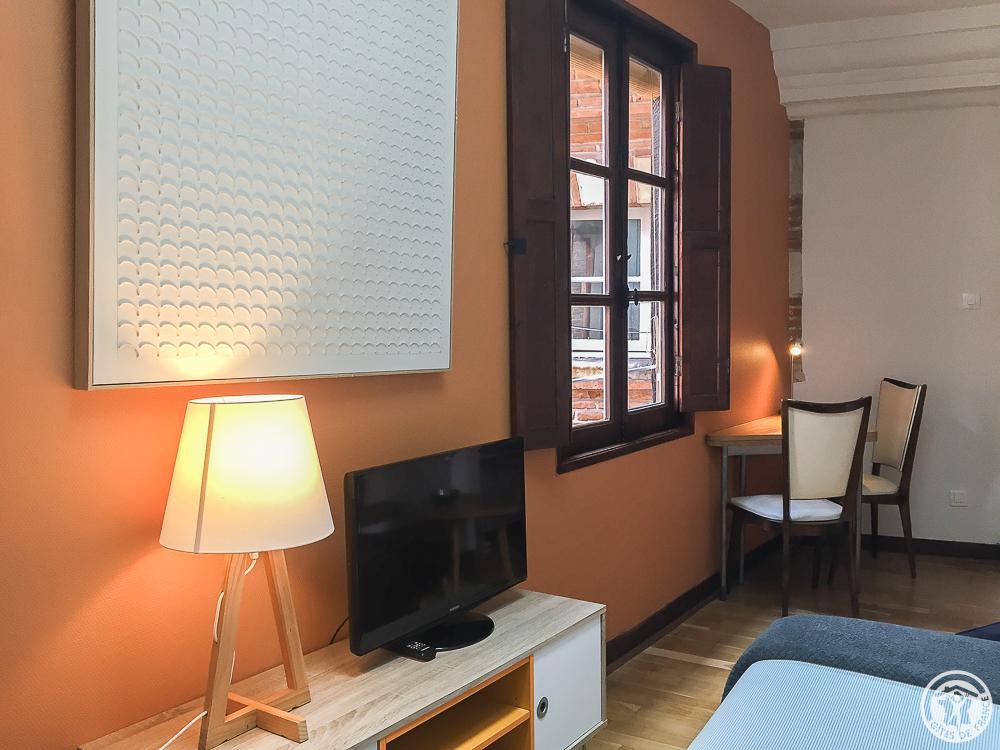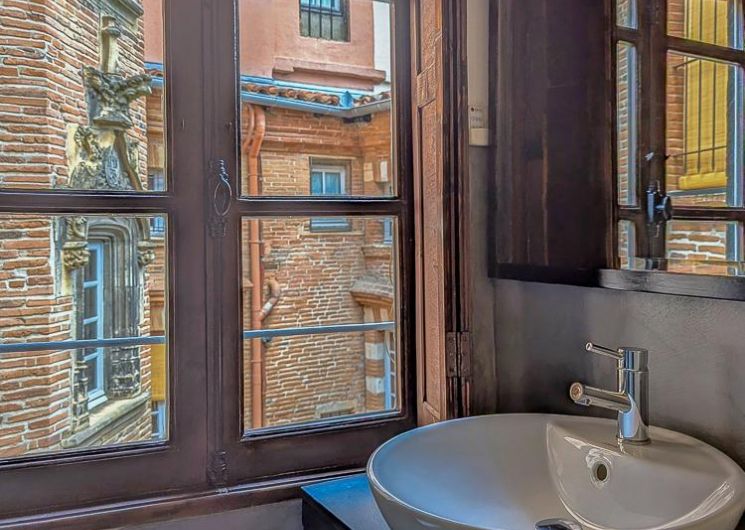 Dans cet hôtel particulier typique de l’architecture toulousaine où la brique est prépondérante, les différents bâtiments sont disposés autour d’une cour. Un escalier commun mène jusqu’à l’entrée du studio. Baigné de lumière, ce petit appartement de 17m² offre un cadre d’exception pour un séjour alliant confort et authenticité. La porte ouvre sur une pièce de vie avec une table à manger pouvant aussi servir de bureau, un espace détente, un lit confortable pour 2 personnes en 140cm, et une climatisation pour le bien-être de tous en été. Une petite cuisine intégrée propose l’essentiel pour préparer ses repas. Salle d’eau/WC. Depuis les fenêtres, vous pourrez admirer la superbe vue sur la tour capitulaire, tout en bénéficiant d’un calme absolu.