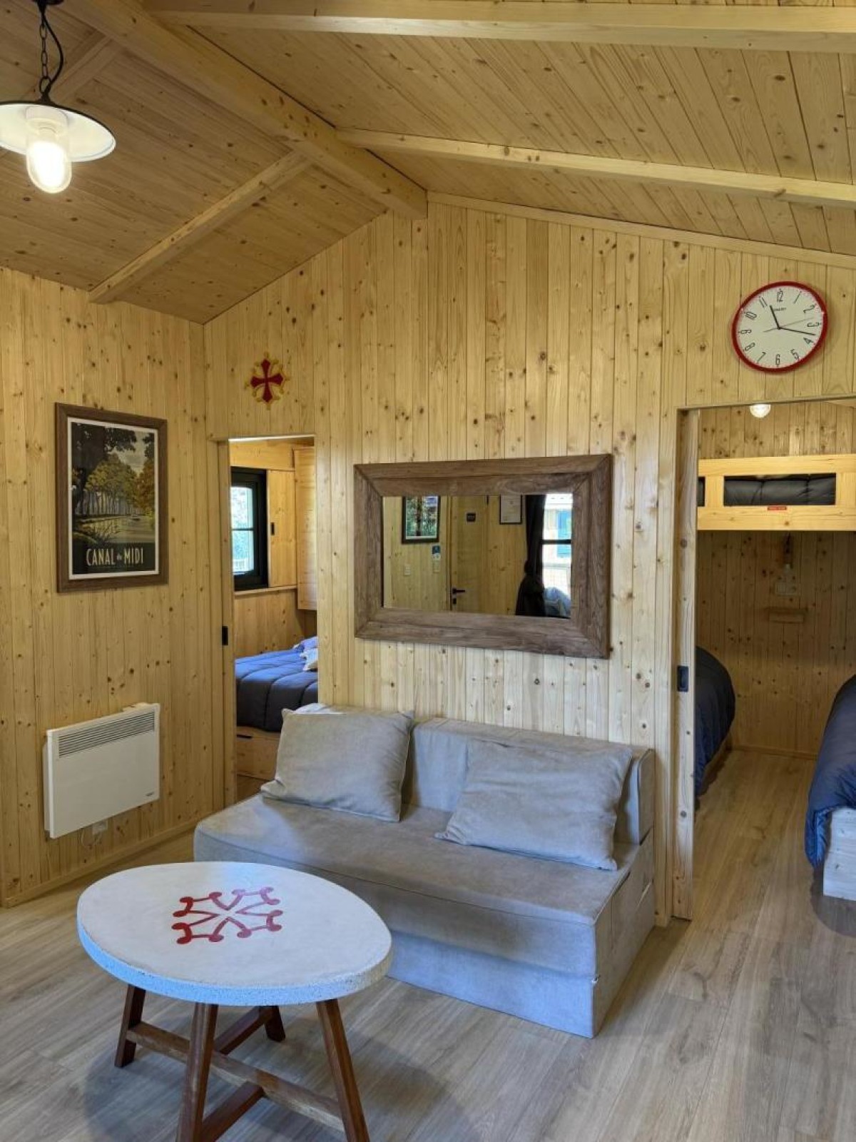 À Clermont-l’Hérault, dans un cadre calme et verdoyant, cette cabane en bois vous accueille pour un séjour dépaysant, à deux pas de sites naturels emblématiques. Le Lac du Salagou et le Cirque de Mourèze, tout proches, offrent un terrain de jeu idéal pour les amateurs de randonnée, de baignade ou de VTT. Plus loin, partez à la découverte du village classé de Saint-Guilhem-le-Désert et de son abbaye millénaire, ou laissez-vous surprendre par les panoramas spectaculaires du Cirque de Navacelles et des Gorges d’Héric. Ne manquez pas également de visiter l’agréable ville de Clermont l’Hérault. La cabane L’Agapanthe est conçue pour accueillir jusqu’à 5 personnes dans un cadre chaleureux et confortable. Elle dispose d’une agréable pièce de vie moderne et bien équipée, qui réunit une cuisine ouverte entièrement équipée (four, micro-ondes, réfrigérateur, congélateur, bouilloire, cafetière, bouilloire et grille-pain SMEG), un coin salon/salle à manger avec canapé et télévision, et une table à manger. La salle d’eau comprend une douche et une vasque avec miroir, et vous disposez également de WC indépendants. Vous profiterez de deux chambres, une avec lit double (160x200cm), l’autre avec trois lits simples (80x200cm). À l’extérieur, vous profiterez d’une belle terrasse couverte et ombragée avec plancha et table en bois, idéal pour se détendre, ainsi que d’un beau jardin paysager privatif avec trois transats et un œuf suspendu, au cœur d’un espace vert aménagé (avec par exemple des mangeoires pour oiseaux). Chaque cabane dispose de sa propre place de stationnement (borne de recharge électrique disponible, 12,5€ la recharge par nuit). Deux cabanes sont présentes sur la propriété, idéales pour des séjours en famille ou entre amis. Les points forts : hébergement insolite en bois sur pilotis, confort soigné, équipements de qualité, environnement calme, cadeau de bienvenue avec spécialités locales… idéal pour un séjour insolite, confortable et dépaysant dans l’Hérault !