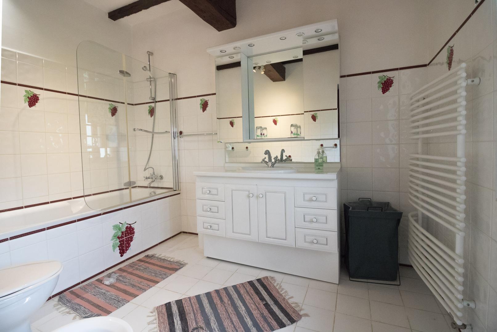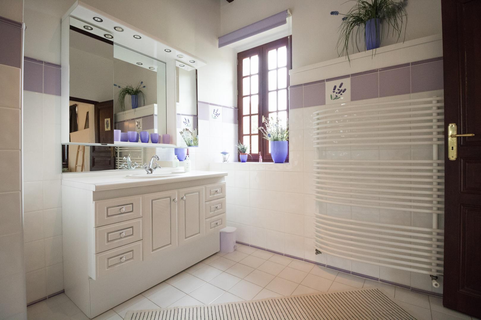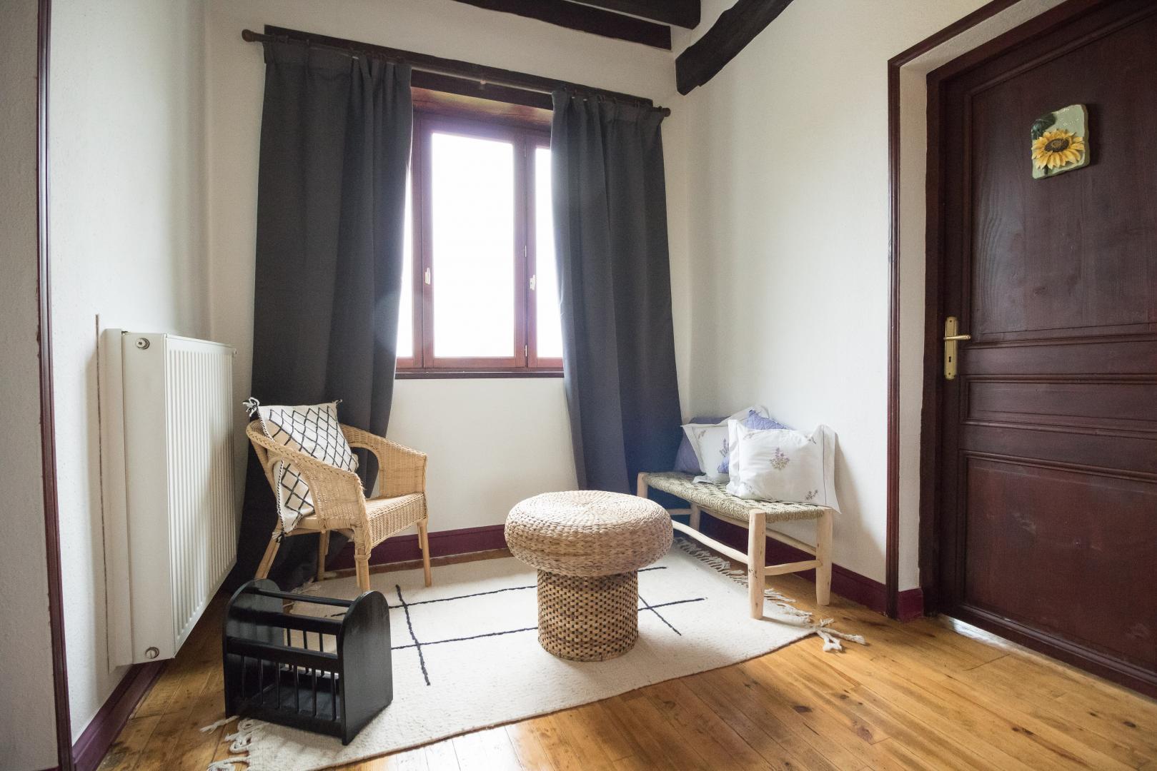 Au rez-de-chaussée : entrée, cuisine/salle à manger, salon, chambre Vigne (1 lit pour 2 personnes en 160cm et 1 lit d’appoint en 140cm avec salle de bains/WC privative). A l’étage : palier aménagé en coin-bureau et petit espace détente, salon de lecture/jeux, petite chambre bébé. Chambre familiale Jaune (1 lit pour 2 personnes en 160cm et un lit d’appoint en 140cm avec salle de bains/WC avec baignoire et douche), et Chambre Lavande (1 lit pour 2 personnes en 160cm et un lit d’appoint en 140cm avec salle de bains/WC).