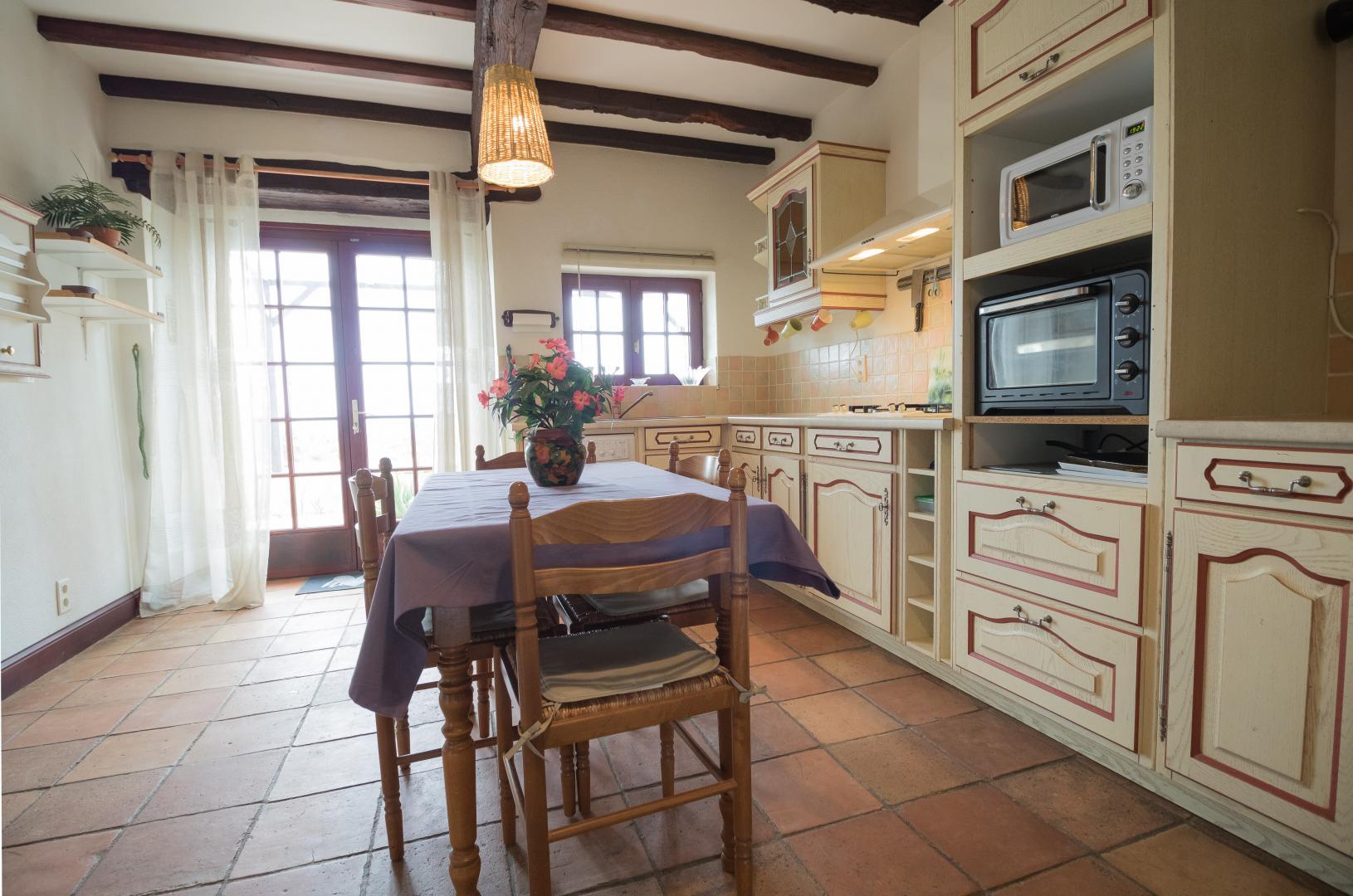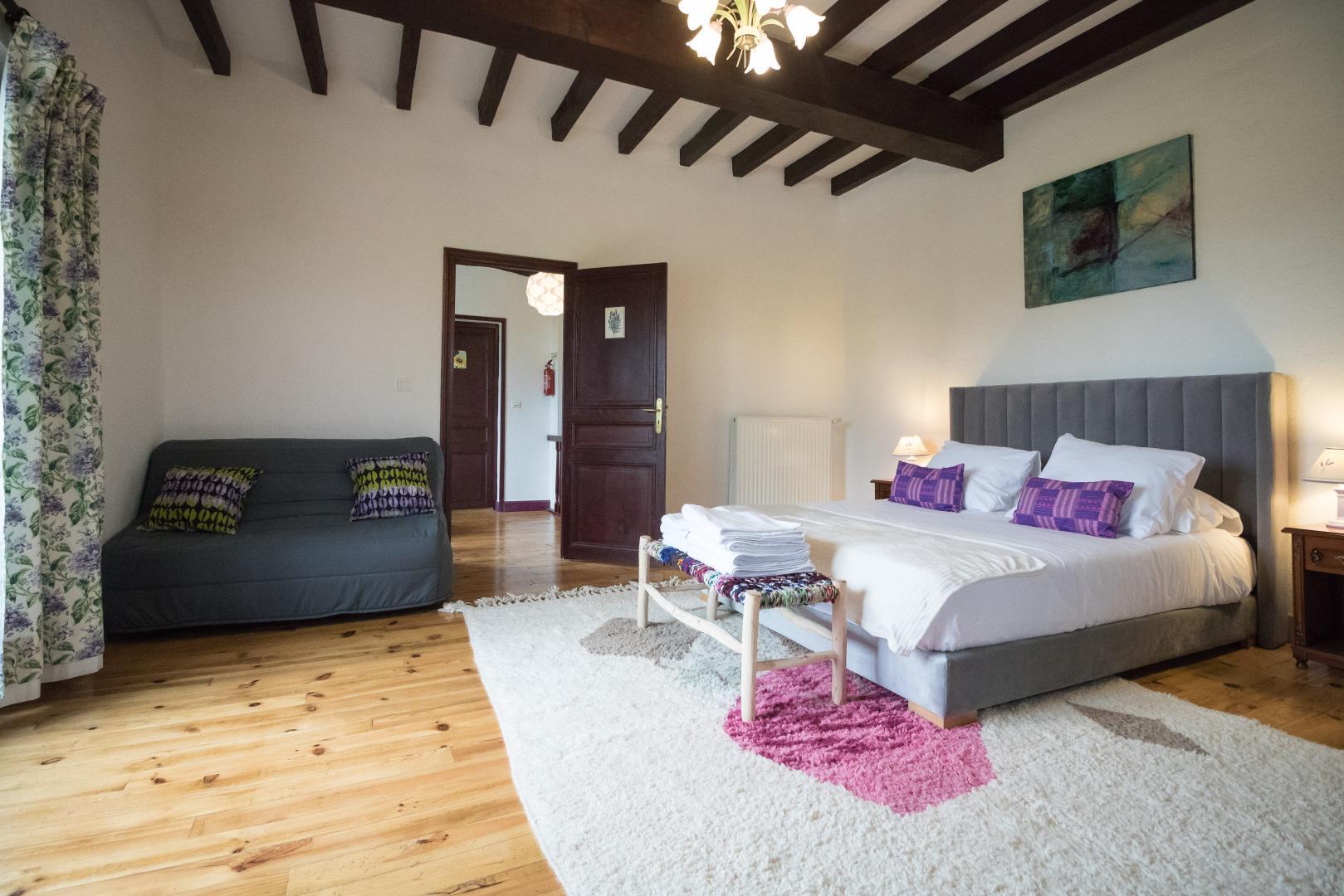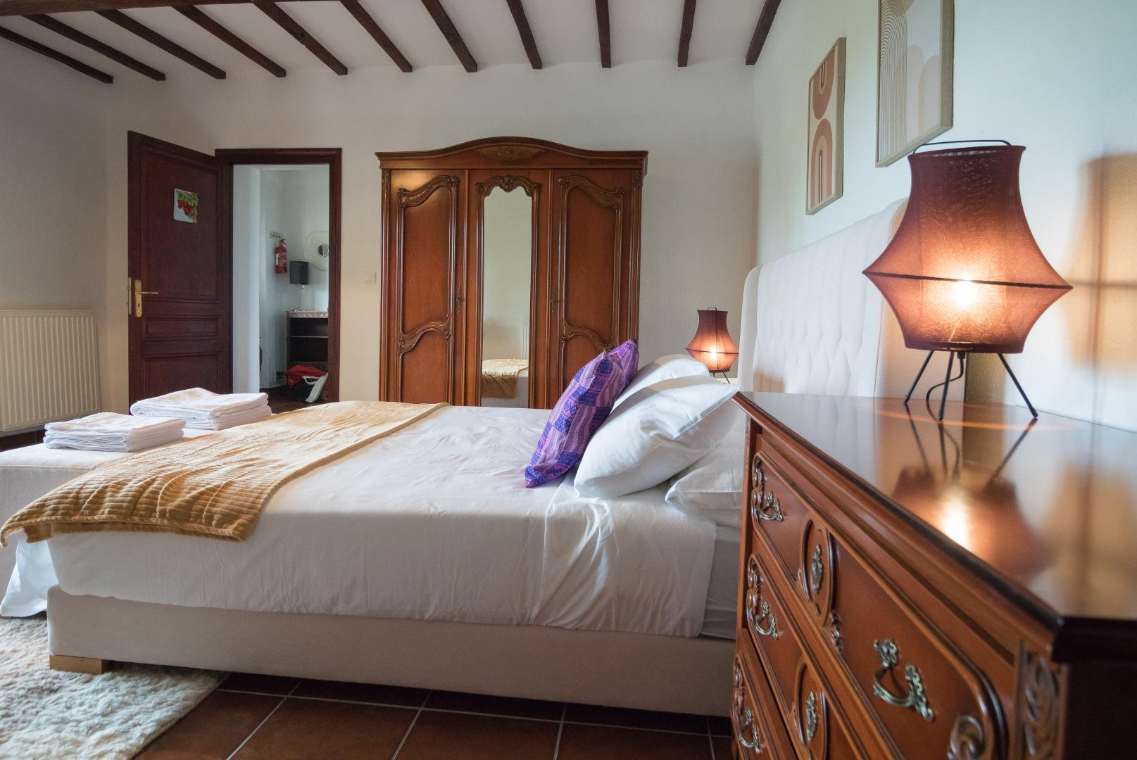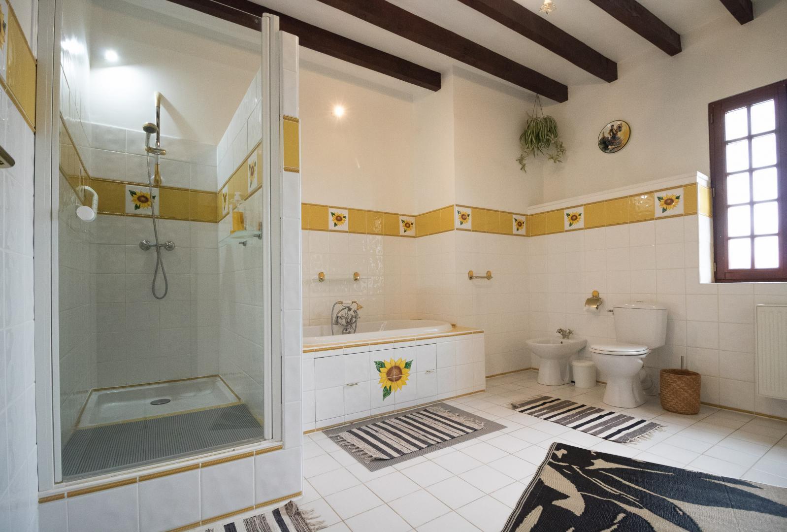 Au rez-de-chaussée : entrée, cuisine/salle à manger, salon, chambre Vigne (1 lit pour 2 personnes en 160cm et 1 lit d’appoint en 140cm avec salle de bains/WC privative). A l’étage : palier aménagé en coin-bureau et petit espace détente, salon de lecture/jeux, petite chambre bébé. Chambre familiale Jaune (1 lit pour 2 personnes en 160cm et un lit d’appoint en 140cm avec salle de bains/WC avec baignoire et douche), et Chambre Lavande (1 lit pour 2 personnes en 160cm et un lit d’appoint en 140cm avec salle de bains/WC).