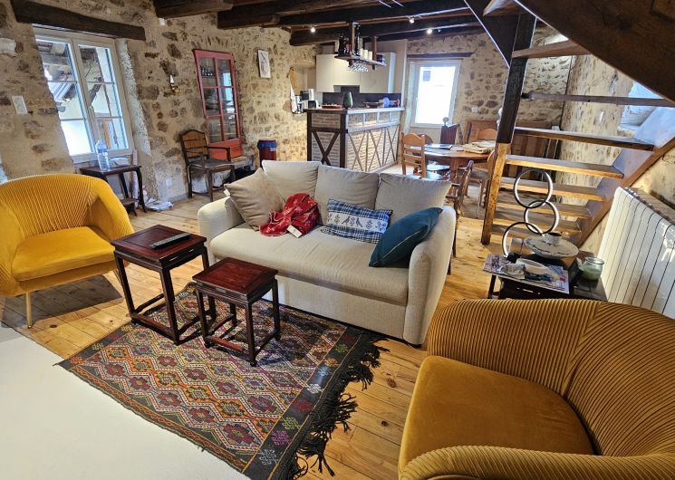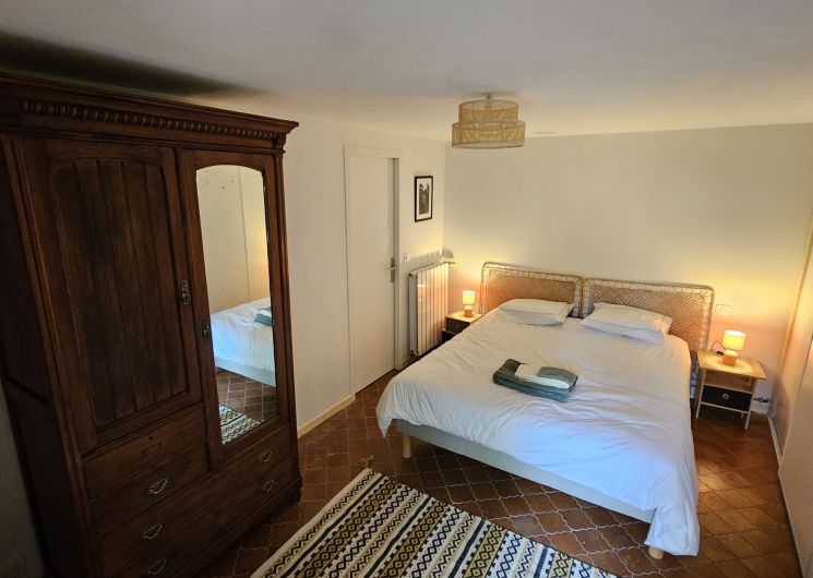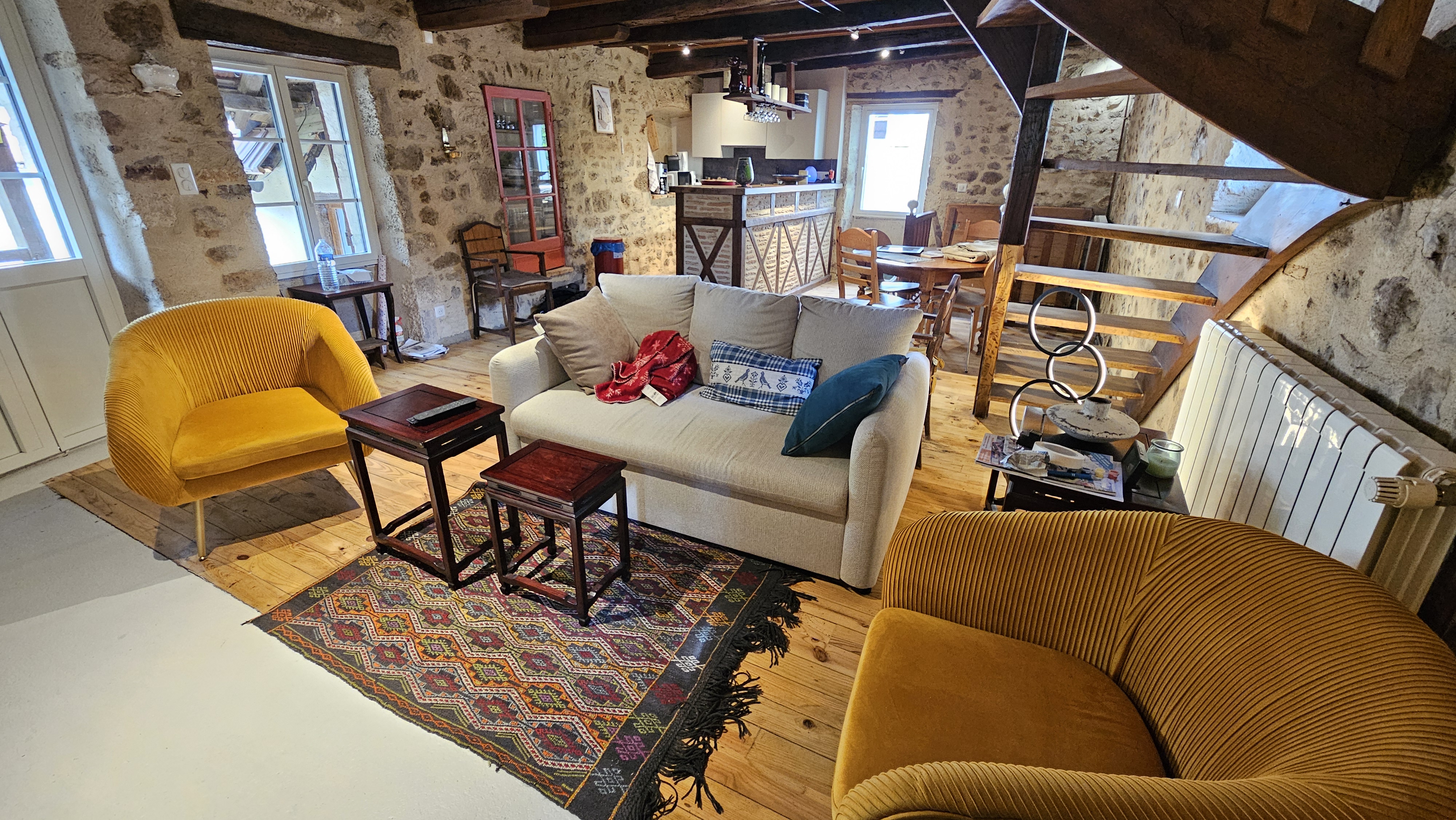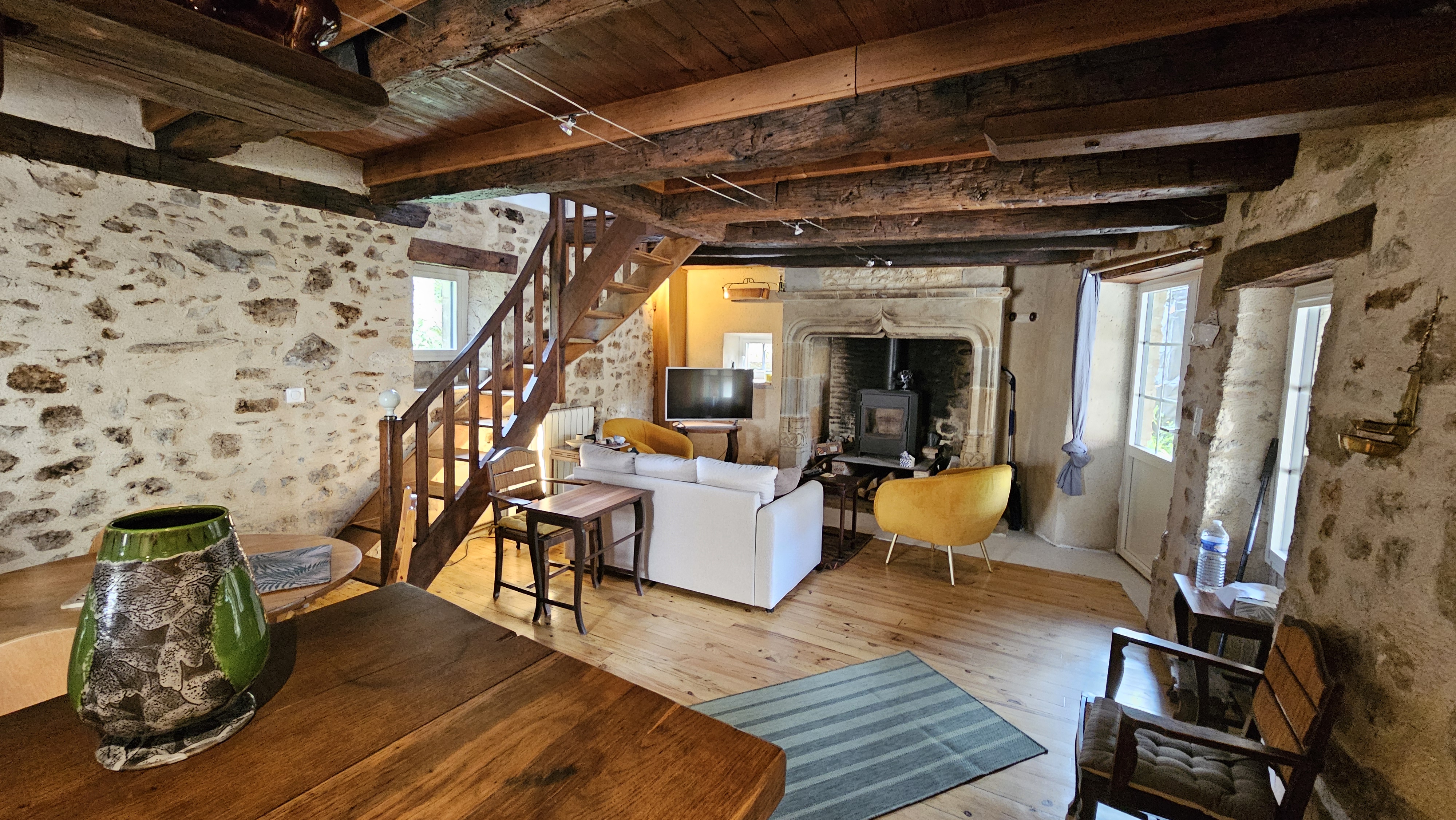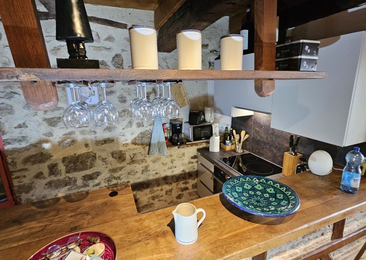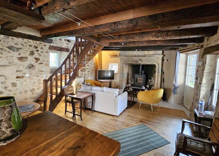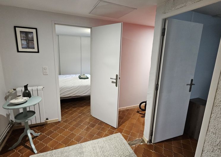 RDC inférieur, se trouve une chambre, meublée d’un lit queen size, d’une armoire de rangement avec penderie. Une porte permet d’accéder vers l’extérieur. Ce niveau accueille une vaste salle d’eau munie de deux vasques et d’une douche à l’italienne. WC séparé. Buanderie avec lave-linge, nécessaire de repassage et congélateur. RDC supérieur , la pièce de vie se compose d’un coin salon (canapé, fauteuils, télévision, WIFI, cheminée). Un bar en briquettes sépare la cuisine du coin repas. Vous disposez de tout l’équipement nécessaire à la vie quotidienne : réfrigérateur, lave-vaisselle, four, plaques à induction, micro-ondes, bouilloire, cafetière filtre et cafetière Nexpresso… 1er étage, une chambre, lit, queen size, climatisation . Sur le palier un couchage (Convertible 140). La pièce est équipée d’une armoire de rangement, d’un Vélux occultant. Un second WC est situé à cet étage.