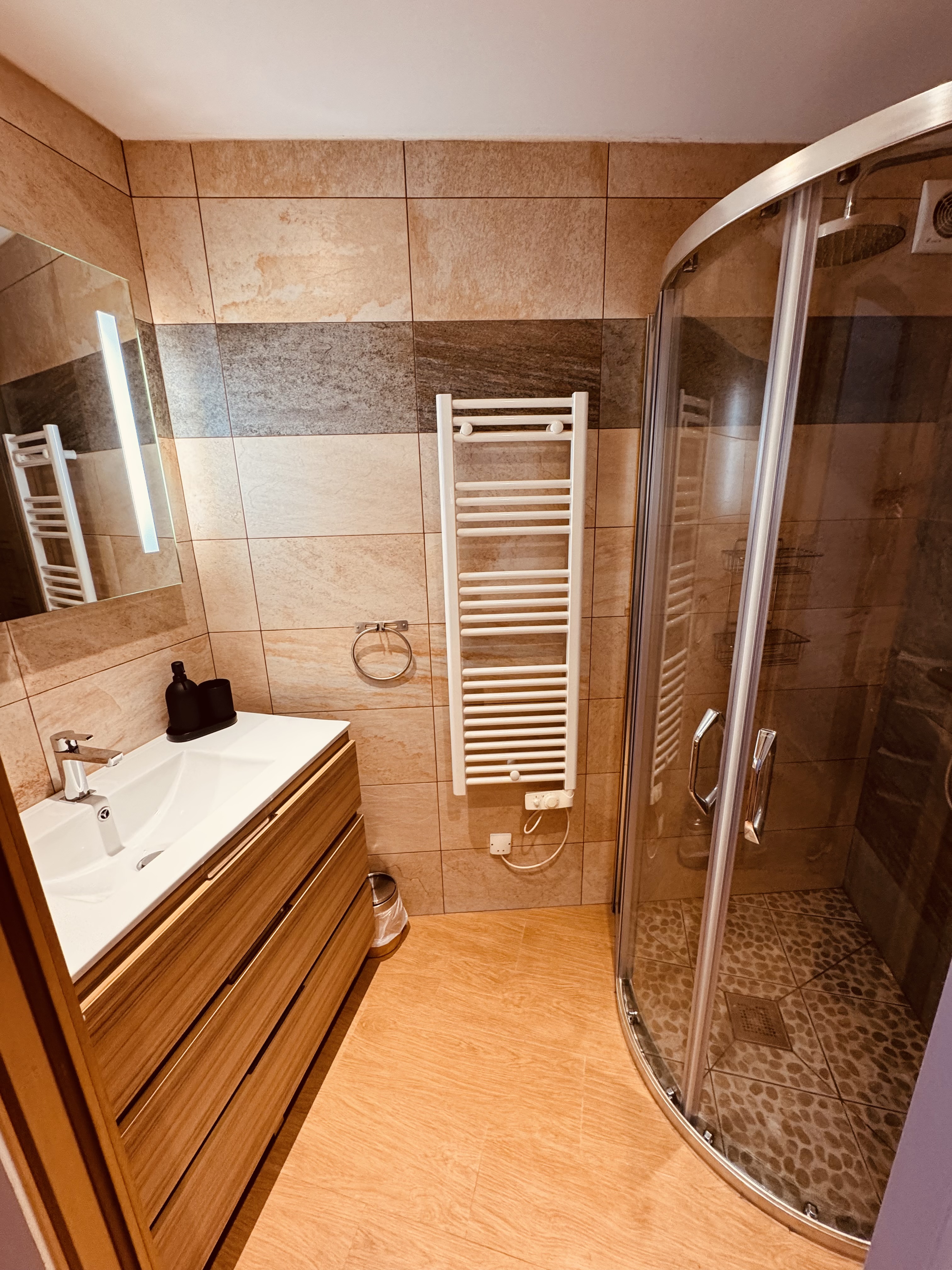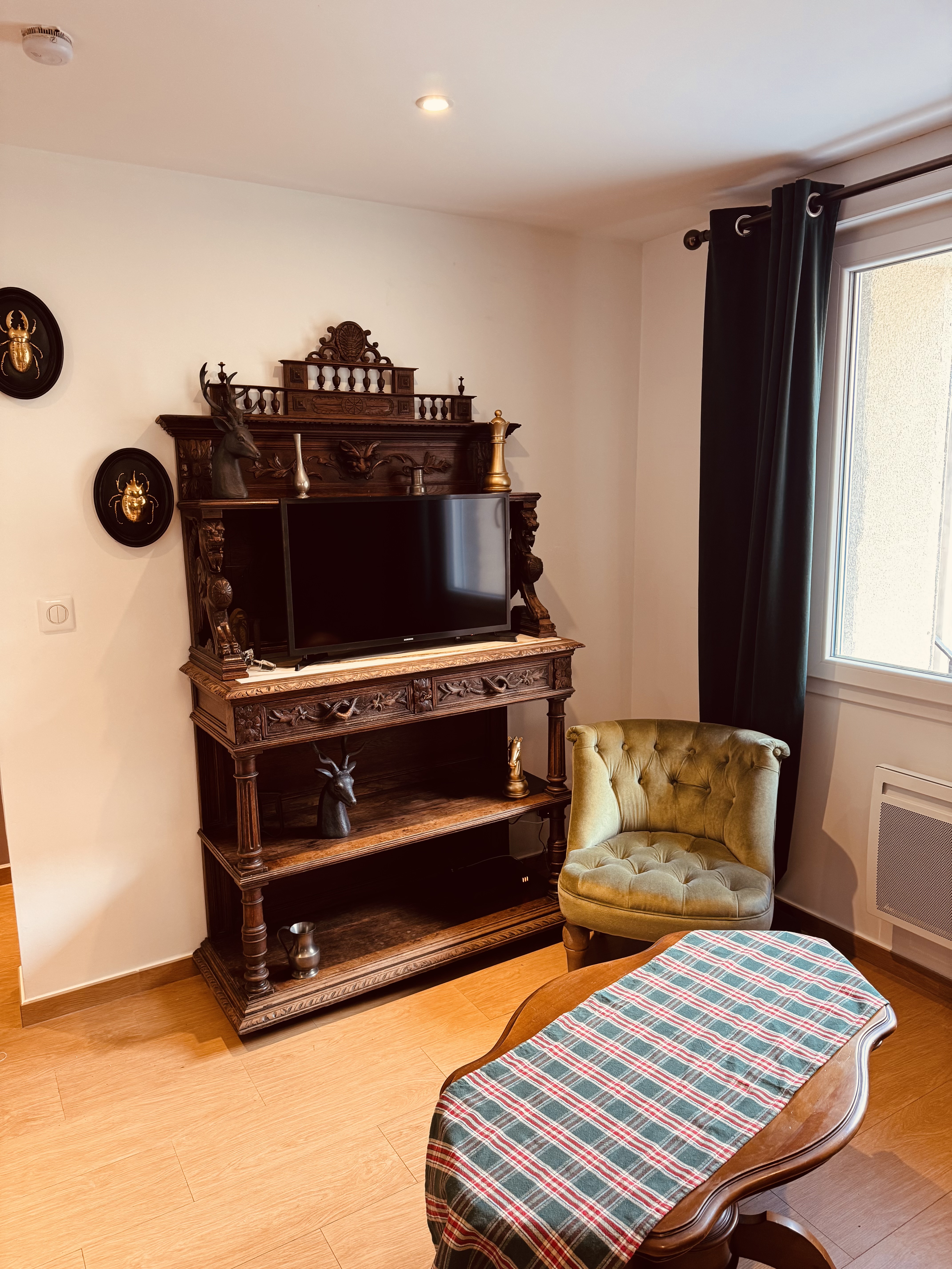 Appartement 2 personnes, en plein centre, dans une maison de village, comportant un autre logement. A 200 mètres de l’arrêt navettes gratuites. Un séjour-cuisine, une salle d’eau, une chambre (lit en 150), un poêle à granules, 2 TV écran plat, 1 machine à laver, 1 lave vaisselle, rangement skis. Linge de maison fourni. Animaux non autorisés. Non fumeur