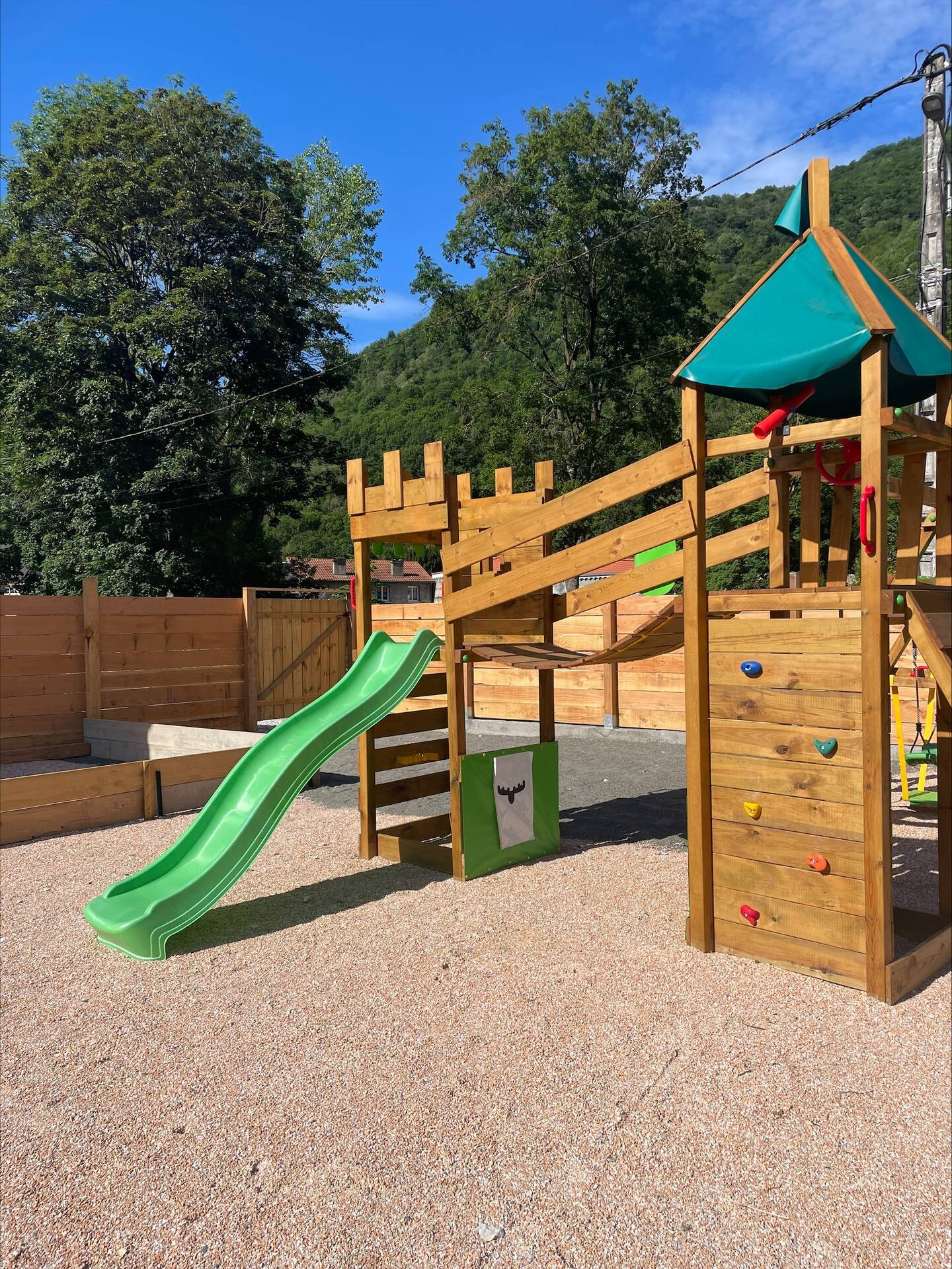 L’ensemble du mobilier est neuf et soigné. Chaque gîte a 1 terrasse close avec salon extérieur et table à manger et 1 barbecue. Un aire de Jeux composé d’1 terrain de pétanque, un babyfoot, une table de ping-pong, 1 toboggan pour les enfants.