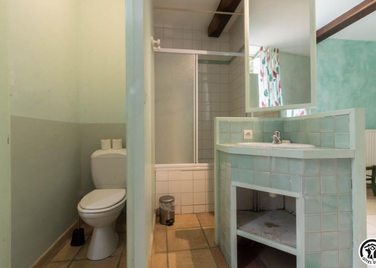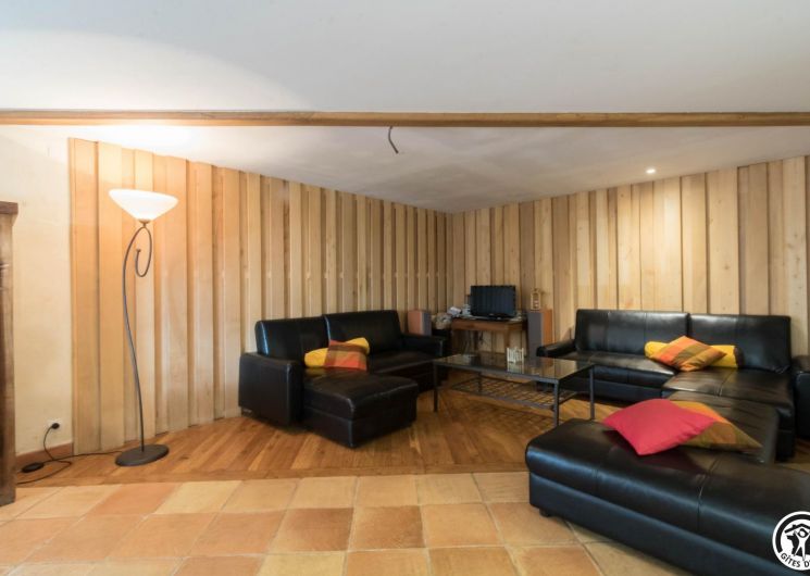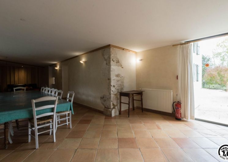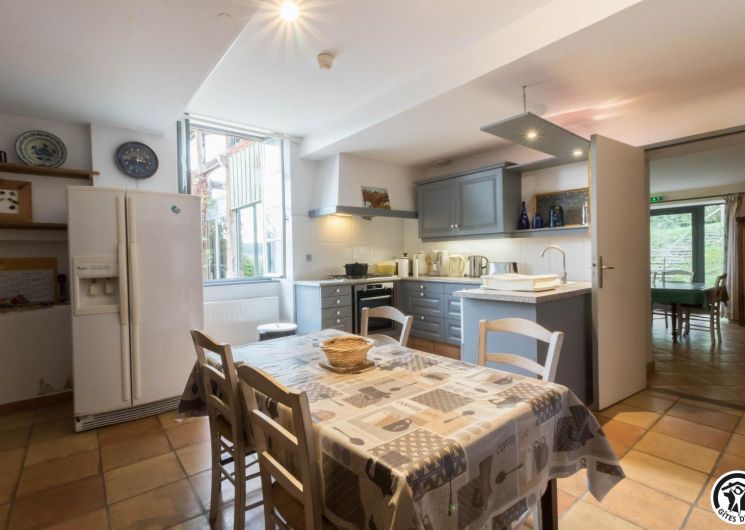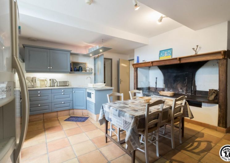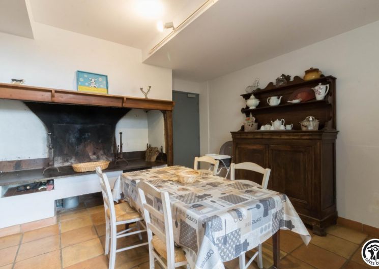 – Rez-de-chaussée : cuisine traditionnelle, avec local plonge séparé (lave-vaisselle et lave-linge), dotée d’une grande cheminée. Salle à manger de 85 m² avec cheminée et espace TV/lecture pour 40 personnes, accès sur l’extérieur. 2 chambres avec chacune 2 lits en 90*190cm, jumelables. Toilettes spacieux pour les lieux communs (2 lavabos, 2 WC, 2 miroirs, 1 douche). Accessible aux personnes handicapées.