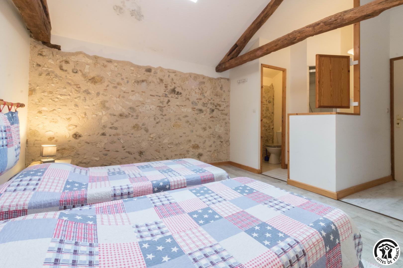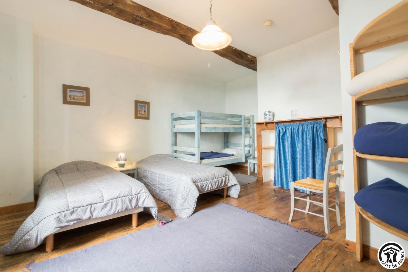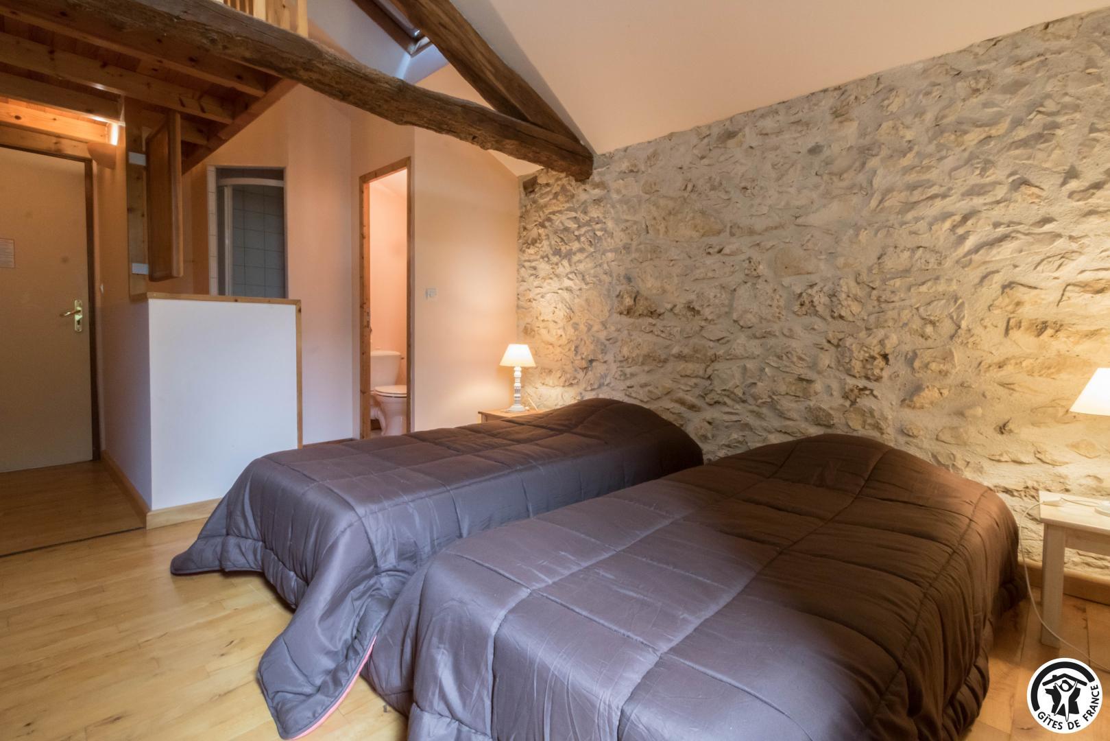Gîte sur 2 niveaux – 6 chambres avec salle d’eau/WC privatives – 15 lits simples et 5 lits d’appoint pliables :