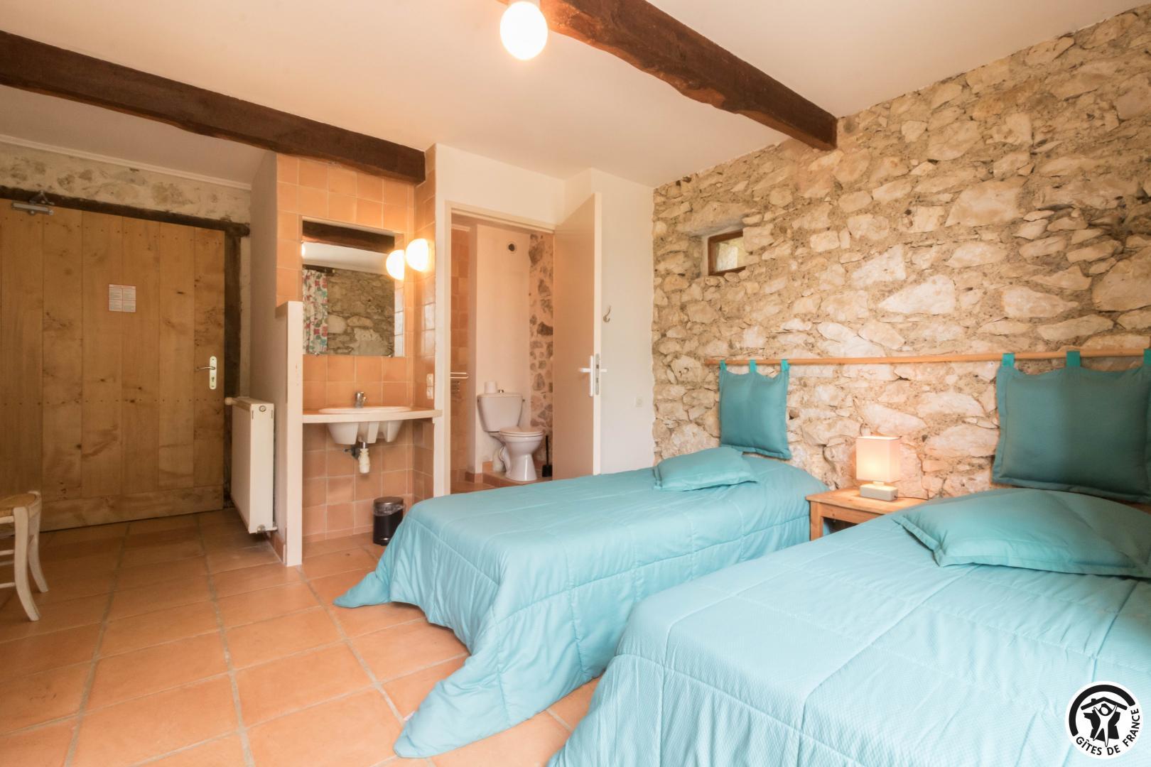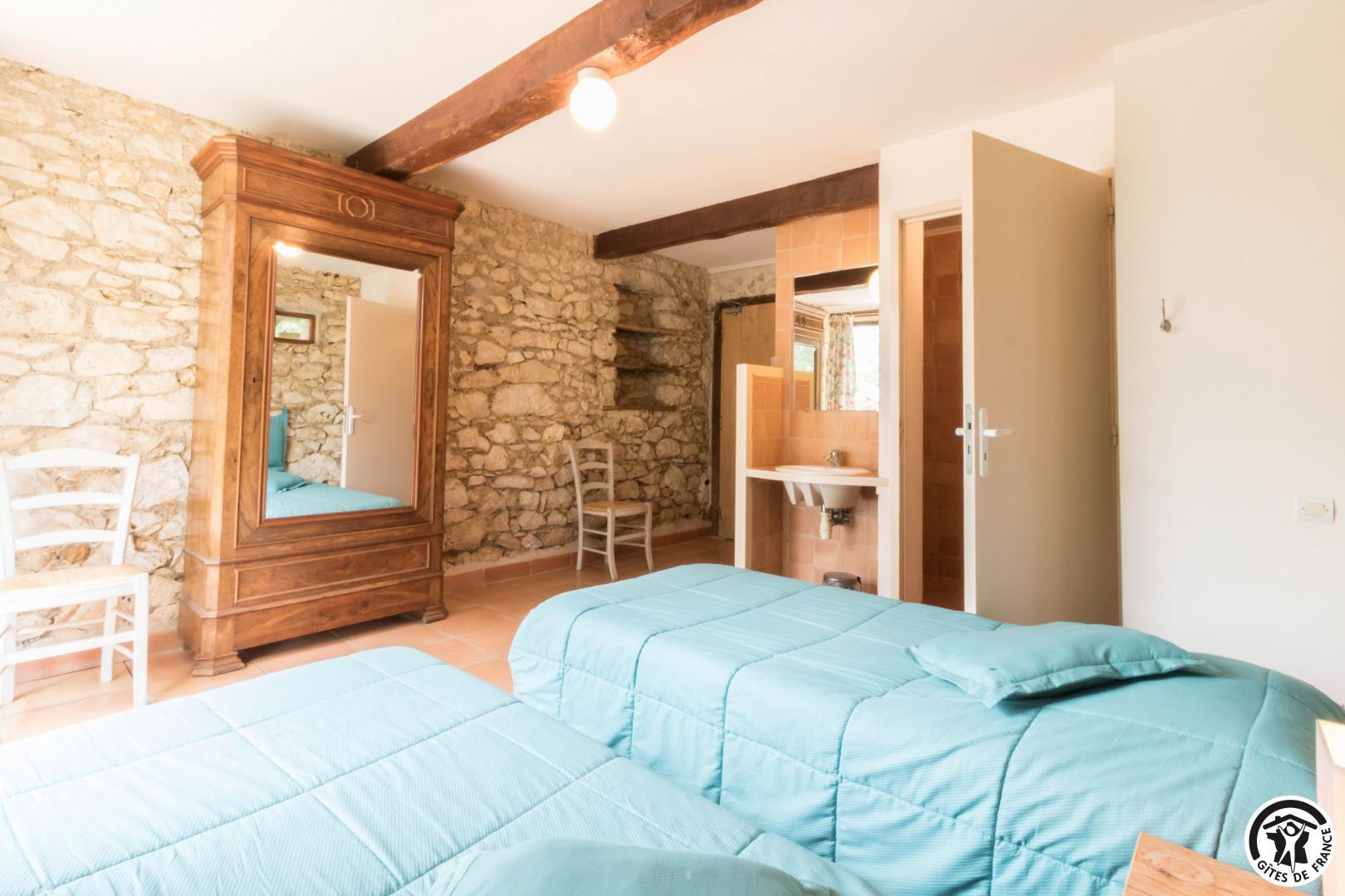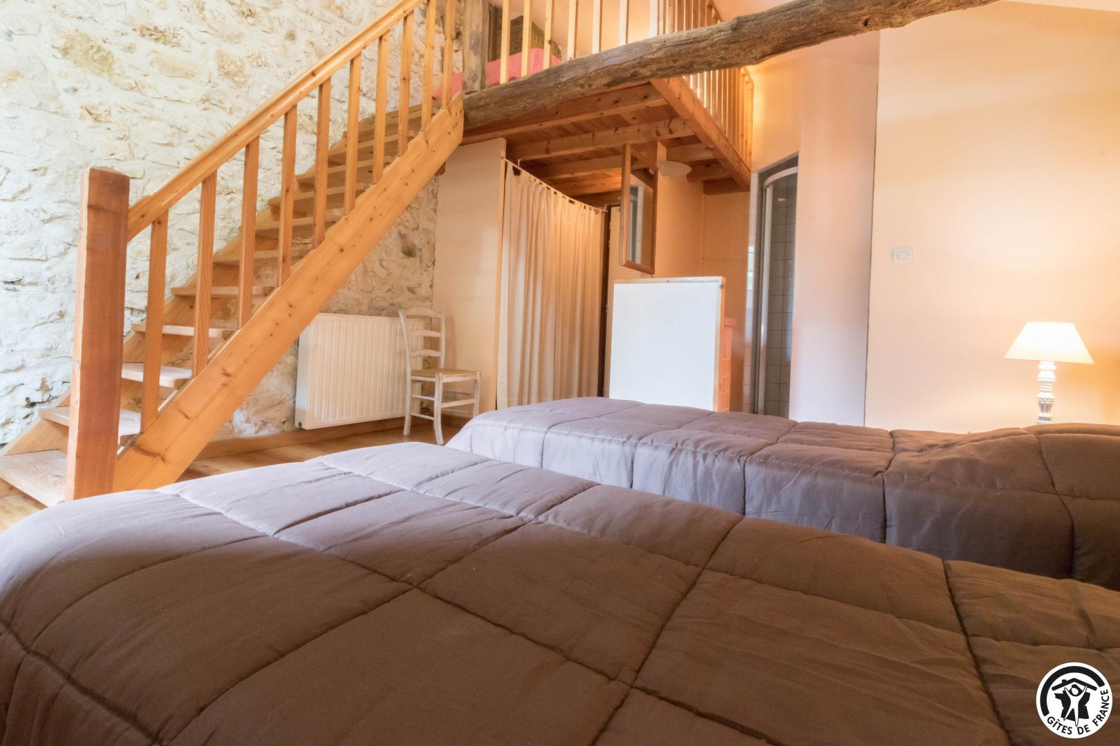 Gîte sur 2 niveaux – 6 chambres avec salle d’eau/WC privatives – 15 lits simples et 5 lits d’appoint pliables :