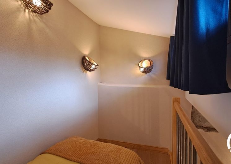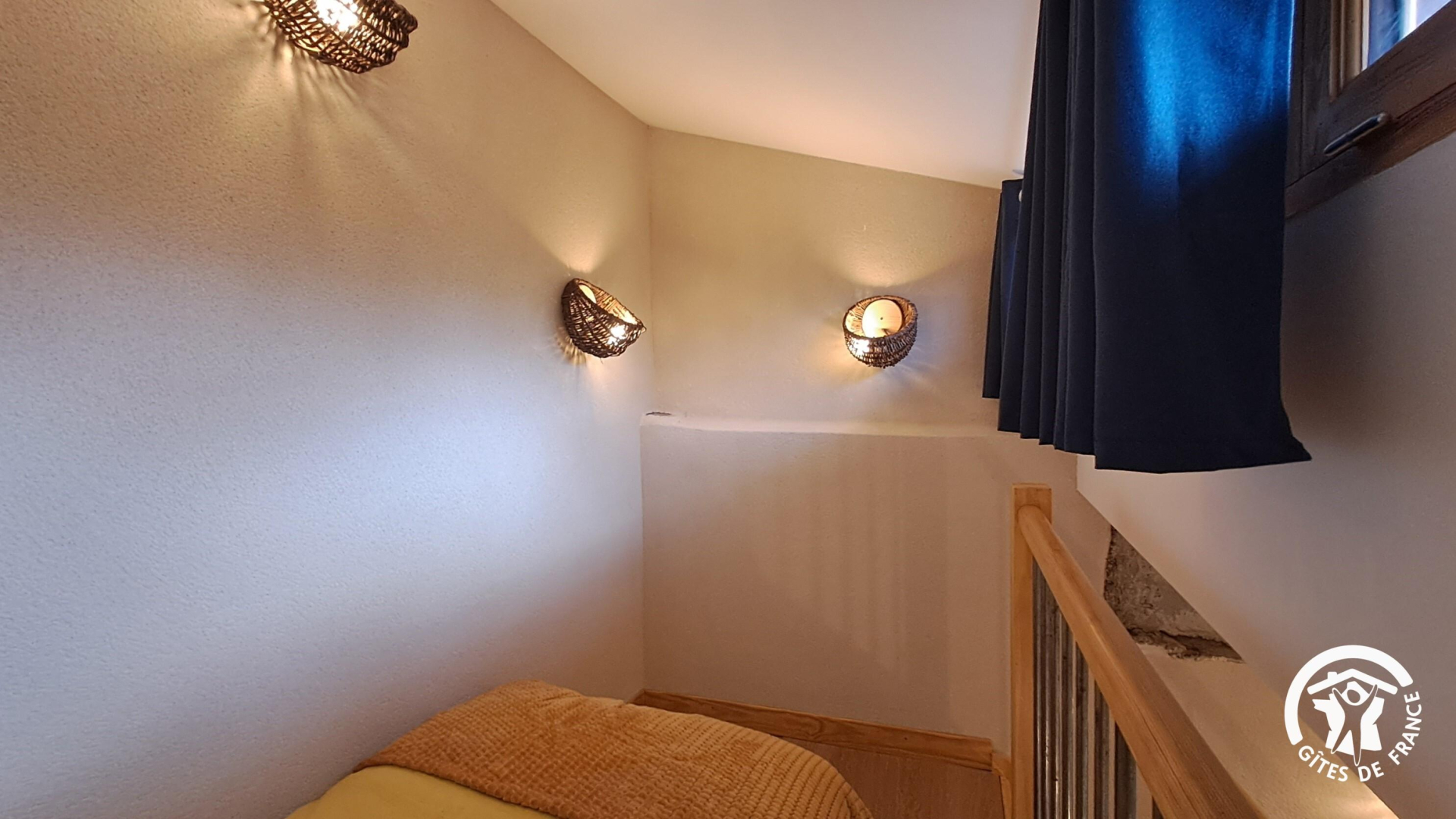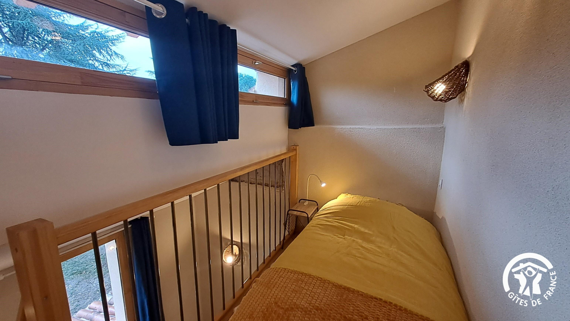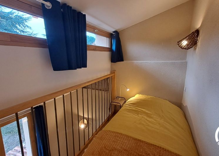 Au premier étage, sur le pallier climatisé, un lit simple en 90cm, idéal pour un premier enfant ou couchage d’appoint. Juste au-dessus, au deuxième étage un peu plus étroit, un second lit en 90cm pour un enfant également.