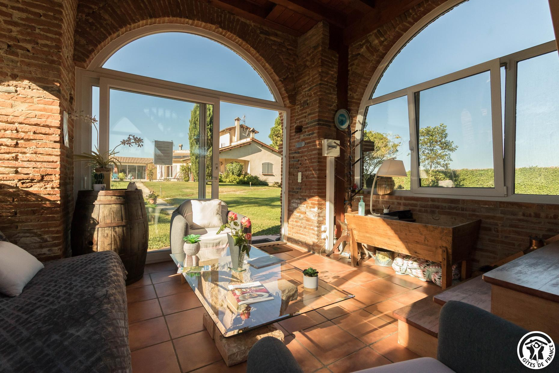 Au loin, une allée de pins parasol d’où s’élève un majestueux pigeonnier parfaitement restauré…Vous êtes arrivés pour profiter d’un séjour romantique et original à souhait ! Une véranda épousant la forme des arcades vous permettra de vous délasser tout en profitant de la jolie vue sur le jardin paysager et la piscine, la nuit sera douce sous la magnifique charpente…