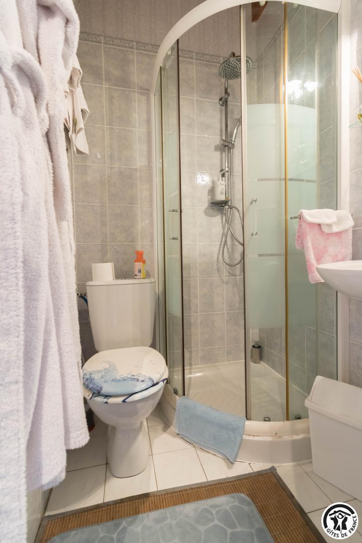 Dans la maison des propriétaires et proche de la piscine commune de 11x5m (ouverte de juin à septembre) : salle commune avec coin-salon (TV), jeux (baby-foot) et salle d’eau/WC. Table de ping-pong également.