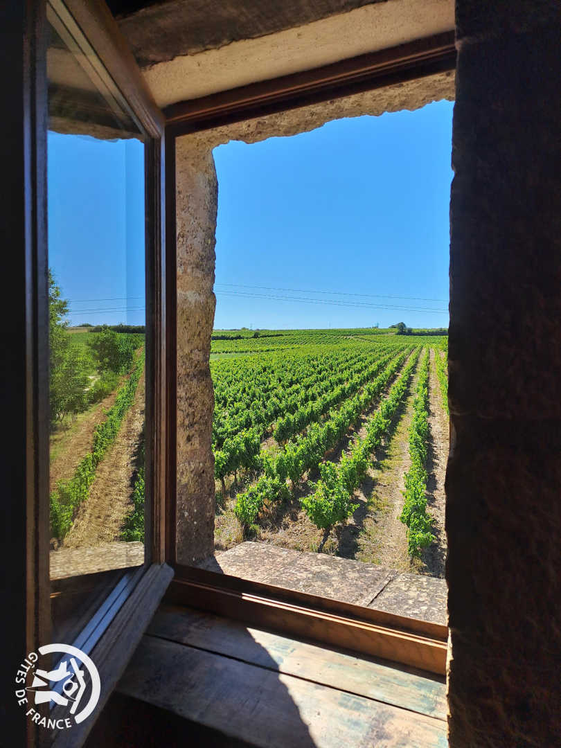 Gîte aménagé dans un pigeonnier typique du Gaillacois, immersion totale dans les vignes, restauration coquette (vitraux, fer forgé).