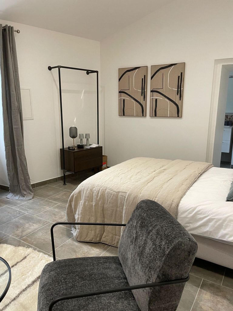Appartement idéale pour un couple avec une grande pièce qui comprend un coin dormir et un coin salon avec TV, cuisine séparée et très bien équipée, salle d’eau avec douche, lavabo, WC et lave linge. Piscine partagé.