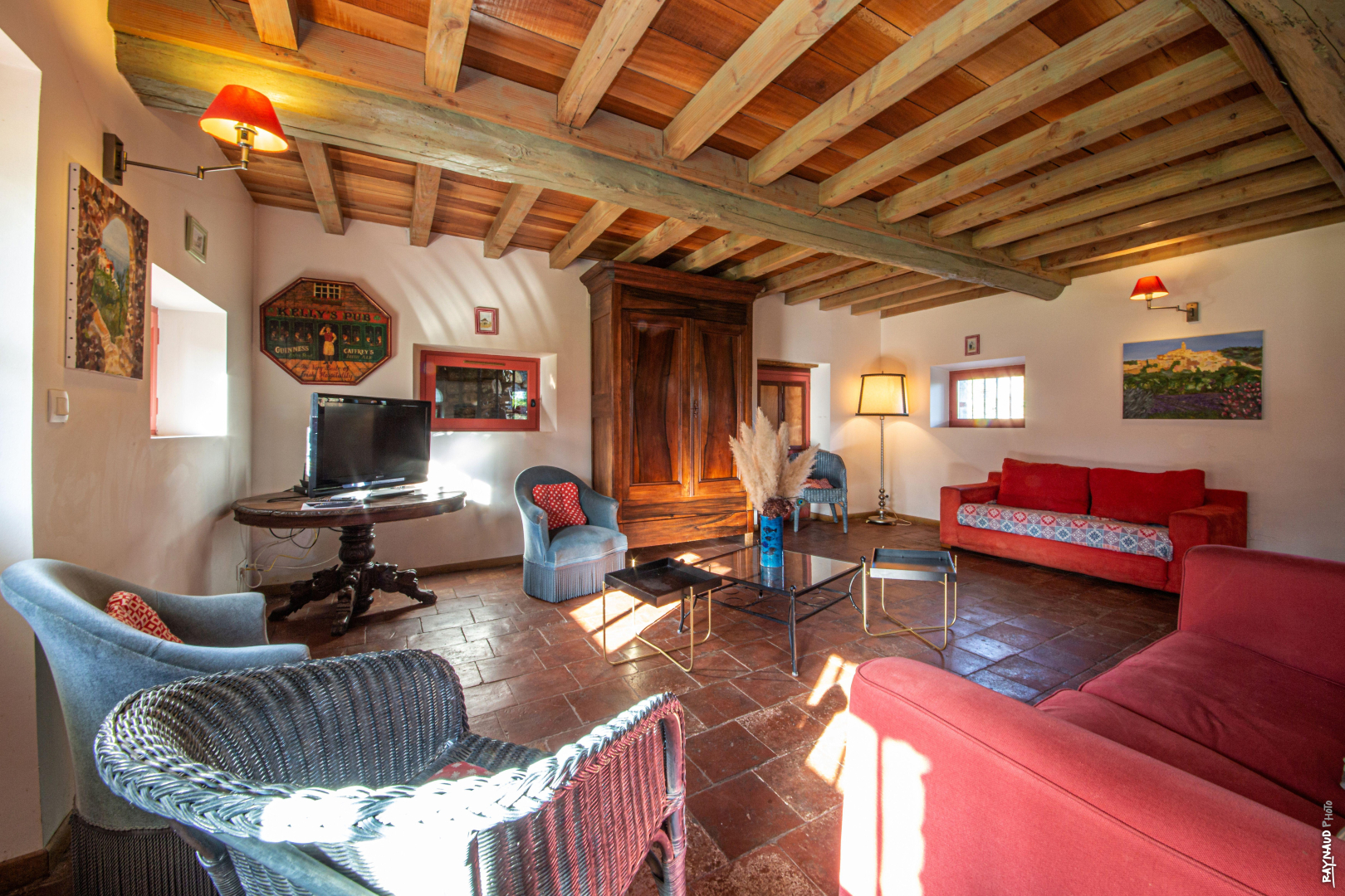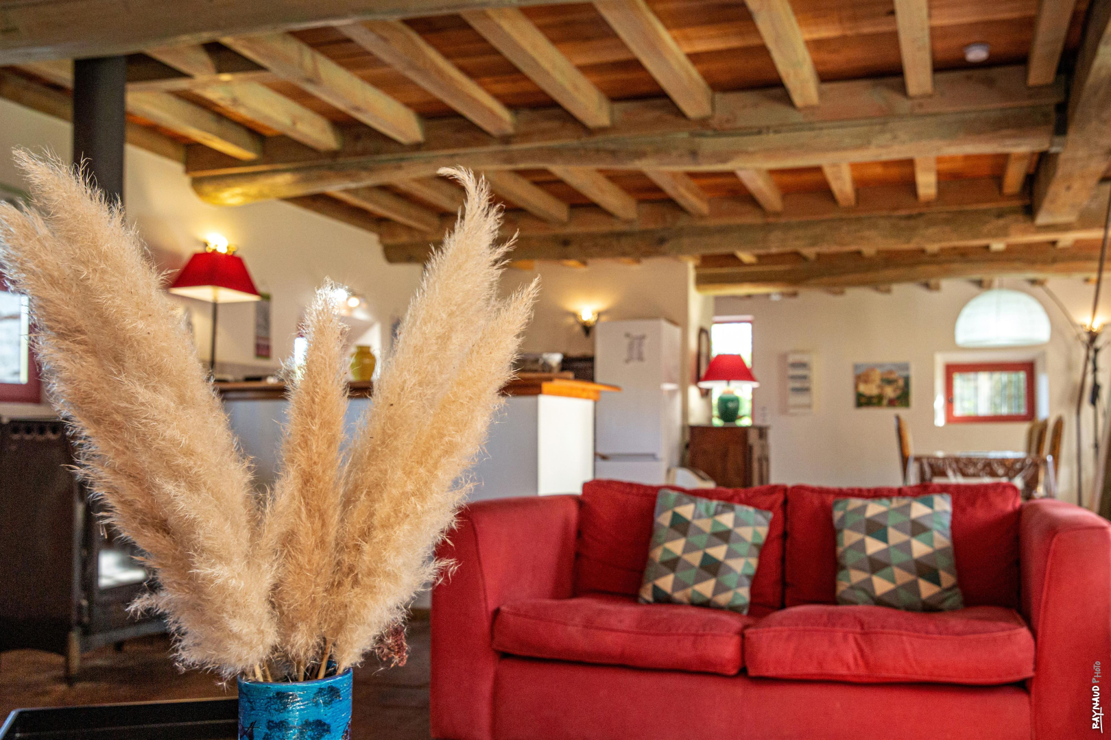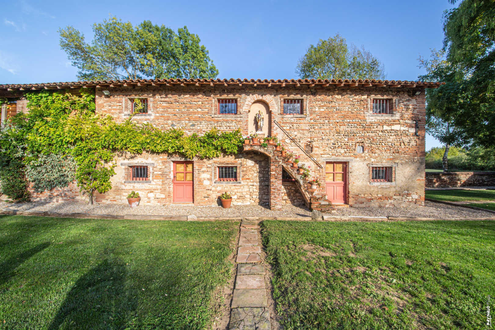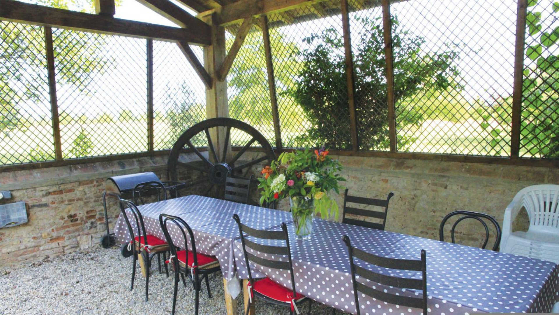 Ces bâtiments d’autrefois, rénovés à l’intérieur et décorés avec soin dans le goût de l’ancien, conservent leurs murs en briques rouges et en galets patiemment piochés dans le lit du Tarn. Le poulailler, le bûcher, la Chapelle, les anciennes porcheries s’organisent autour d’un patio ombragé et engazonné planté d’arbres magnifiques. Les arcades tout autour évoquent l’image d’un cloître.