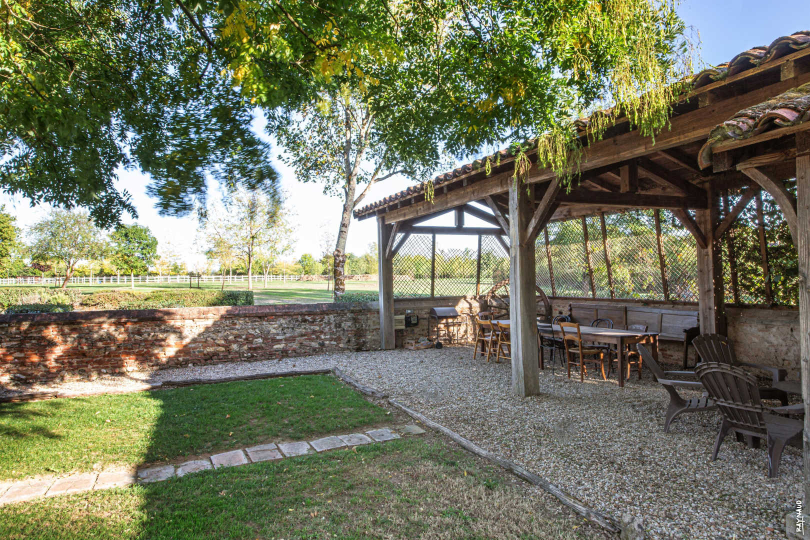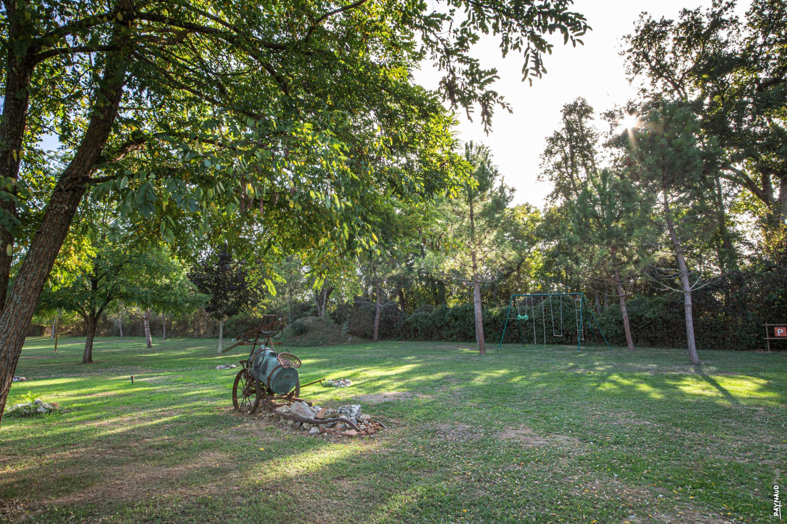Très grand jardin où vos enfants pourront gambader et profiter des jeux et du portique, belle terrasse couverte idéale en cas de forte chaleur ou de temps mitigé pour prendre les repas dehors, barbecue au charbon.