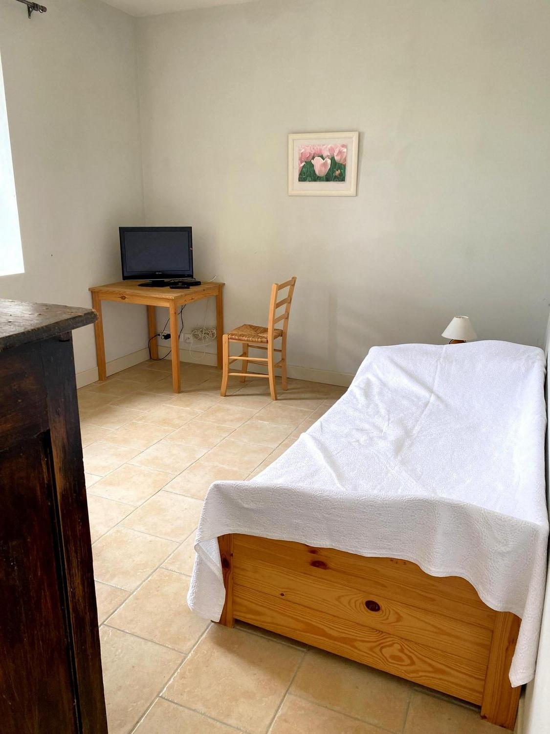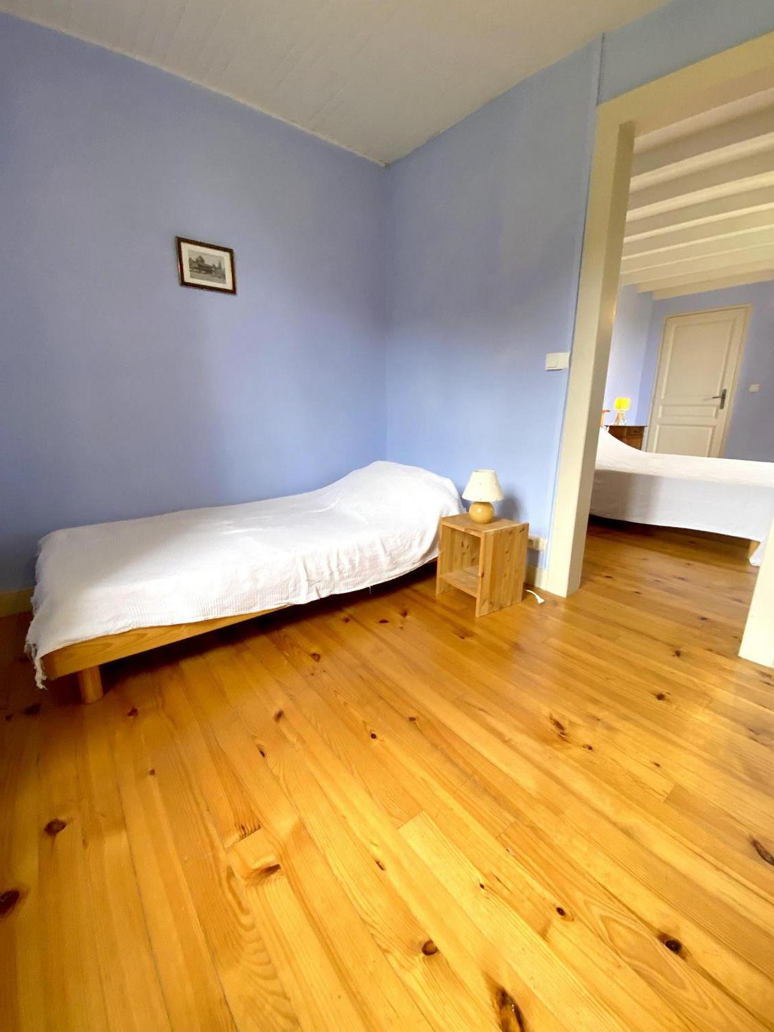 Séjour/coin cuisine / salon : canapé BZ + 2 fauteuils, 1 chambre (2 lits gigogne 90), 1 chambre (1 lits 140) et 1 chambre (1 lit 140 et 1 lit 90), salle d’eau, wc, rangement. kit bébé à disposition