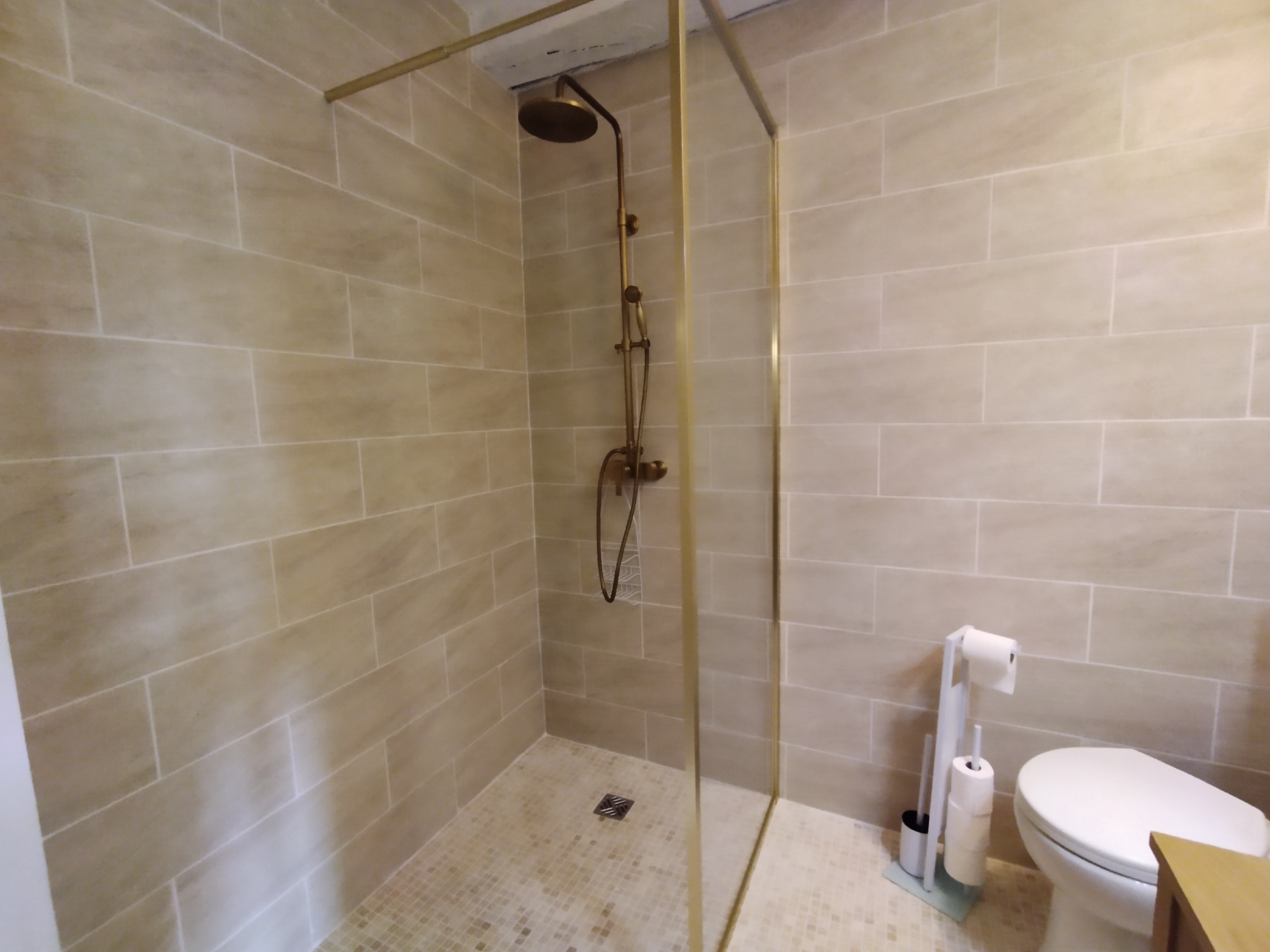 La chambre Pervenche, pour 2 personnes, est mansardée et très lumineuse. Elle dispose d’un lit de 160 × 200, d’un porte-bagages, de casiers de rangement et d’un ventilateur pour l’été. Sa salle d’eau, séparée par un rideau, comprend douche, toilette et lavabo. La suite parentale Coquelicot est composée de deux chambres séparées et d’une salle d’eau commune. La chambre des parents offre un lit de 160 × 200, une grande penderie, un porte-bagages et un canapé. La chambre des enfants dispose de deux lits de 90 × 190. La salle d’eau est équipée d’une douche à l’italienne, d’un toilette et d’un lavabo. Les chambres Cardamine et Glycine, chacune pour 2 personnes, disposent d’un lit de 160 × 200, d’une armoire et d’un petit canapé. Leur salle d’eau comprend une douche à l’italienne, un toilette et un lavabo. Sur le grand palier, un canapé et un écran sont à votre disposition pour regarder des