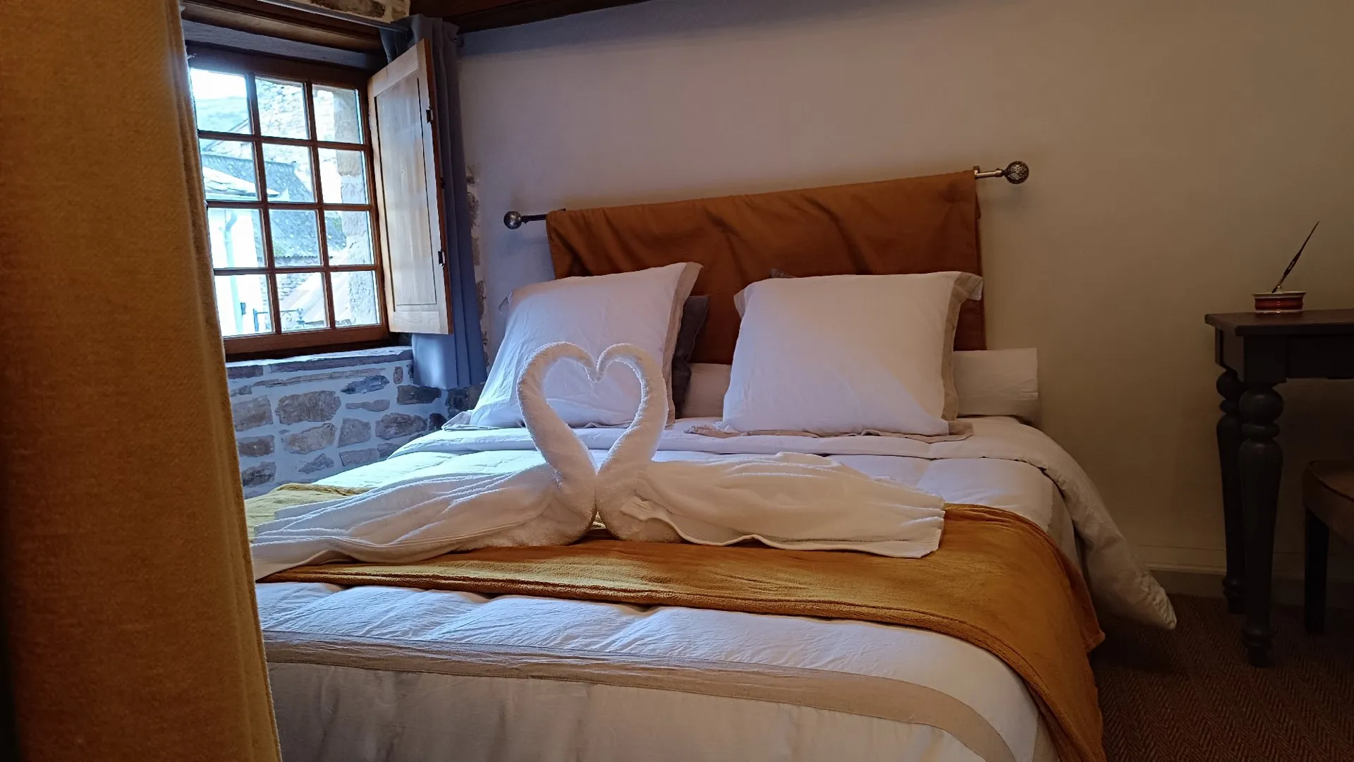 La chambre à coucher, toute aussi charmante, est attenante à la salle d’eau. Avec une attention particulière portée aux détails, nous souhaitons faire de votre séjour une expérience inoubliable.