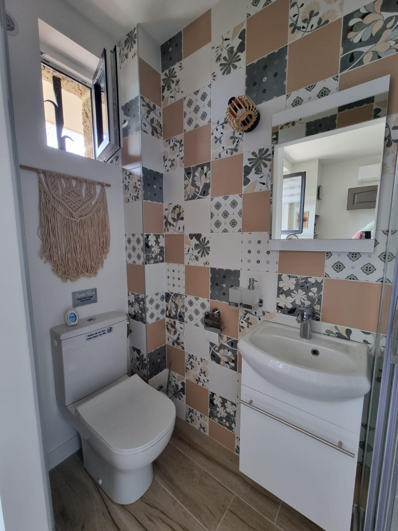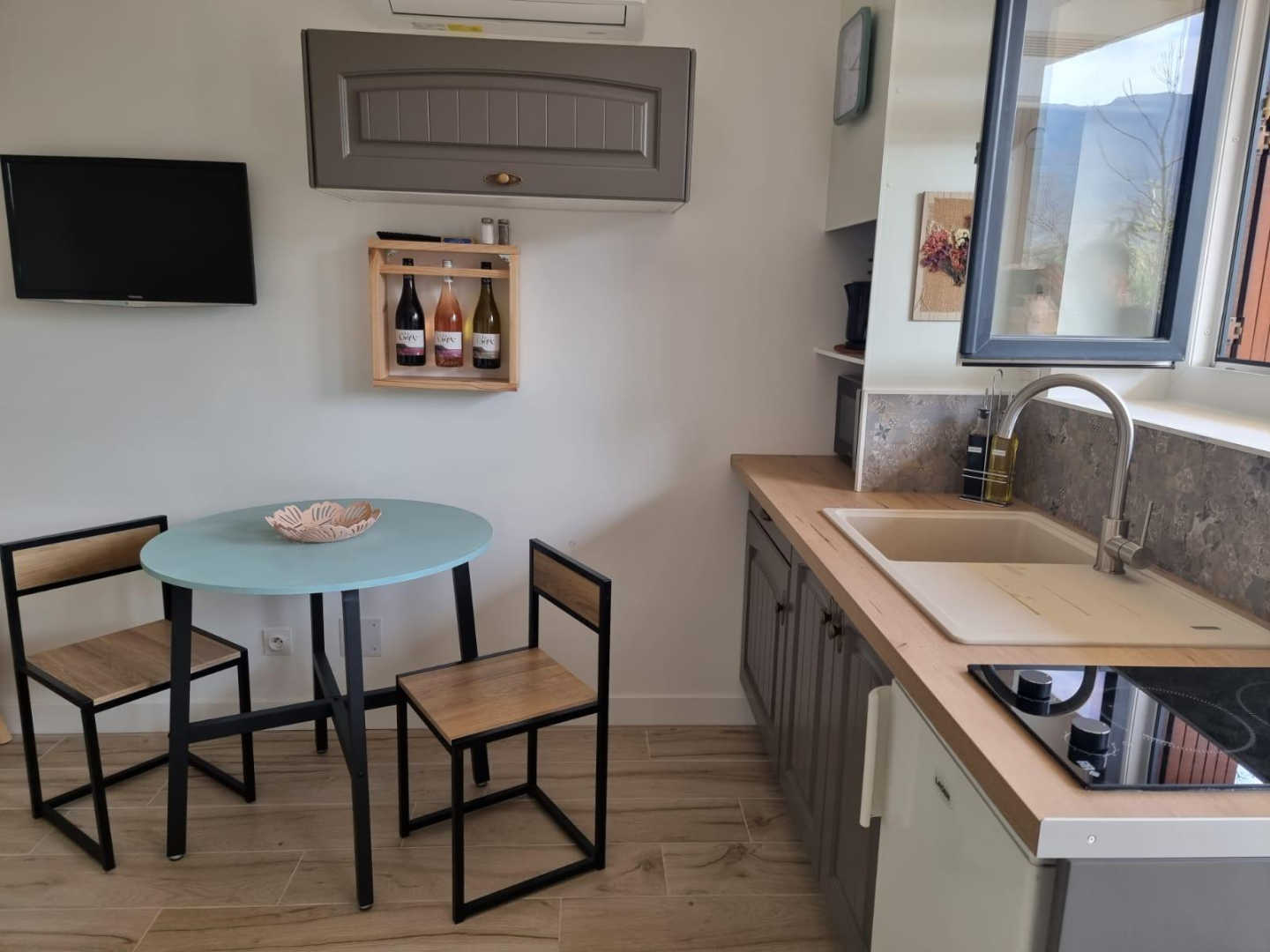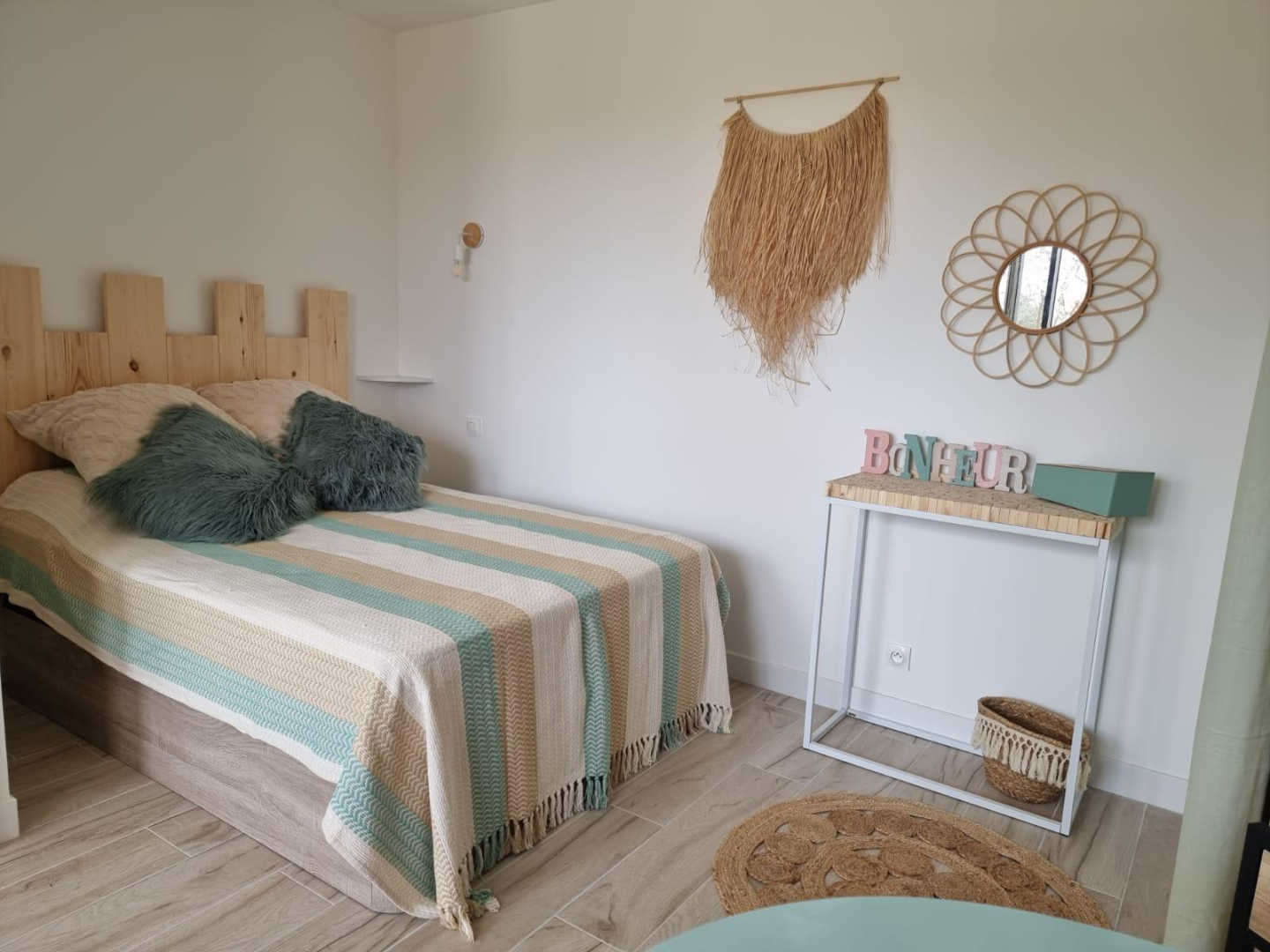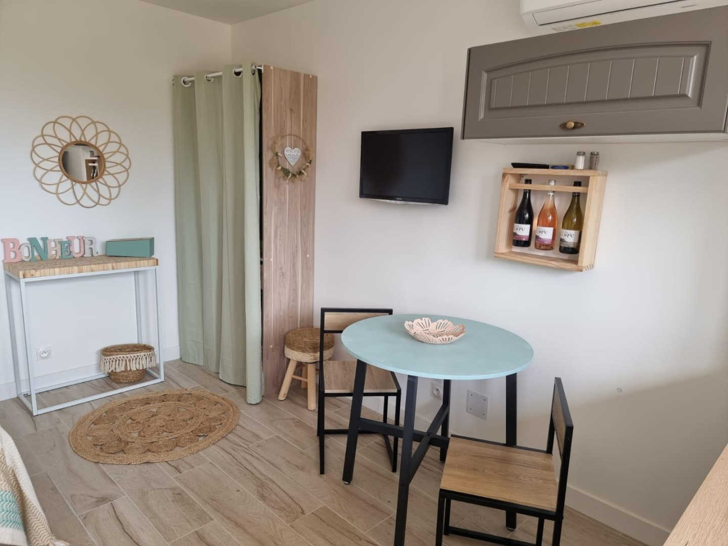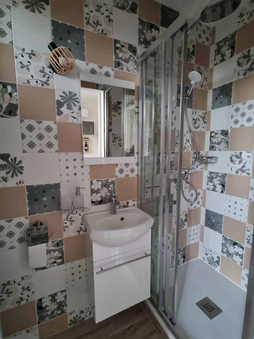 Vous apprécierez les grands espaces extérieurs de plus de 1,5 ha non clôturés, arborés de chênes lièges et d’oliviers. Studio, appartement ou villa…., choisissez ! En famille, entre amis, ce village de gîtes vous attend ! Vous séjournerez proche de la nature tout en étant à deux pas de l’animation, des plages et des criques ! La nouvelle piste cyclable EuroVelo8 passe devant le domaine. Pour chaque gîte, une place de parking privative et sécurisée est à votre disposition. En rez de chaussée : Ce joli studio, équipé d’une cuisine avec pièce à vivre (1 lit 140), d’une salle d’eau (wc), est ouvert sur sa terrasse (18 m²) avec vue sur le domaine.