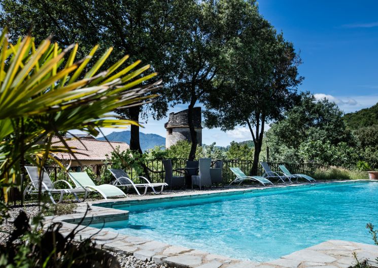 Au pied du Caroux, dans un décor naturel de bois et de cascades offrant un tableau vivant sur la nature, gîte aménagés dans l’aile Nord du château. Gîte douillet sur deux étages, il allie pierre, bois et mobilier ancien de famille et toute la technologie du moment. Vous pourrez également savourer un verre de vin en terrasse , ou au bord de la piscine, devant un paysage magnifique…