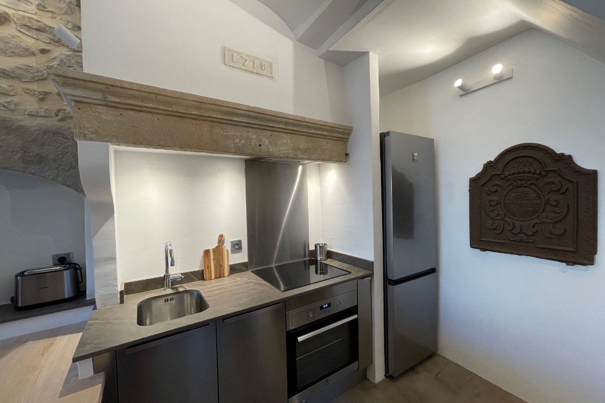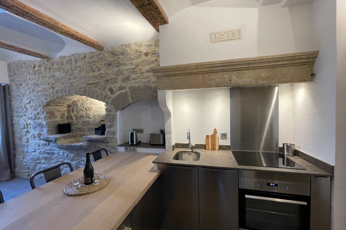 Au coeur du pittoresque village médiéval de Notre Dame de Londres, venez découvrir notre gîte 4 places. L´arrière pays de Montpellier (30min au Nord de la ville) est un véritable écrin de nature sauvage, exceptionnellement préservé, bordé par le pic Saint Loup au Sud, le fleuve Hérault à l’Ouest, le massif de l’Hortus à l’Est et les Cévennes au Nord. Vous apprécierez le charme de la vieille pierre, tout en ayant accès à tout le confort moderne. La cheminée monumentale d’époque, entièrement fonctionnelle, agrémentera vos soirées d’automne et d’hiver. L´épaisseur des murs et la climatisation vous garderont au frais au plus chaud de l’été. Cette adaptation naturelle aux quatre saisons du bâti ancien, combinée à une isolation performante et des équipements de dernière génération, fait du gîte un veritable refuge climatique. Emplacement en cœur de village piéton, sans extérieur (mais la garrigue sauvage environnante sera votre jardin sans bornes! Les falaises mythiques du pic Saint Loup sont à seulement 5min, l’Herault et ses descentes en canoë 15 min, le centre de vol a voile du Pic 5min). Équipement : – cuisine équipée (four / plaques induction / réfrigérateur / congélateur / lave vaisselle) – climatisation réversible – lave linge – douche à l’italienne – internet fibre haut débit (100Mbits/s), petit bureau (cadre idéal pour le télétravail!) – smartTV – cheminée à bois (fourniture de bois à la demande) – détecteur de fumée et de monoxyde de carbone – lit principal 160×200 (matelas hybride 22cm) – couchage additionnel 140×200 sur mezzanine (matelas 18cm) – couchage supplementaire 140×200 sur canapé convertible (avec sur-matelas) – lit parapluie /chaise BB sur demande, sans frais Le linge de maison est fourni (draps, serviettes de bain) et les lits sont faits a votre arrivée. Le gîte est laissé propre par vos soins, à moins que vous n’optiez pour le forfait ménage à 40€ – à préciser en début de location. Vous etes autonomes au départ et a l´arrivée, l´accès au gite se faisant par une serrure codée. Un accueil en personne est aussi possible si vous le préférez. Commodités: Le parking, gratuit, s’effectue à l’extérieur de la zone piétonne, prévoir un peu de marche pour amener vos valises (environ 100m). Le gîte est à une minute à pied du restaurant du village qui propose une carte au rapport qualité prix imbattable. Les commerces les plus proches (boulangerie patisserie, primeur, boucherie, supermarché) sont à 10min en voiture (également desservis par bus, jusqu’à 10 fois par jour en semaine, et 4 fois les dimanches et jours fériés). Classement meublé de tourisme 3 étoiles (05/07/2023) Classement clévacances 3 clés (13/06/2023) Label vignobles et découvertes (17/12/2023)