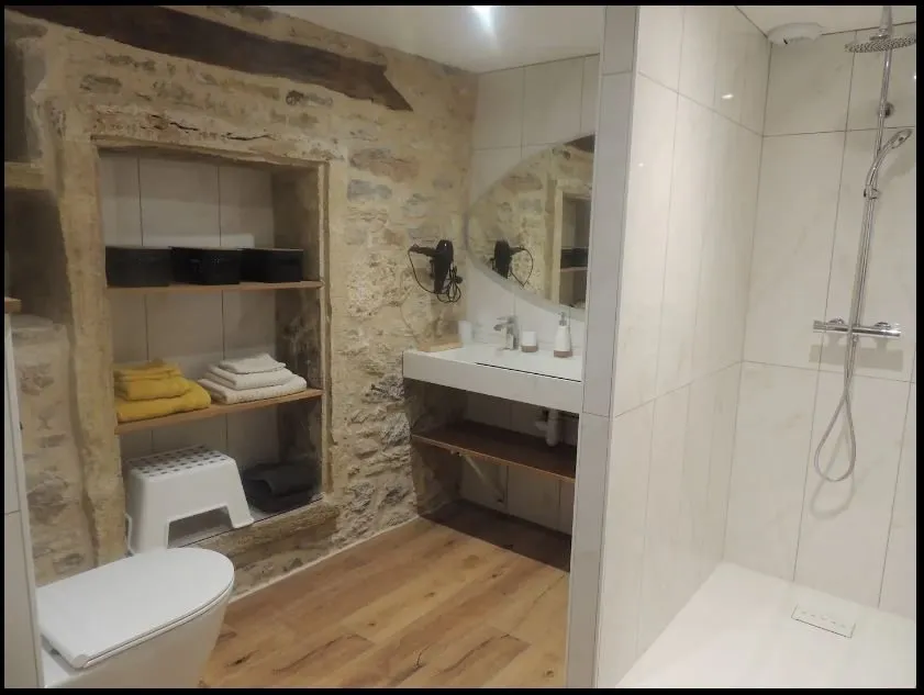 Une chambre plain-pied avec un lit électrique articulé 160×200 avec salle d’eau et une deuxième chambre à l’étage avec un lit électrique articulé 140×190 et sa salle d’eau indépendante.