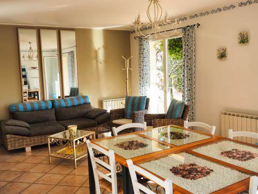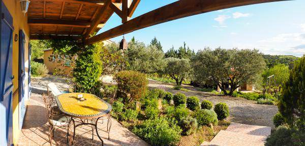 A l’extérieur du village, sur domaine viticole (vin Bio, dégustation et visite du chais et des vignes), avec belle vue sur campagne environnante, maison indépendante de construction récente de plain-pied en r.d.c. Coin-cuisine/salle à manger, coin-salon, ch.1 (1 lit 2 pers.), ch.2 (2 lits 1 pers.), s.e, wc, buanderie. Chauffage central électrique. Terrain non clos, terrasse (17m²), s.d.j., barbecue, abri voiture, piscine hors sol (6,5X3,5X1,3) commune à 2 gîtes,Sup. : 67 m² . Terrain de pétanque privé. Equipement bébé, jeux d’enfants. 2ème gîte à proximité. Forfait ménage 25€, loc. draps par lit/sem. 6€. Chevaux SP._ATTRAITS TOURISTIQUES : Lac du salagou, Lodève, Prieuré de Grammont, Villeneuvette, Cirque de Mourèze, ST Guilhem le Désert, les grottes de Clamouse, Cirque de Navacelles, La Couvertoirade.