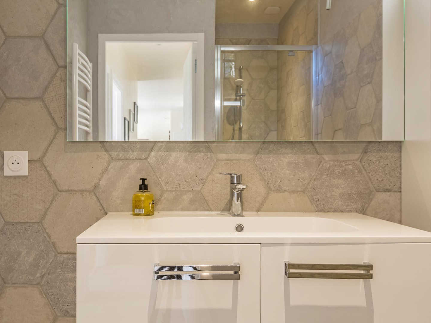 L’appartement comporte une pièce à vivre avec cuisine ouverte toute équipée, coin salon avec tv, deux chambres avec lit en 160×200 chacune, salle d’eau, wc.