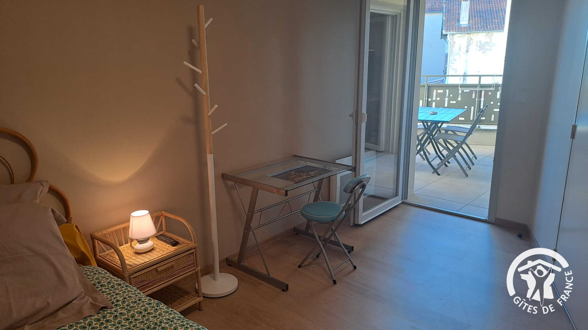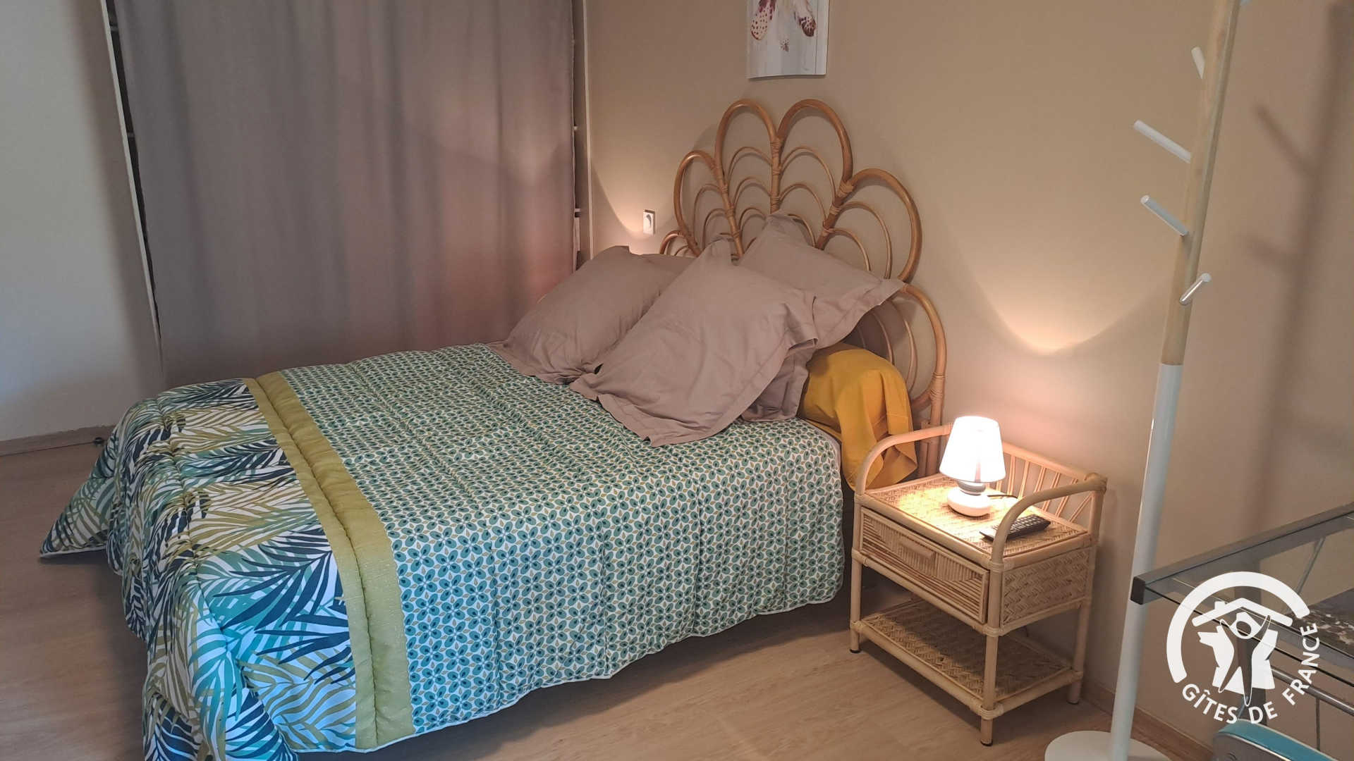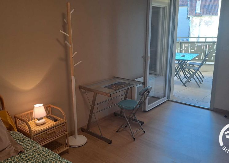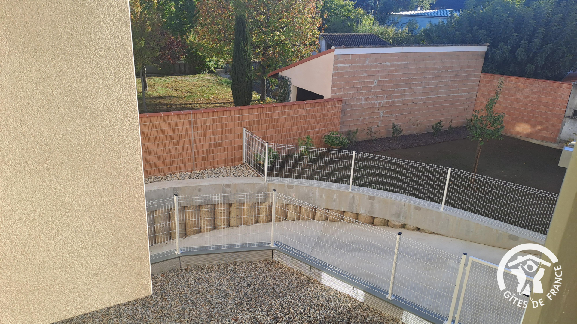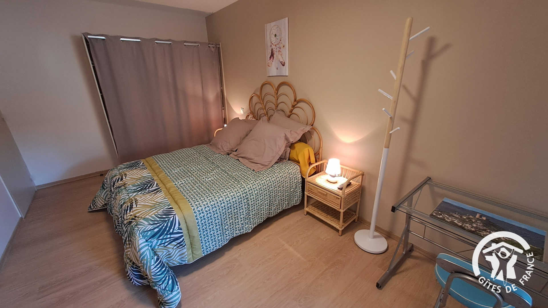 – La pièce principale et une chambre indépendante avec un lit 140 et un coin bureau s’ouvrent sur une terrasse avec salon de jardin où l’on peut manger sans vis-à-vis.