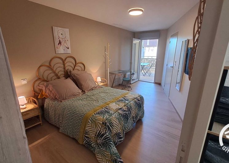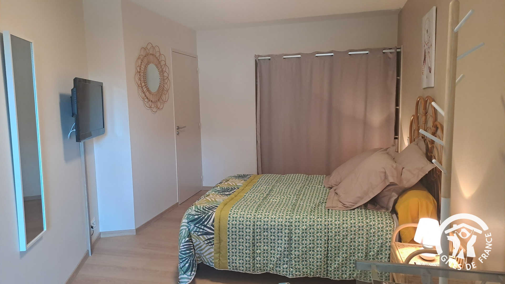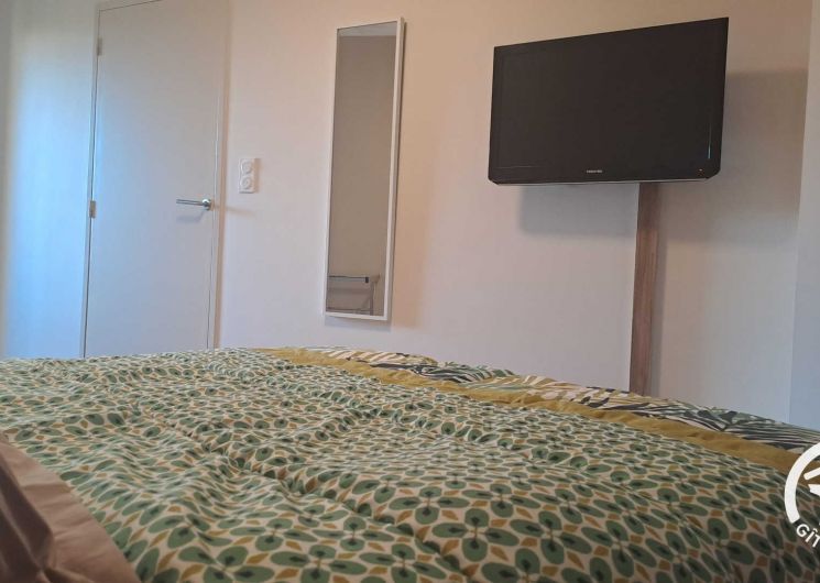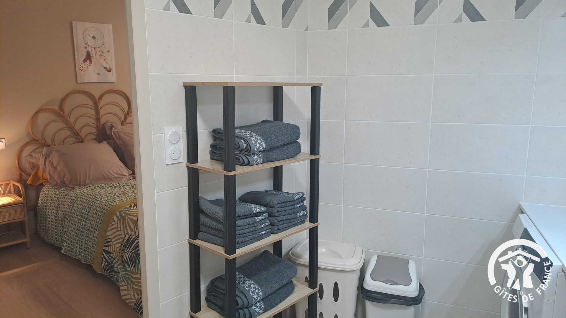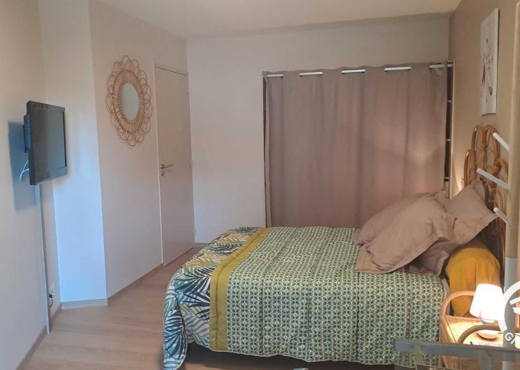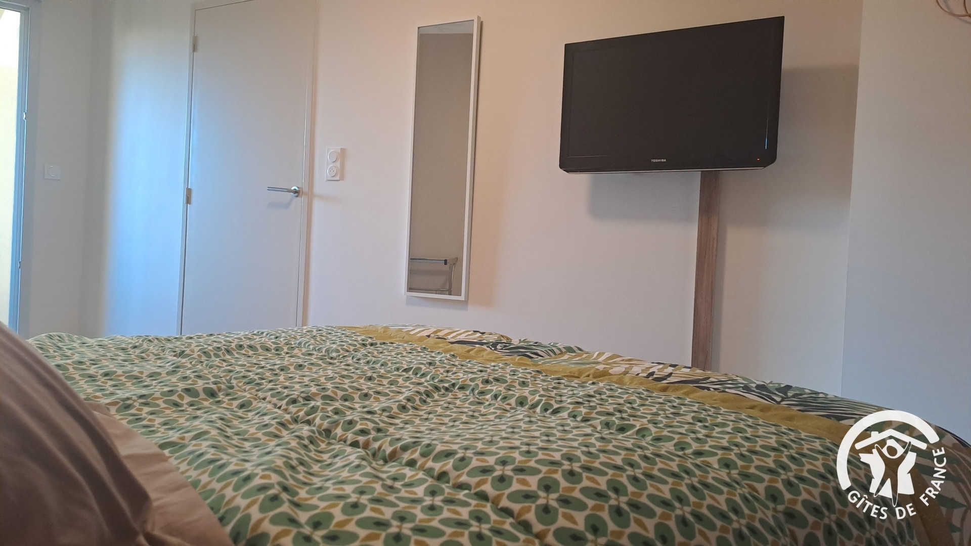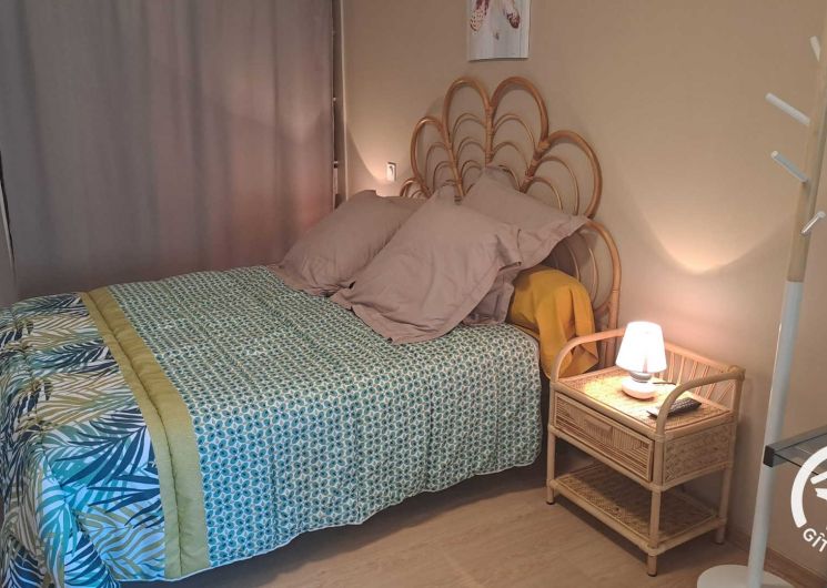 – La pièce principale et une chambre indépendante avec un lit 140 et un coin bureau s’ouvrent sur une terrasse avec salon de jardin où l’on peut manger sans vis-à-vis.
