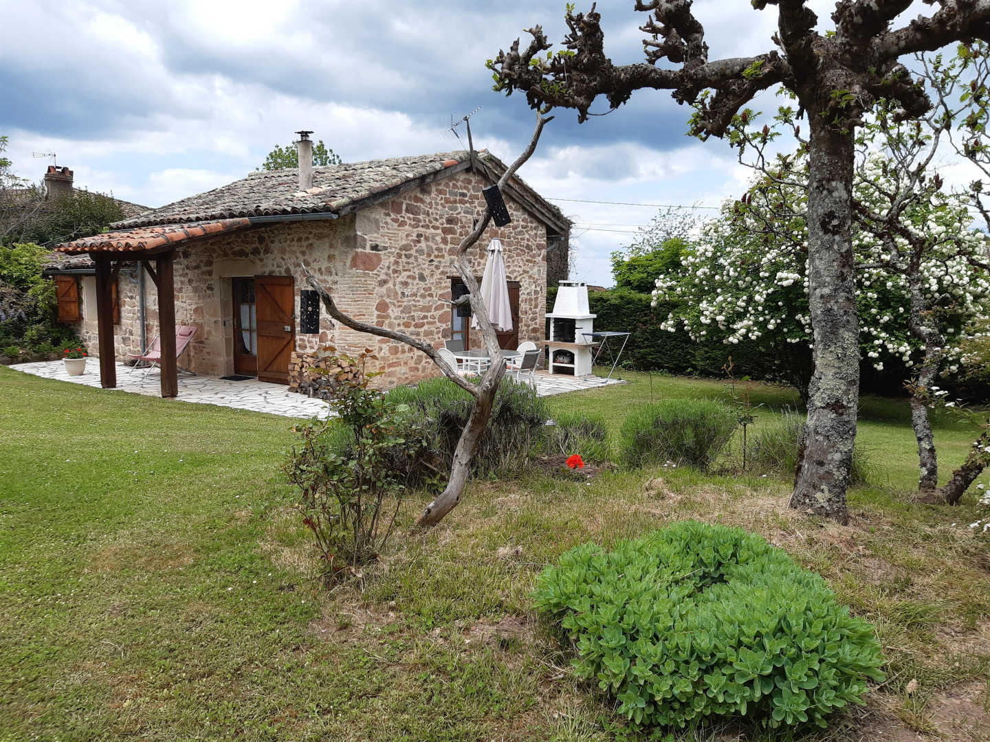 Le Roudou se situe à l’orée de la forêt, à 400 m d’altitude sur le plateau de Vaour, et domine au loin le vignoble et la plaine gaillacoise. Sur une belle pelouse, le propriétaire des lieux Robert a aménagé un mignon petit gîte.