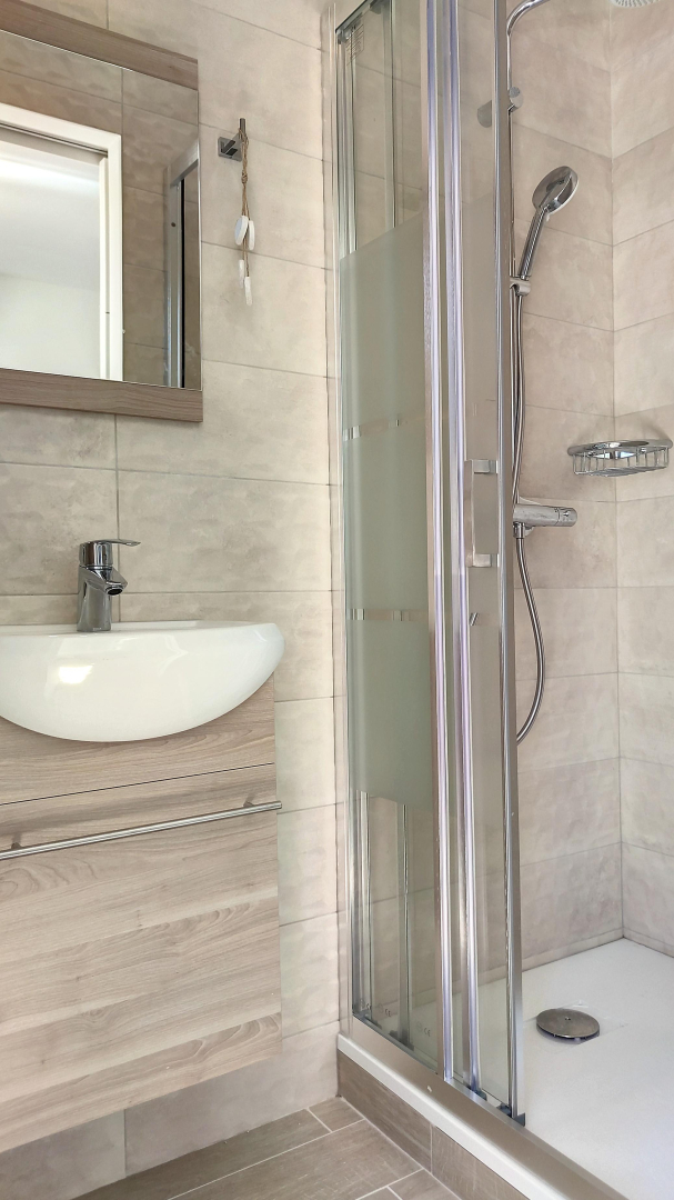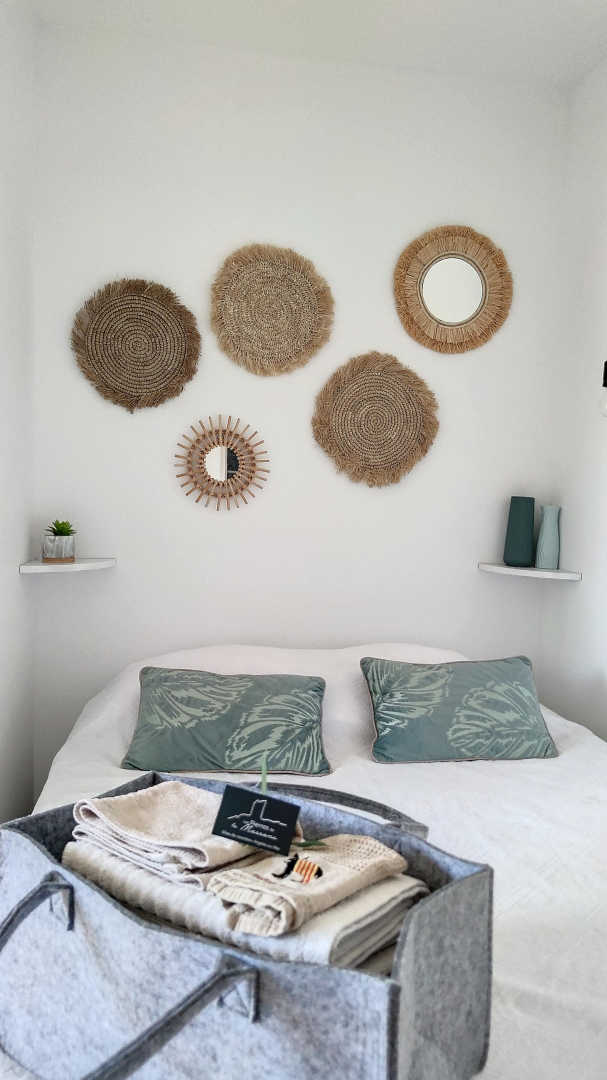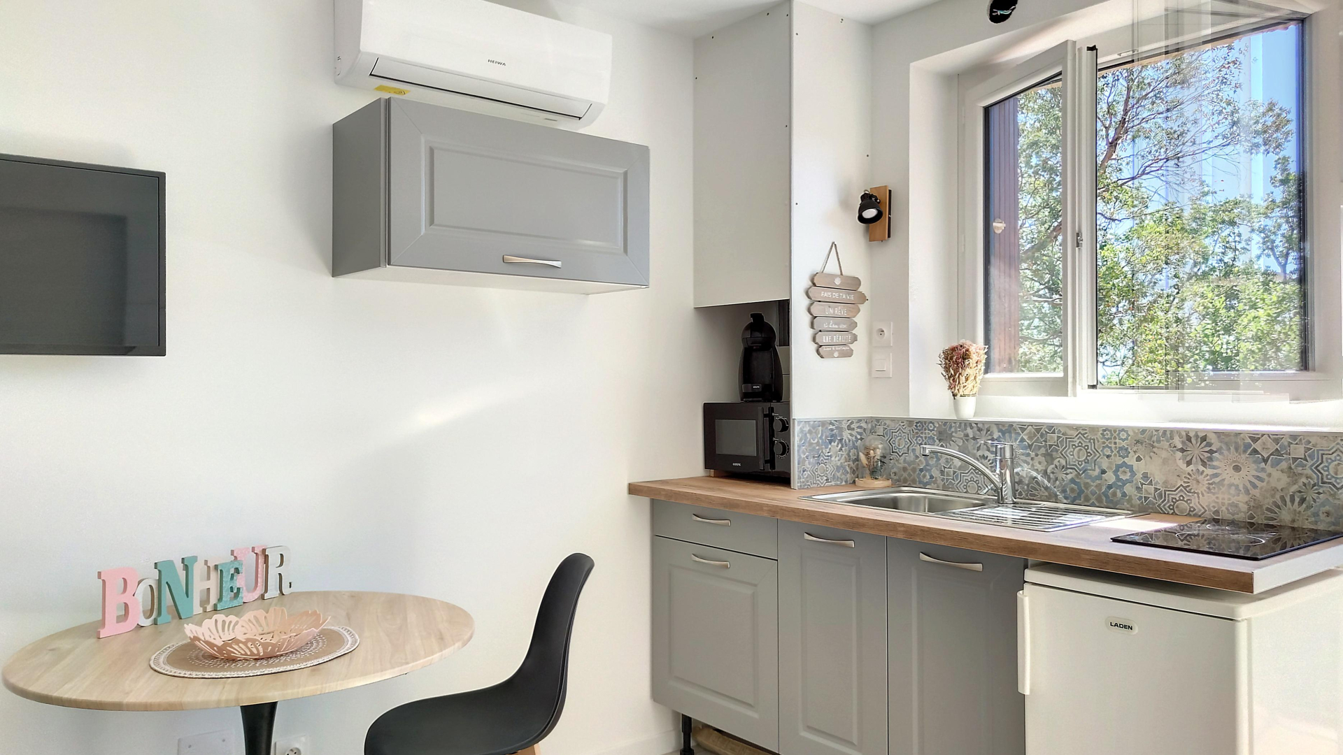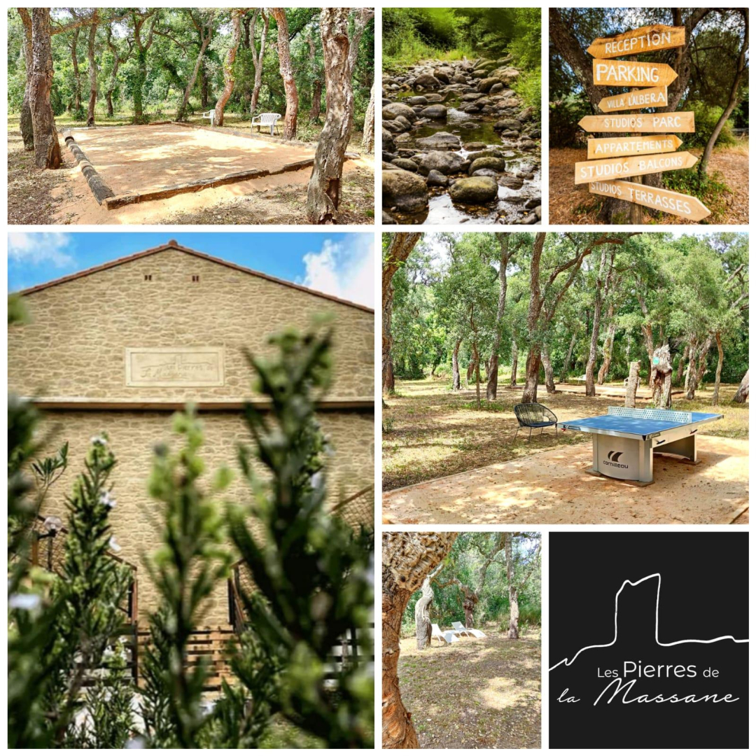 Vous apprécierez les grands espaces extérieurs de plus de 1,5 ha non clôturés, arborés de chênes lièges et d’oliviers. Studio, appartement ou villa…., choisissez ! En famille, entre amis, ce village de gîtes vous attend ! Vous séjournerez proche de la nature tout en étant à deux pas de l’animation, des plages et des criques ! La nouvelle piste cyclable EuroVelo8 passe devant le domaine. Pour chaque gîte, une place de parking privative et sécurisée est à votre disposition. A l’étage : Ce joli studio, équipé d’une cuisine avec pièce à vivre (1 lit 140), d’une salle d’eau (wc), est ouvert sur son balcon de 7 m² avec vue sur les montagnes.