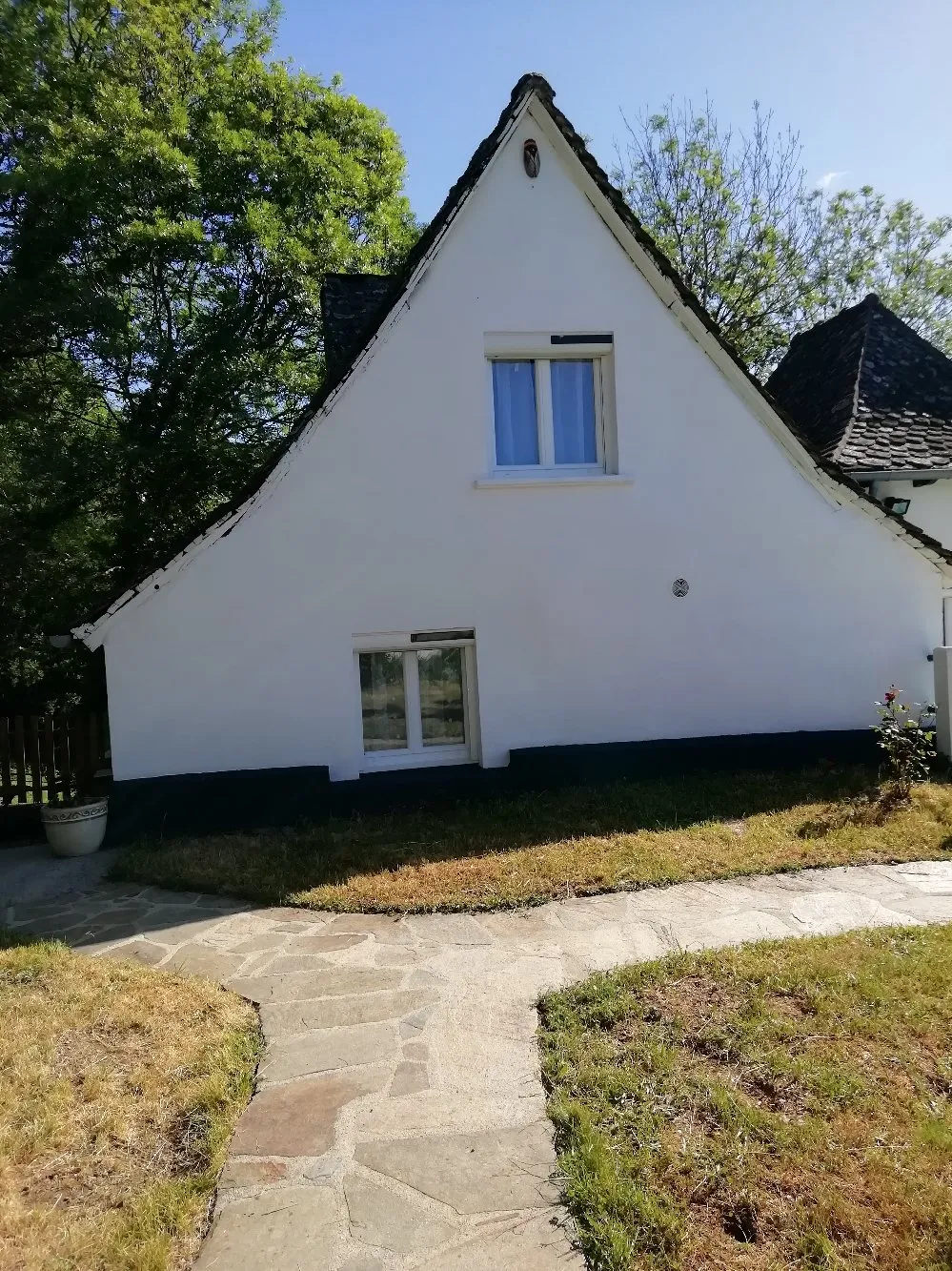 Gîte indépendant, 2 niveaux, isolé, en campagne (résidence secondaire du propriétaire à côté). 1 chambre (1 lit 140), salle d’eau, coin-cuisine (lave-vaisselle)/séjour (fauteuils, télévision), buanderie (lave-linge), chauffage central (fioul), terrasse privée (15m²) non close.