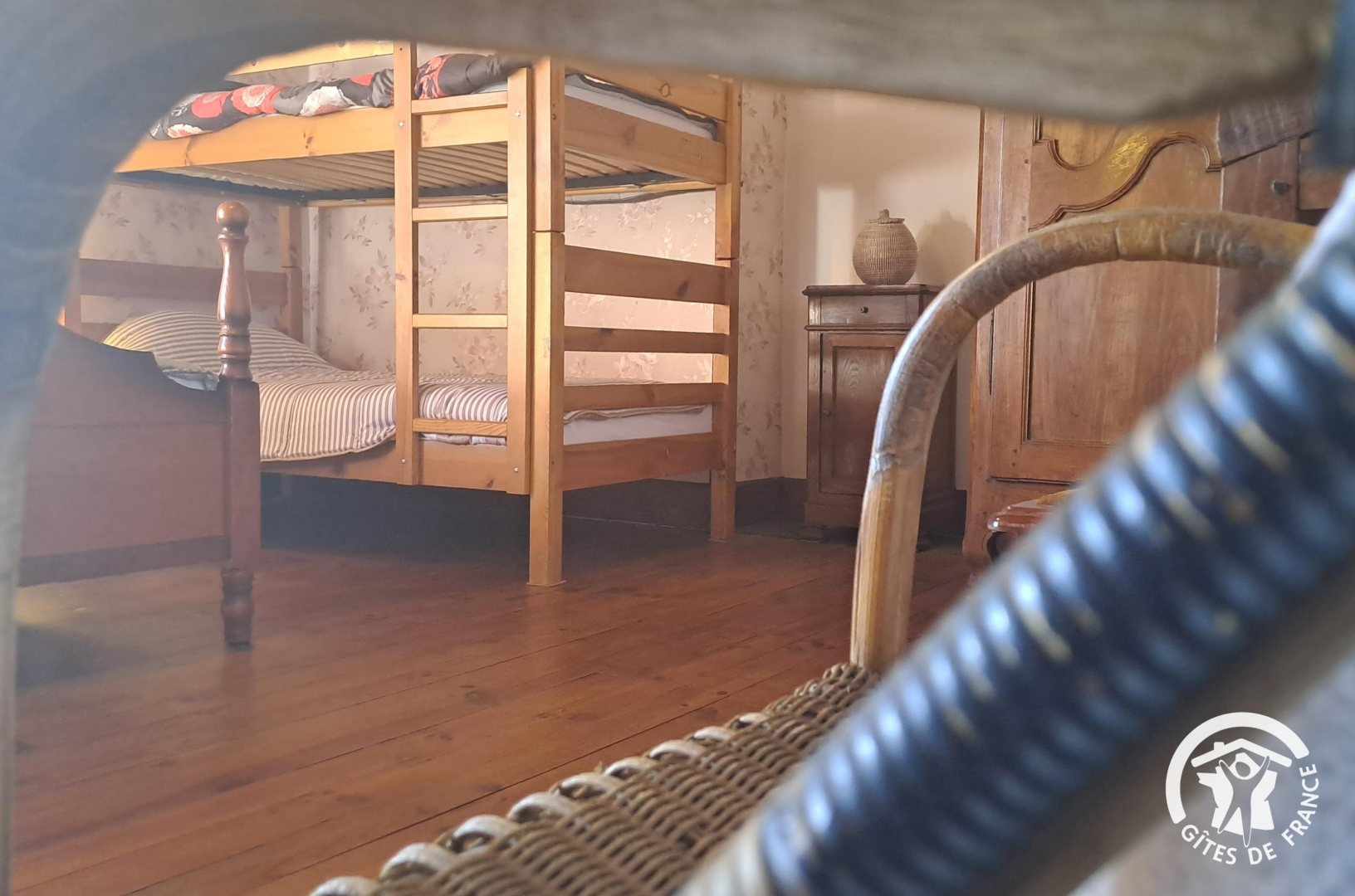 – Chambre 3 : un lit double 140x190cm + 2 lits simples 90x190cm superposés