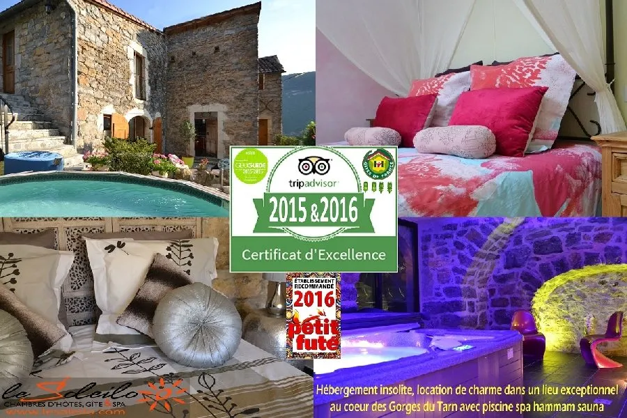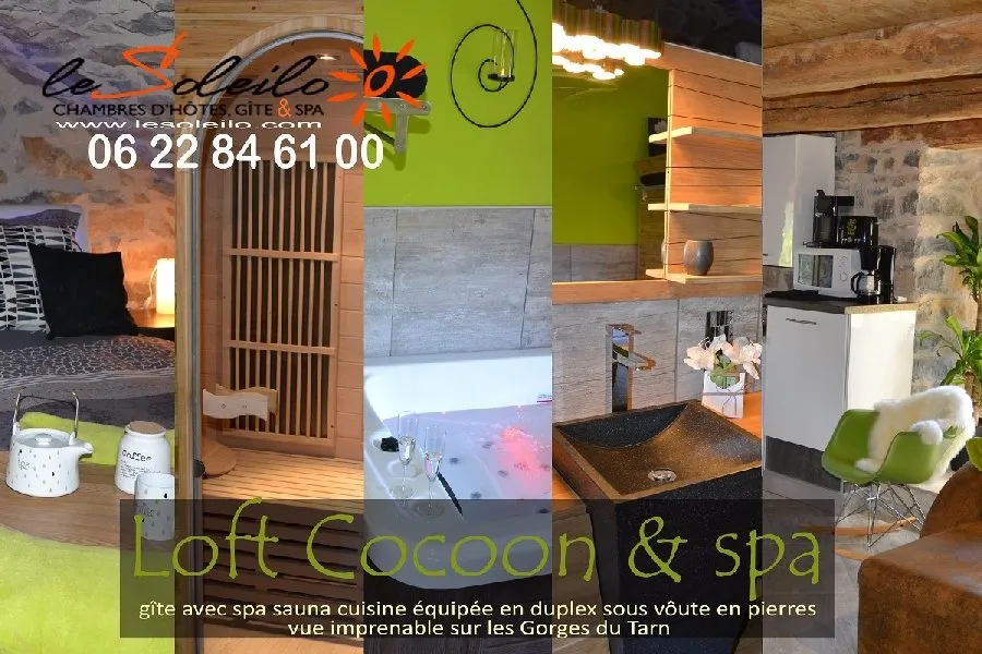 Design, charme et tradition, bien-être, piscine, sauna, spa et vue panoramique sur les Gorges du Tarn sont les atouts du SOLEILO, idéal pour des vacances en famille, entre amis. Séjour romantique à 2, avec spa privatif, hammam, sauna, massage.