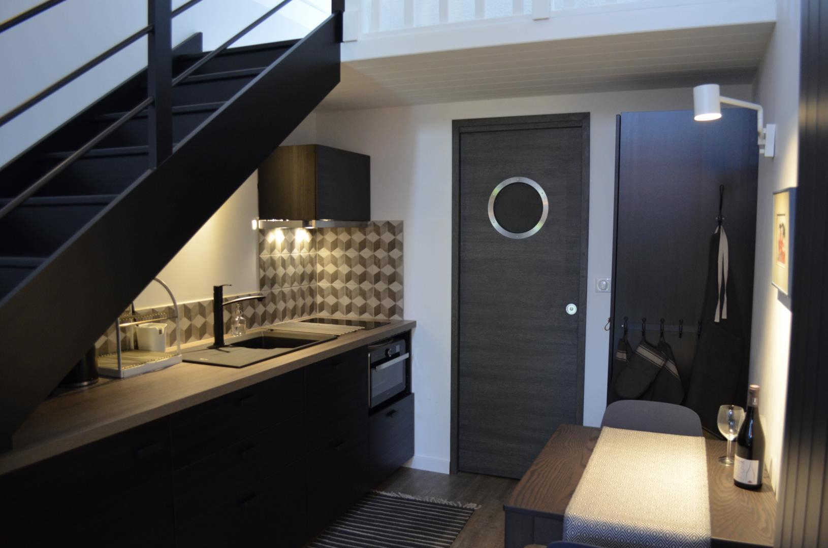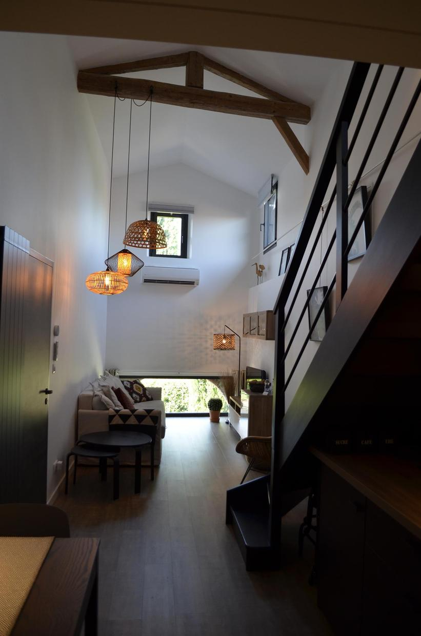 Au RDC : entrée sur une pièce d’accueil dédiée au sport (rameur et home trainer). Au 1er étage : pièce de jour avec cuisine et coin repas, espace détente, chambre en mezzanine (1 lit 2 pers. en 160), salle d’eau/WC privative + 1 Chambre (1 lit 2 pers. en 160) et salle d’eau/WC privative. Accès Internet wifi. Chauffage par pompe à chaleur et convecteurs d’appoint. Climatisation réversible dans la pièce de séjour.