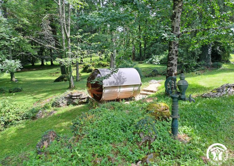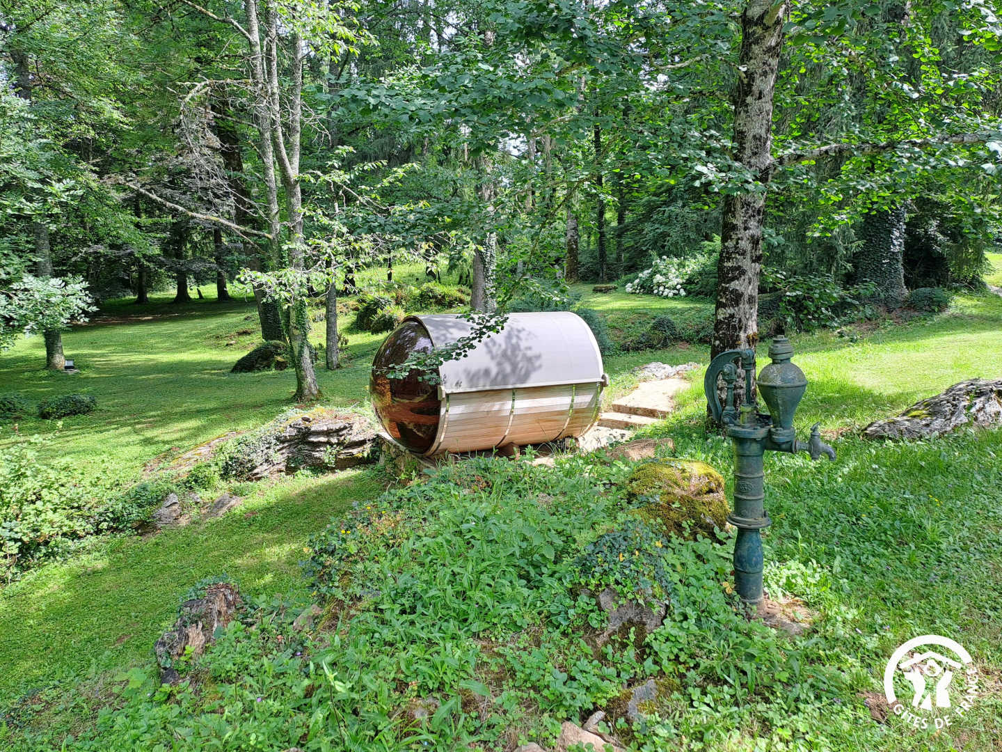 Un spa de nage (5,50mx2,10m) chauffé avec nage à contre courant et espace jacuzzi utilisable été comme hiver, de jour et de nuit ainsi qu’un sauna électrique en bois de forme cylindrique avec bulle de vision.