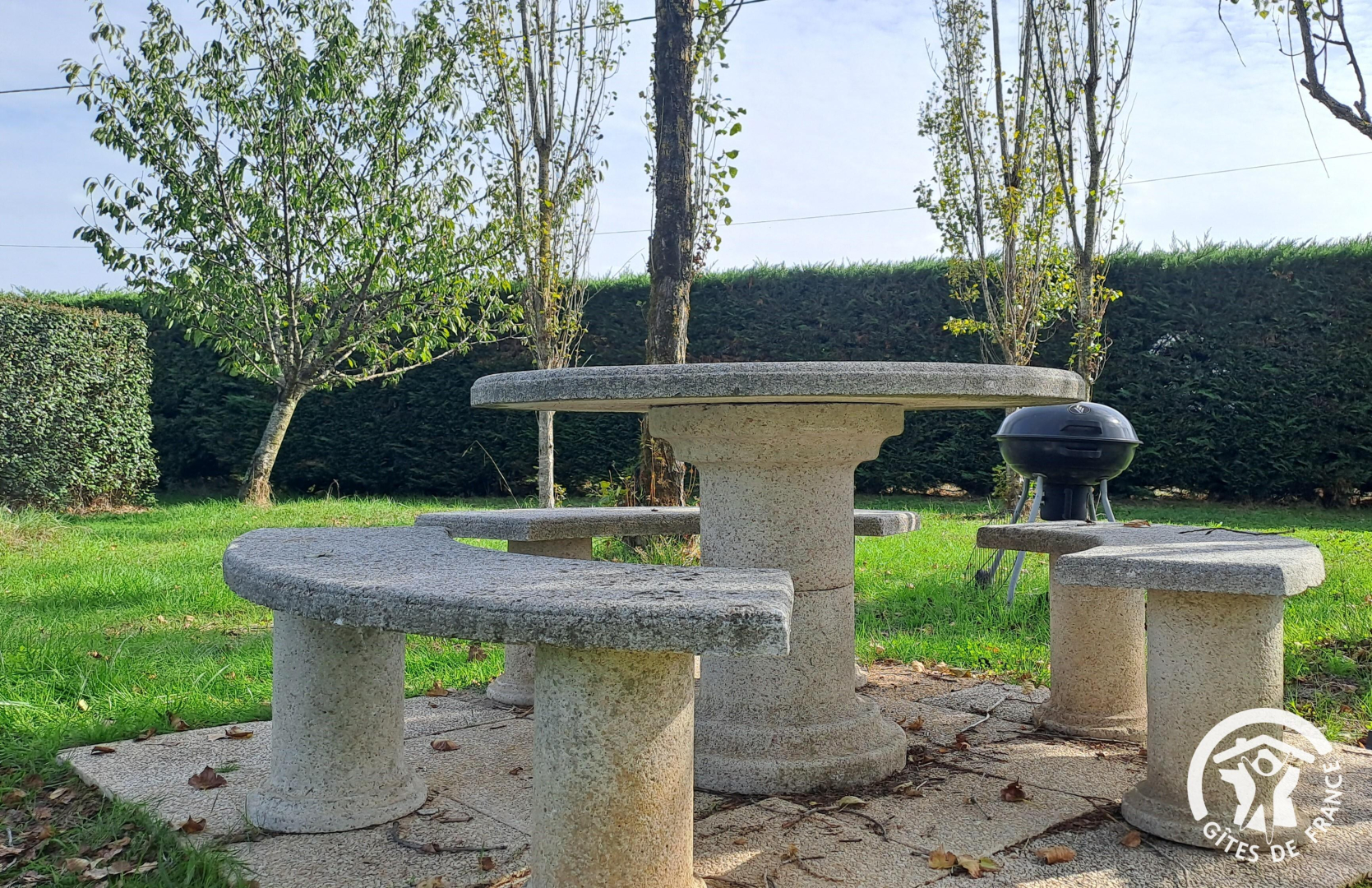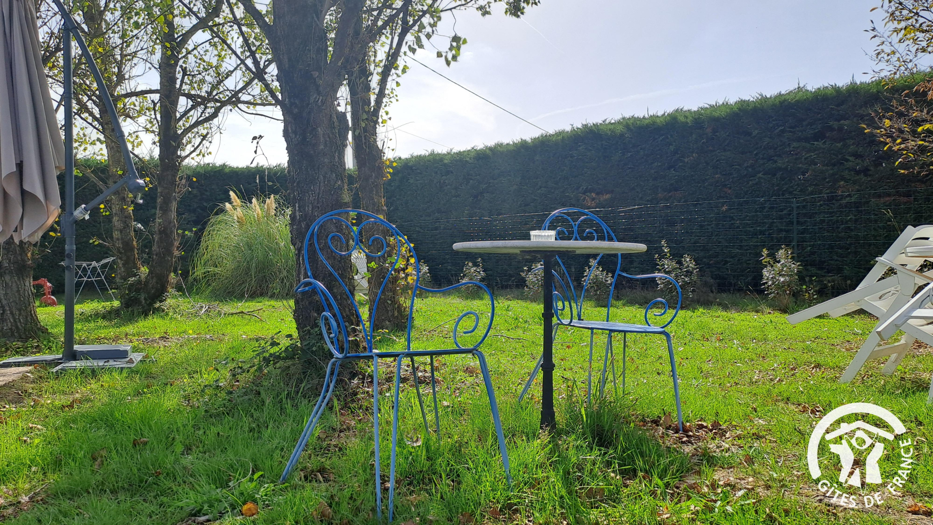 Grand jardin qui est aussi le domaine des deux chats de la maison, piscine hors-sol à votre disposition, espaces de détente.