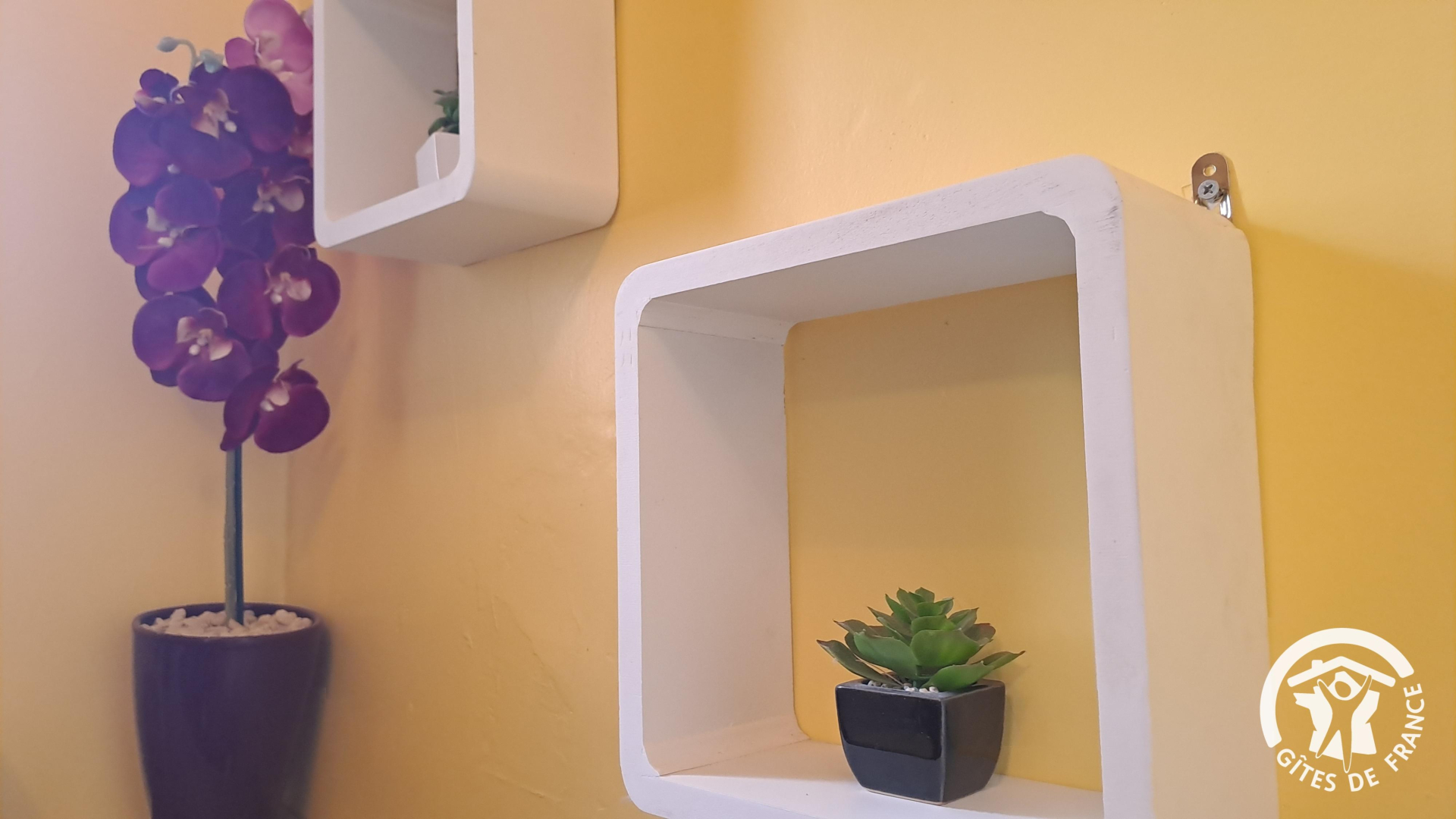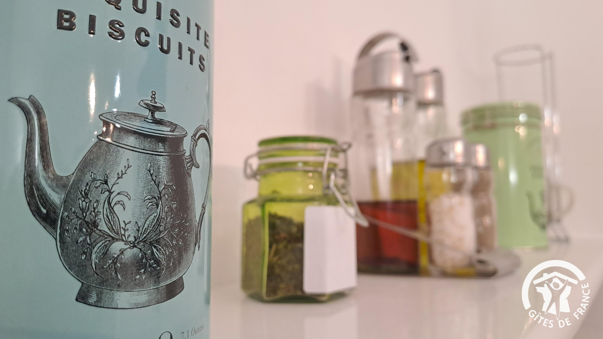 L’accès aux chambres se fait depuis l’entrée de la maison des propriétaires. Vous accédez directement dans un coin cuisine qui est dédié aux hôtes avec réfrigérateur, micro-ondes, bouilloire et cafetière Tassimo®. Chacun a sa partie privative de la maison : sur la gauche, l’habitation des propriétaires et sur la droite, depuis le coin cuisine, les deux chambres d’hôtes.